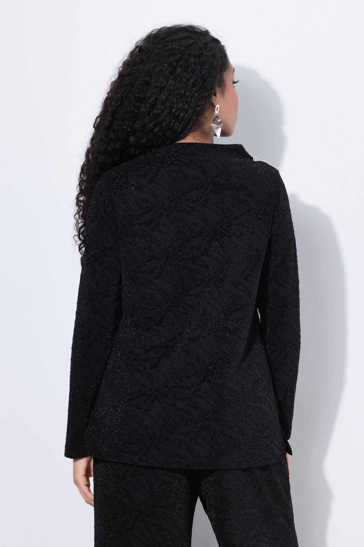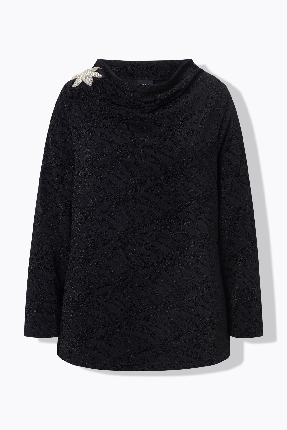 Блуза с лъскав акцент на деколтето. С драпирани акценти и флорални мотиви. С дълги ръкави. От мека, комфортна материя.