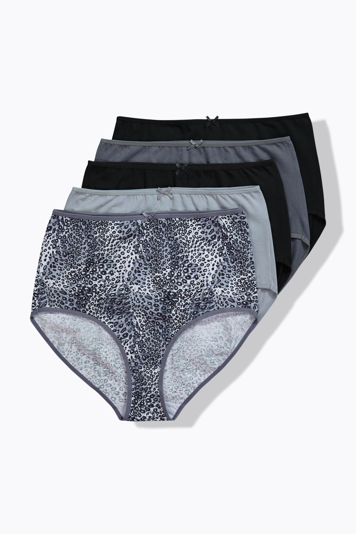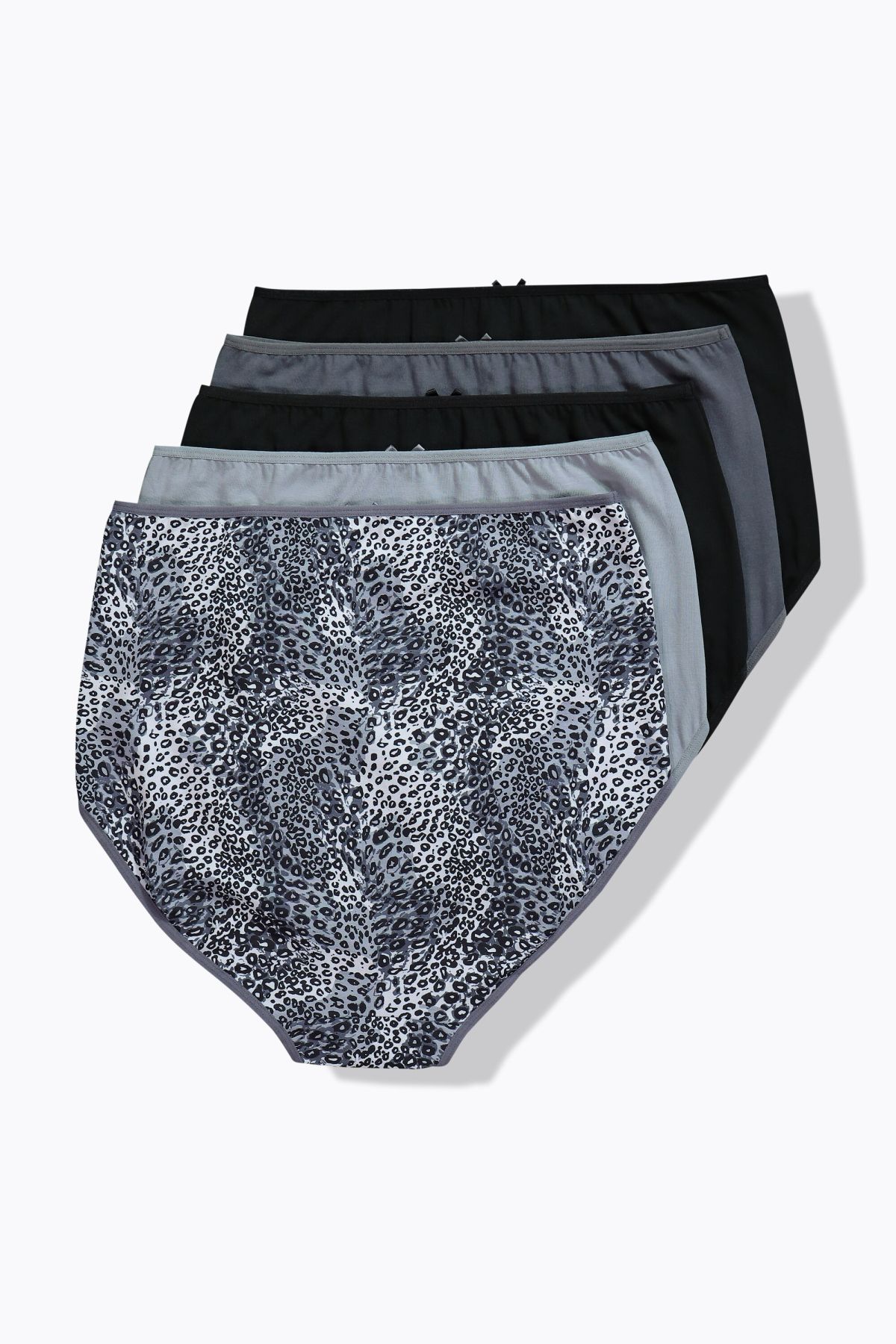 Бикини комплект от 5 броя с леопардов принт и едноцветни. От мека, памучна материя, комфортни еластични отвори за краката, памучна подплата и сатенена панделка посредата.