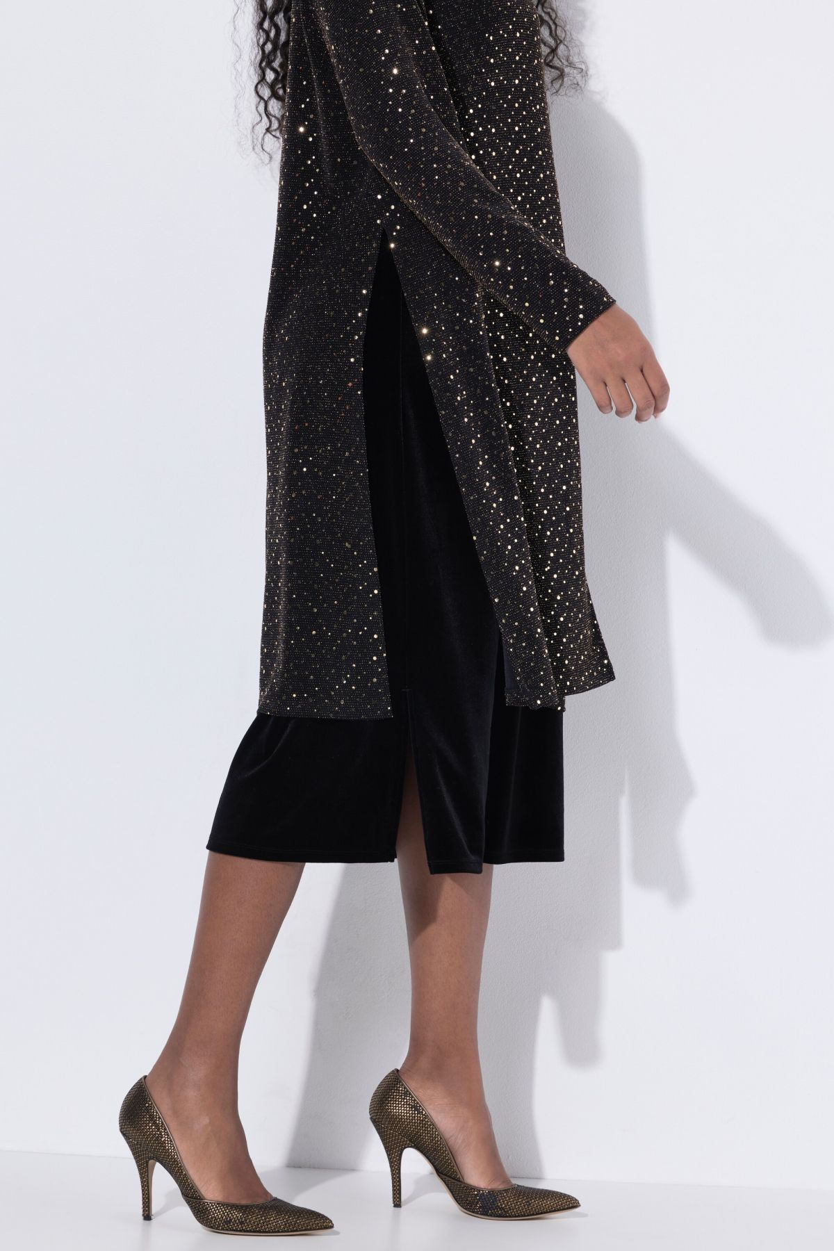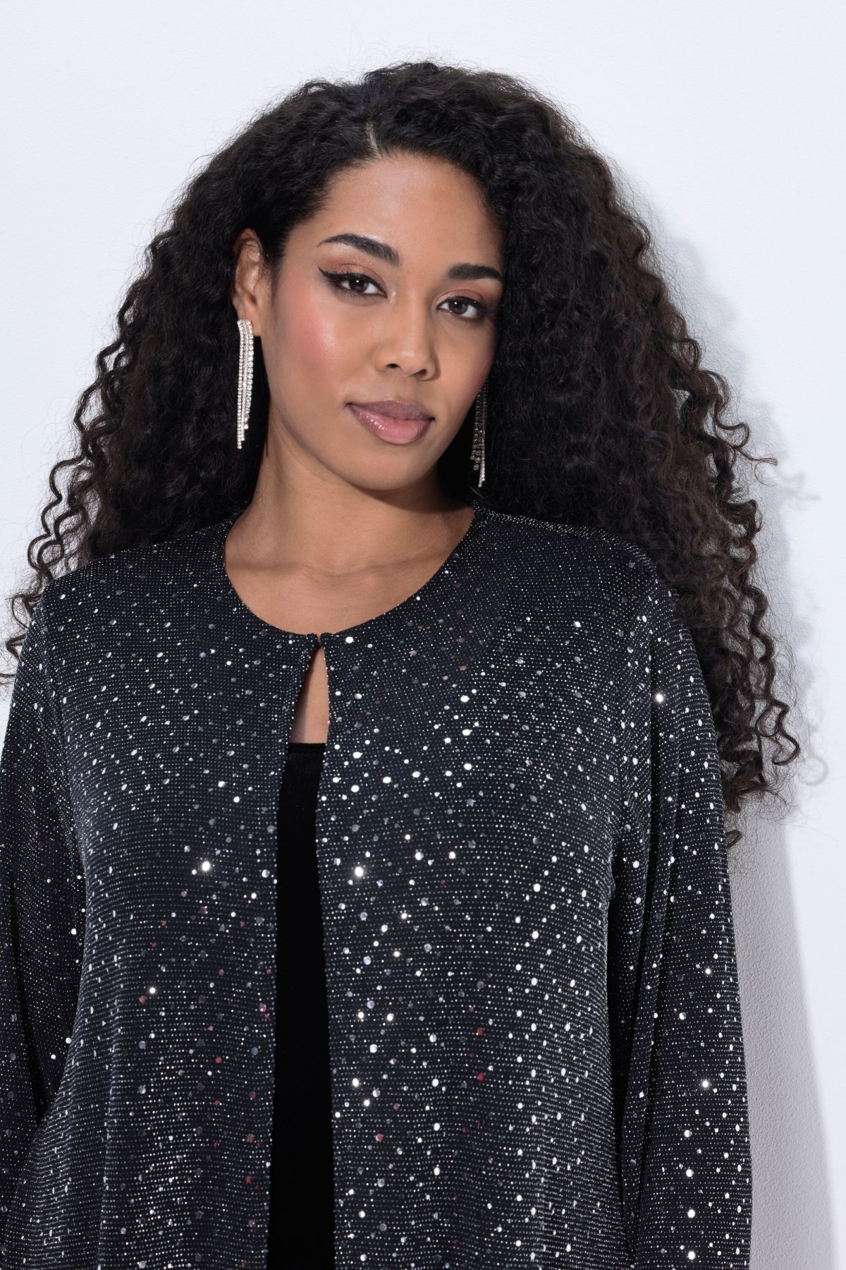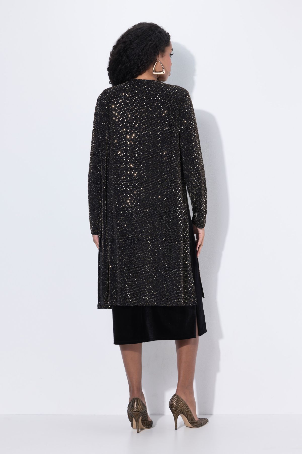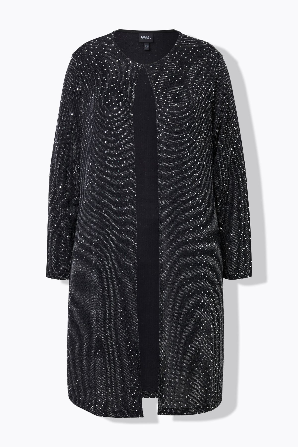 Дълго сако с пайетени акценти. Отворено отпред. С дълги ръкави и комфортна кройка. Перфектният завършек за всеки тоалет