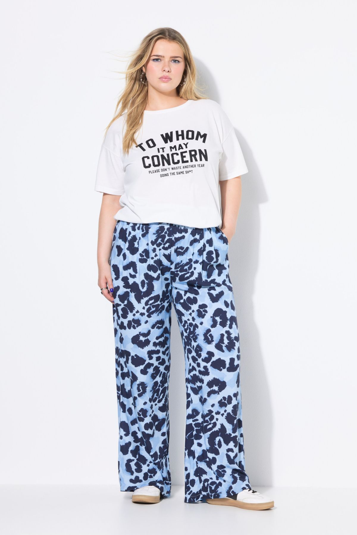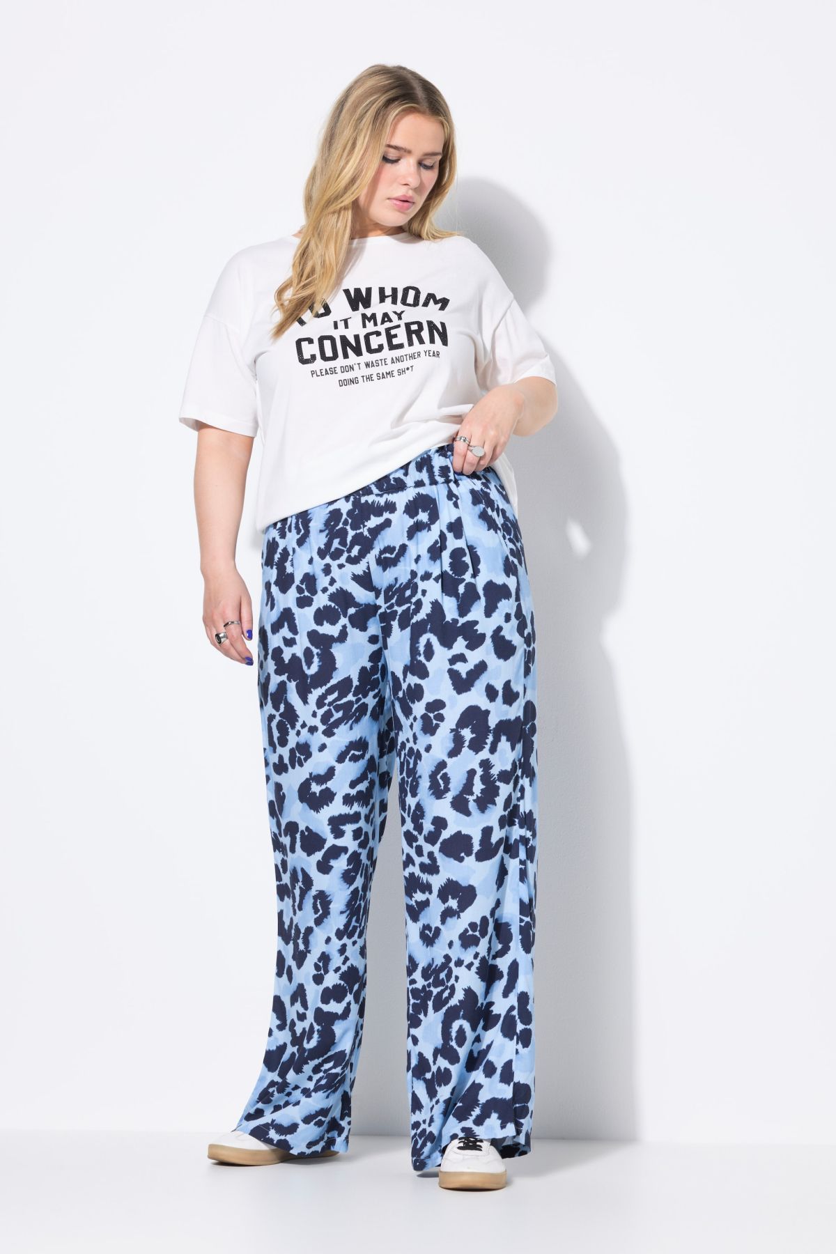 Панталон Palazzo с леопардов принт. Модел с еластична талия и странични джобове. С широки крачоли. От мека, комфортна материя.