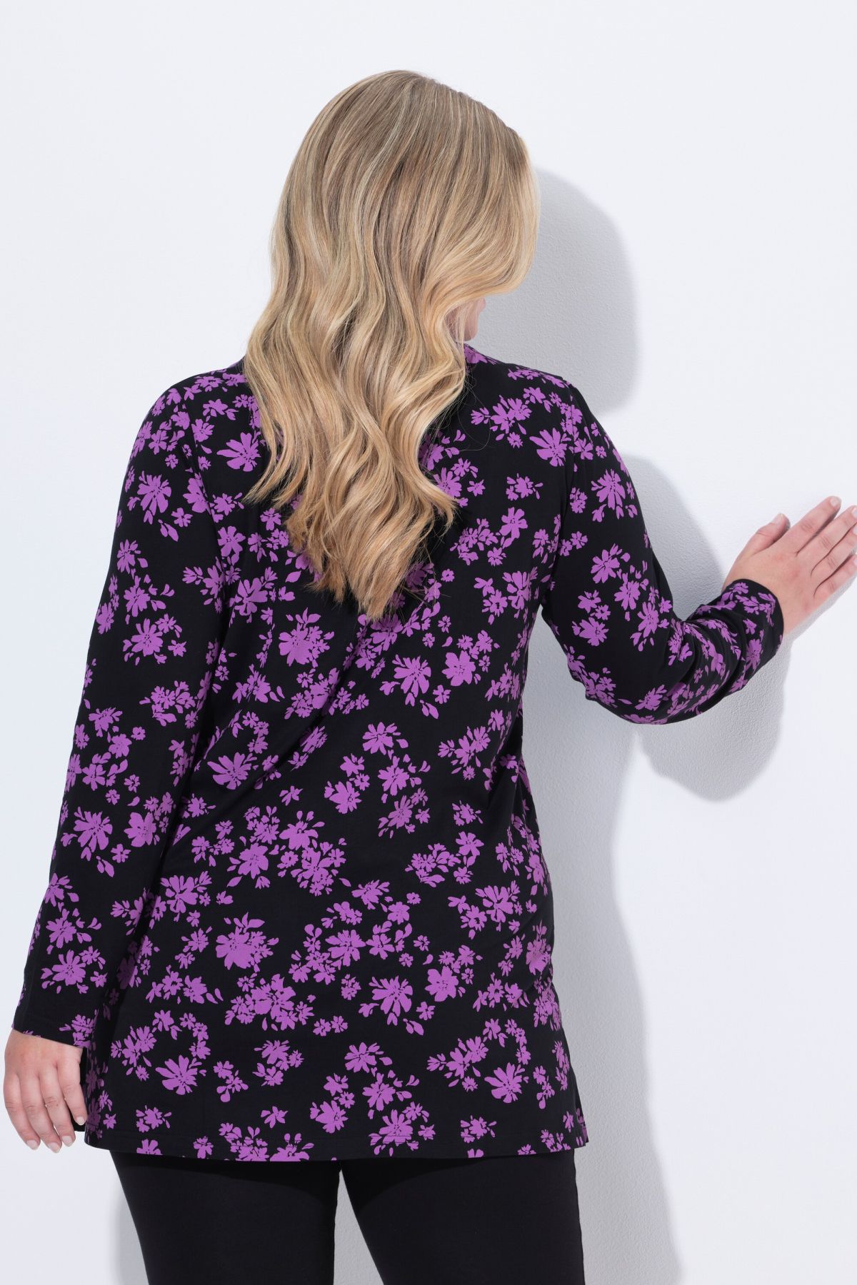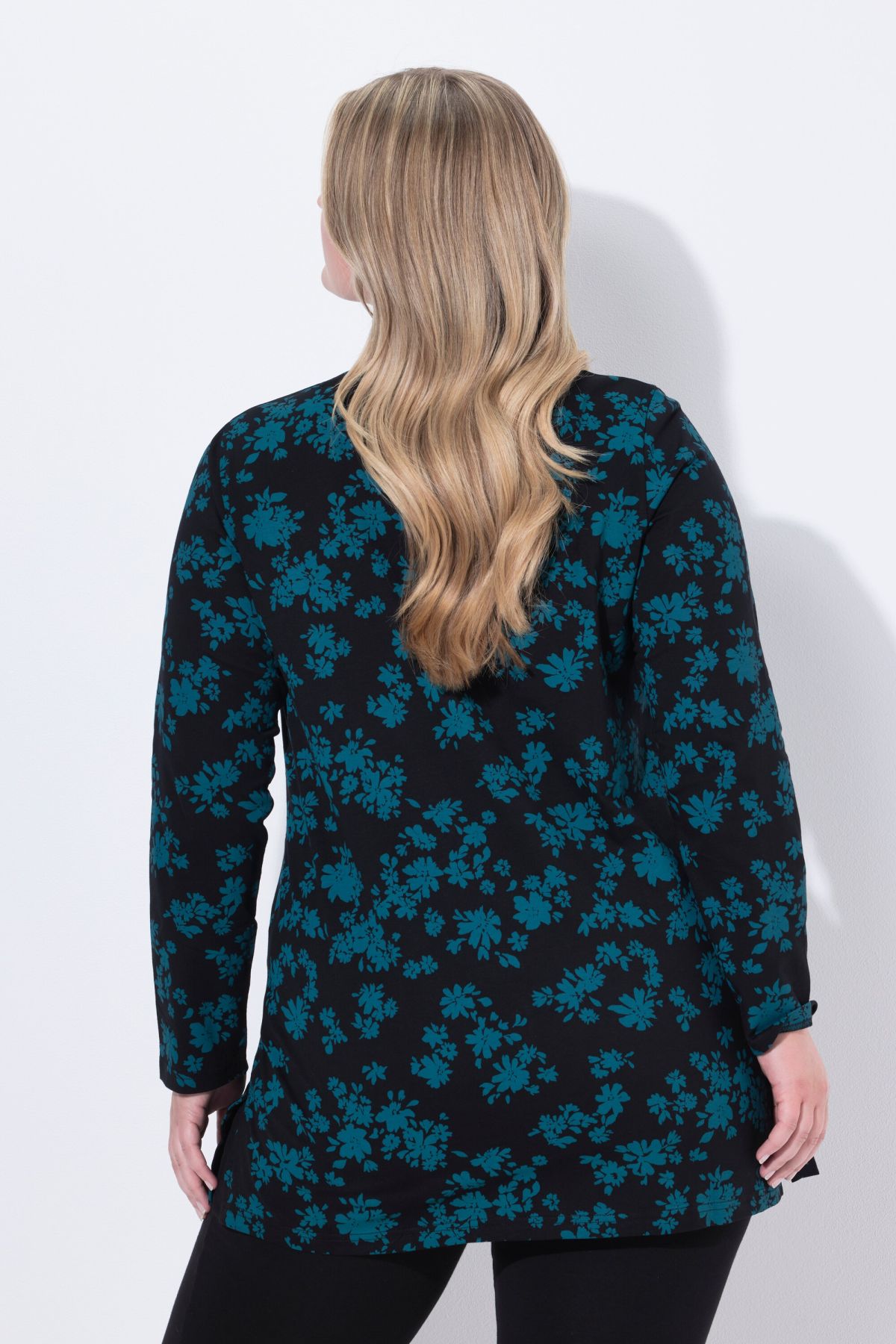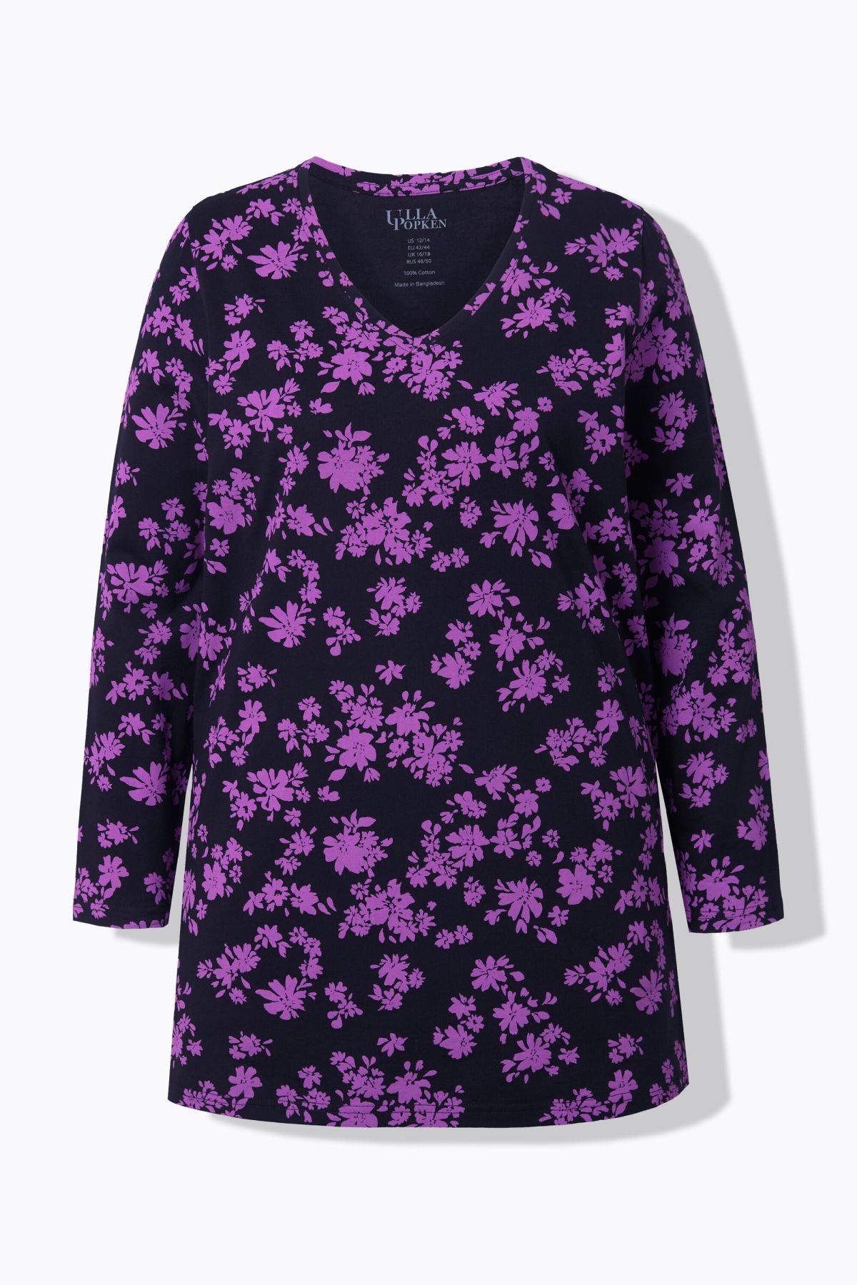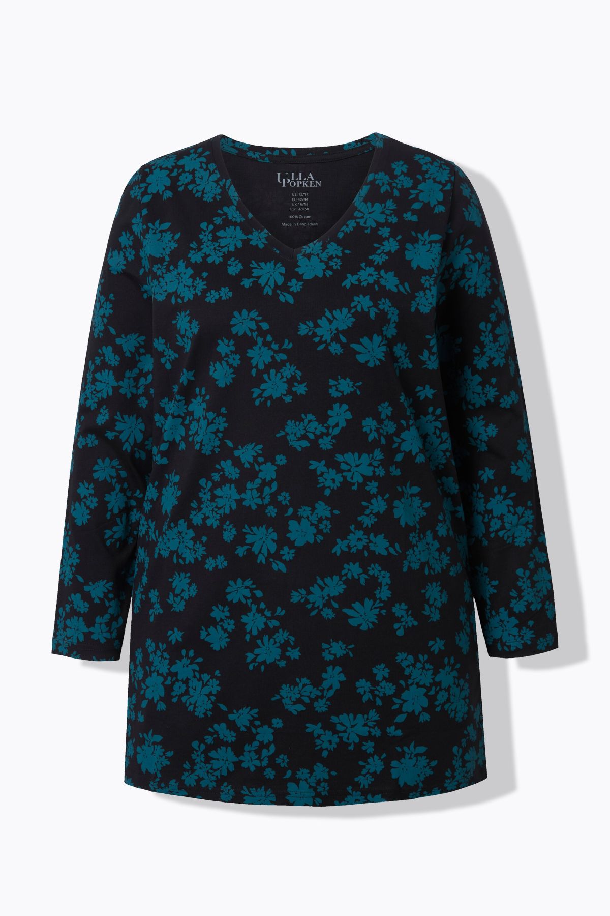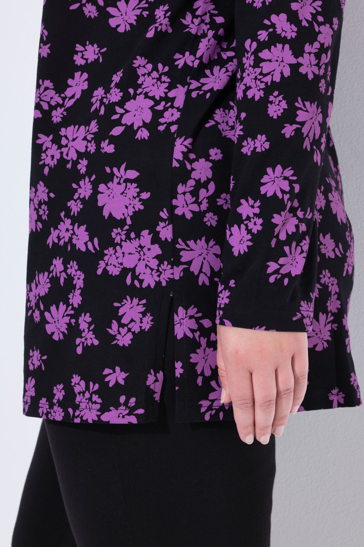 Туника с принт на цветя. С А - линия на силуета, от мека памучна материя. С V - образно деколте и дълги ръкави.