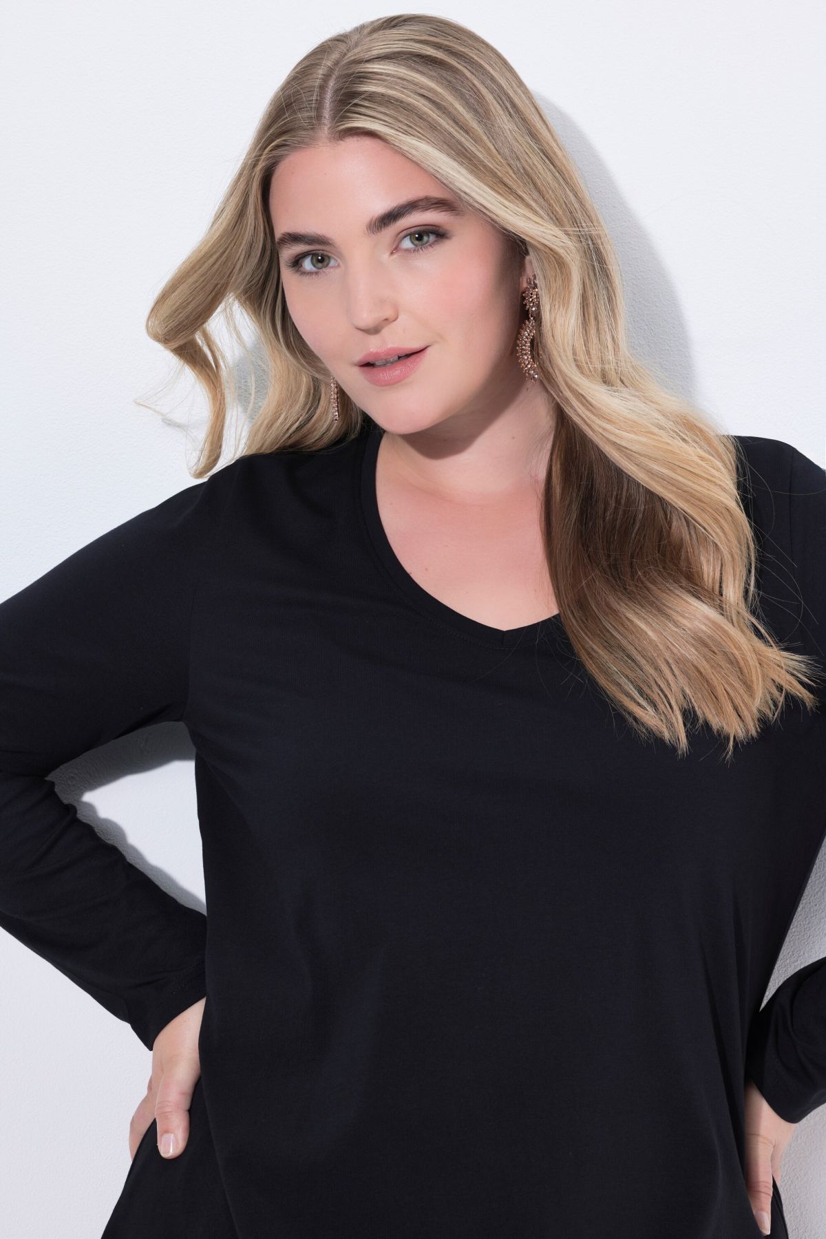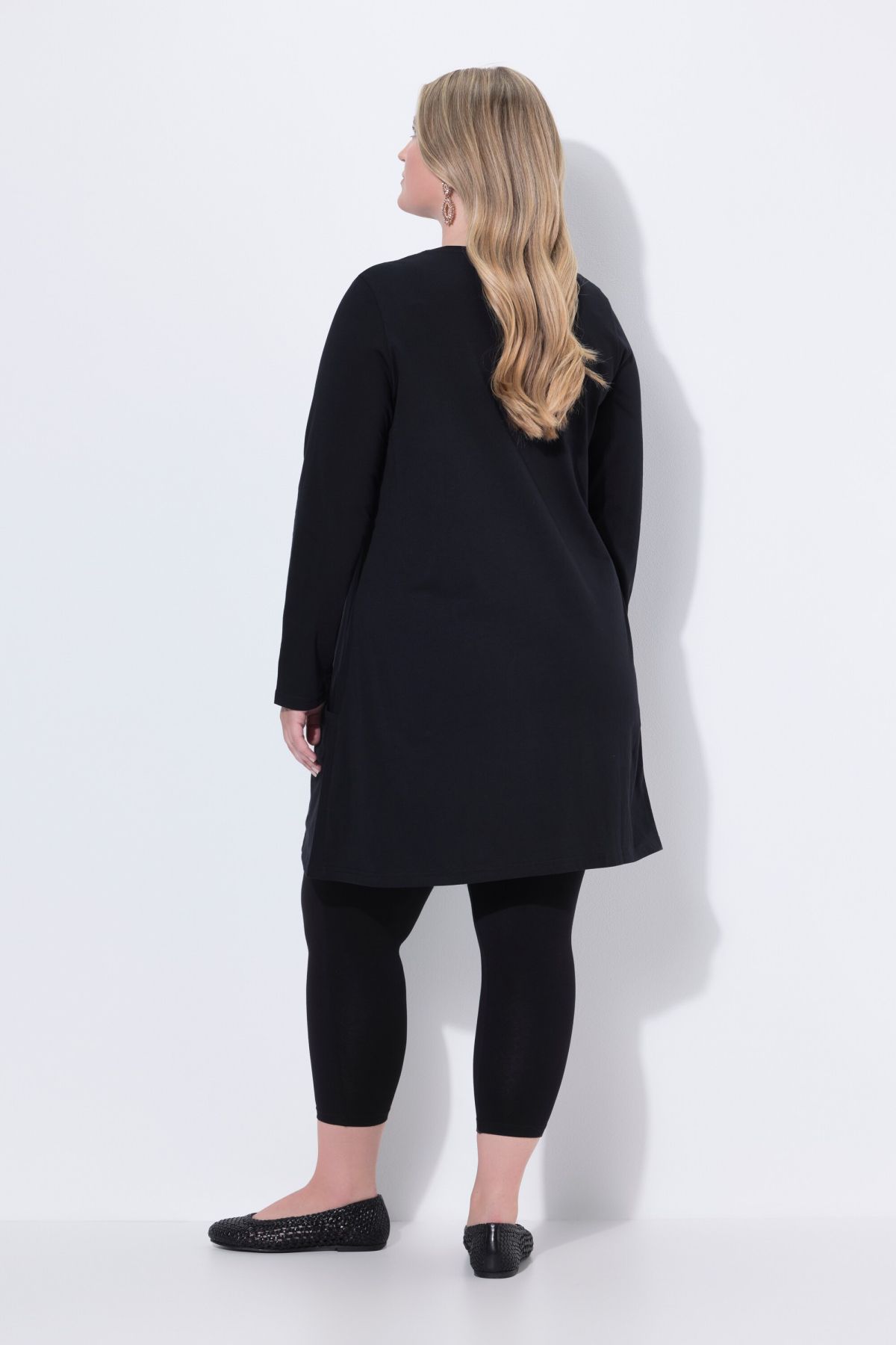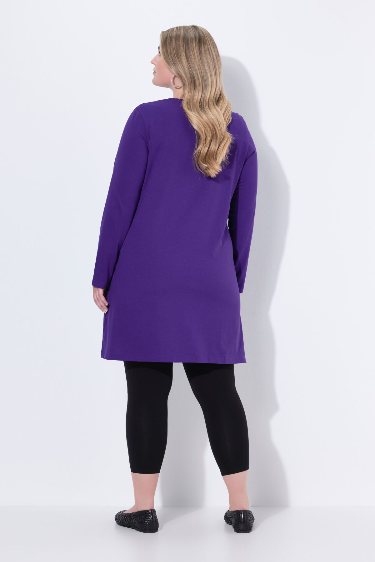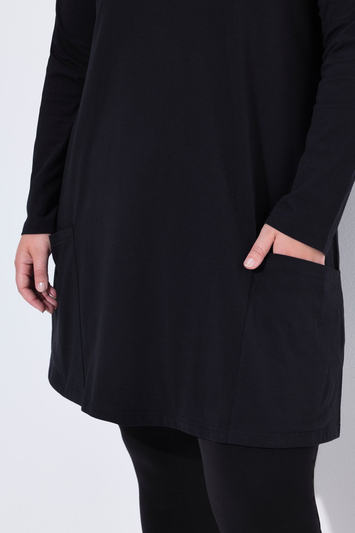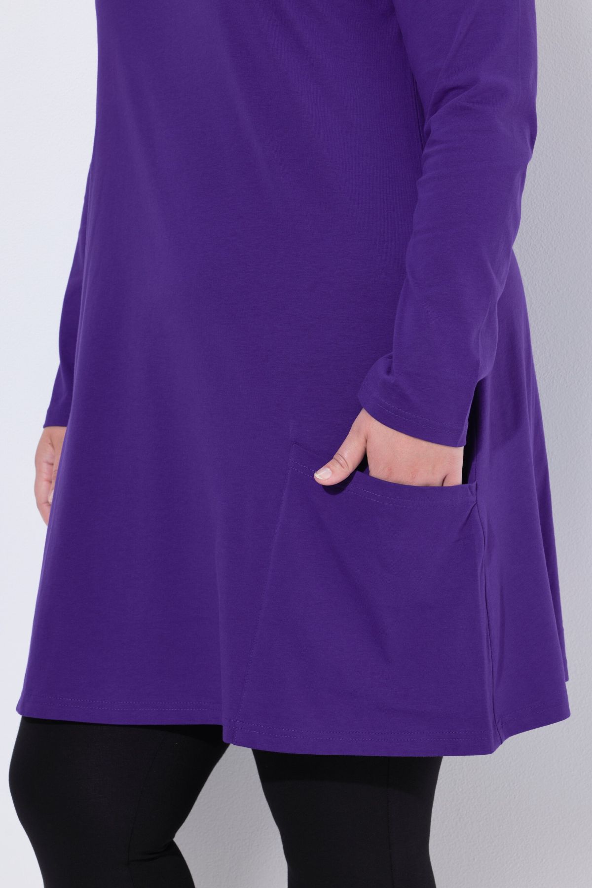 Туника с кръгло деколте и А -линия на силуета. Перфектния старт на новия сезон. С дълги ръкави и странични шевови джобове.