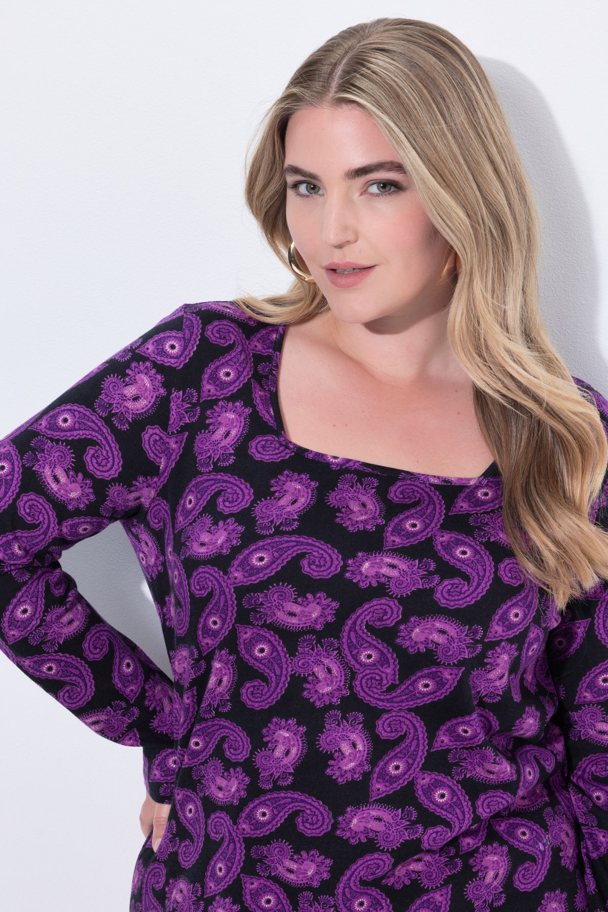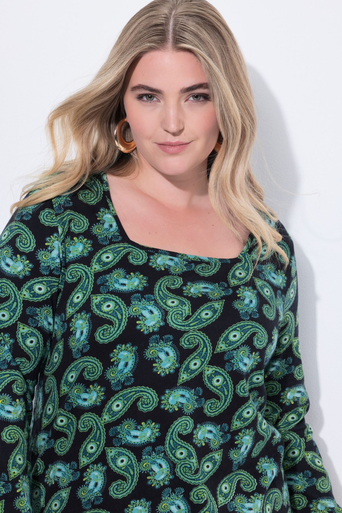 Туника с модерен пейзли принт с А - линия на силуета - традиционната градска визия с модерни акценти. С квадратно деколте и 3/4 ръкави.