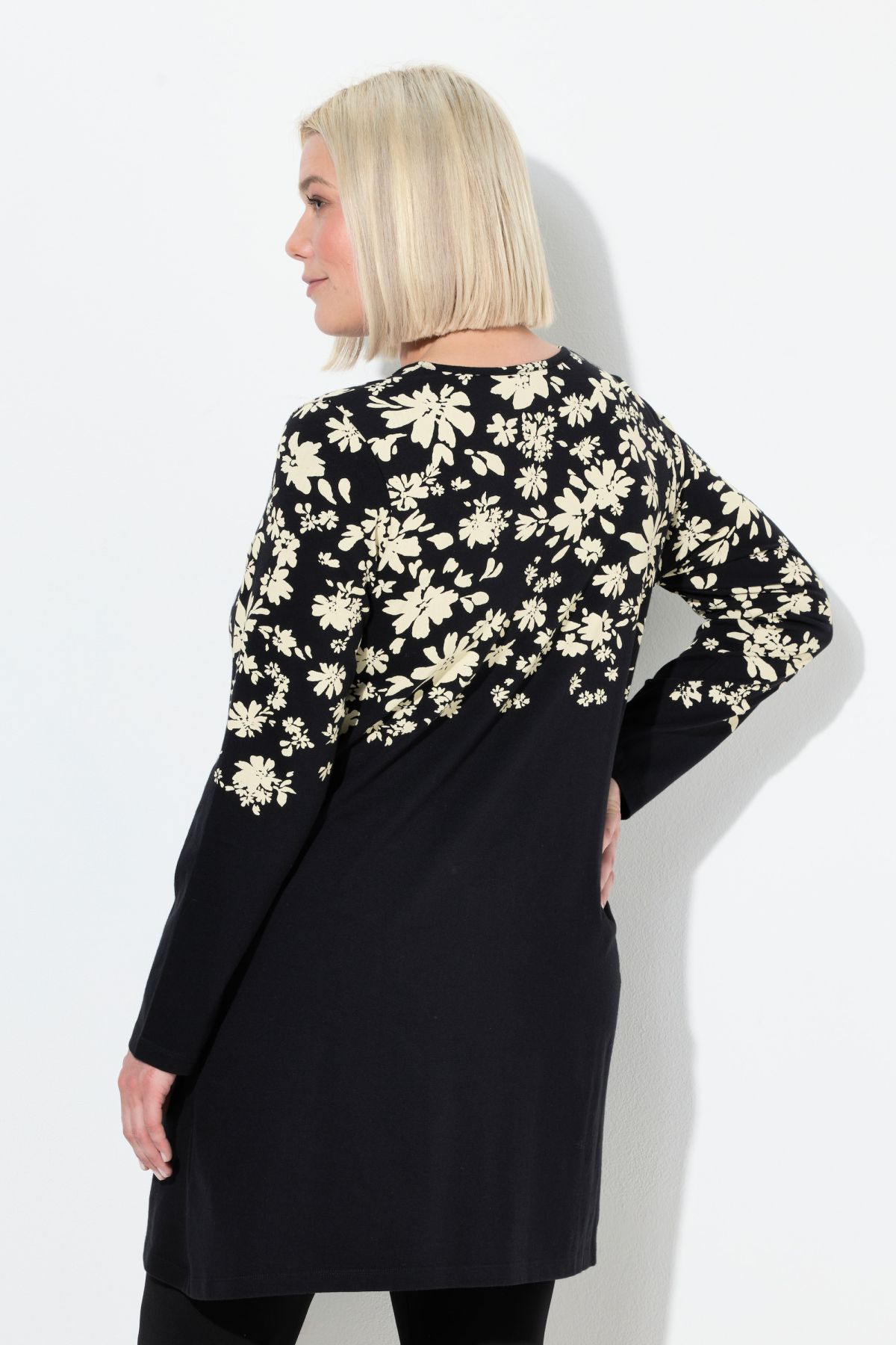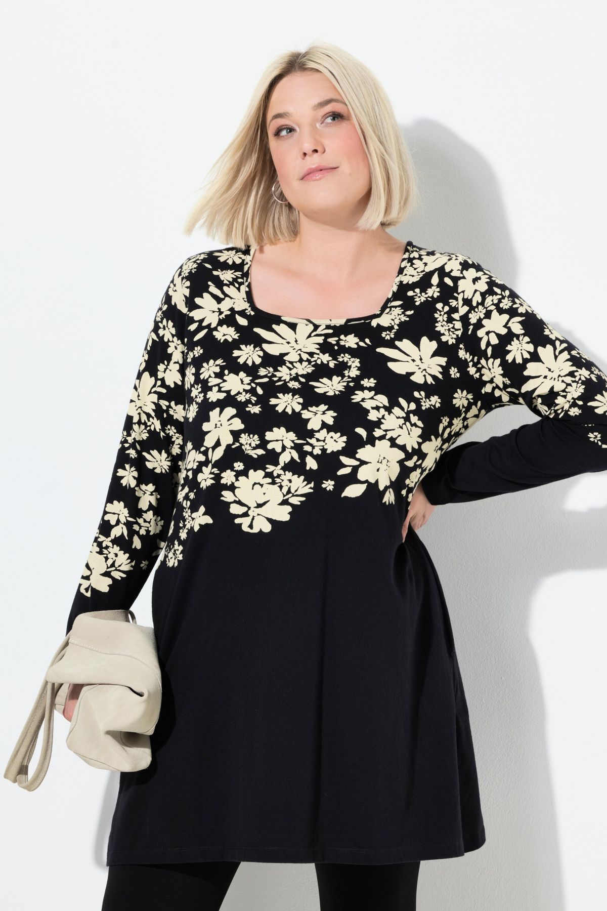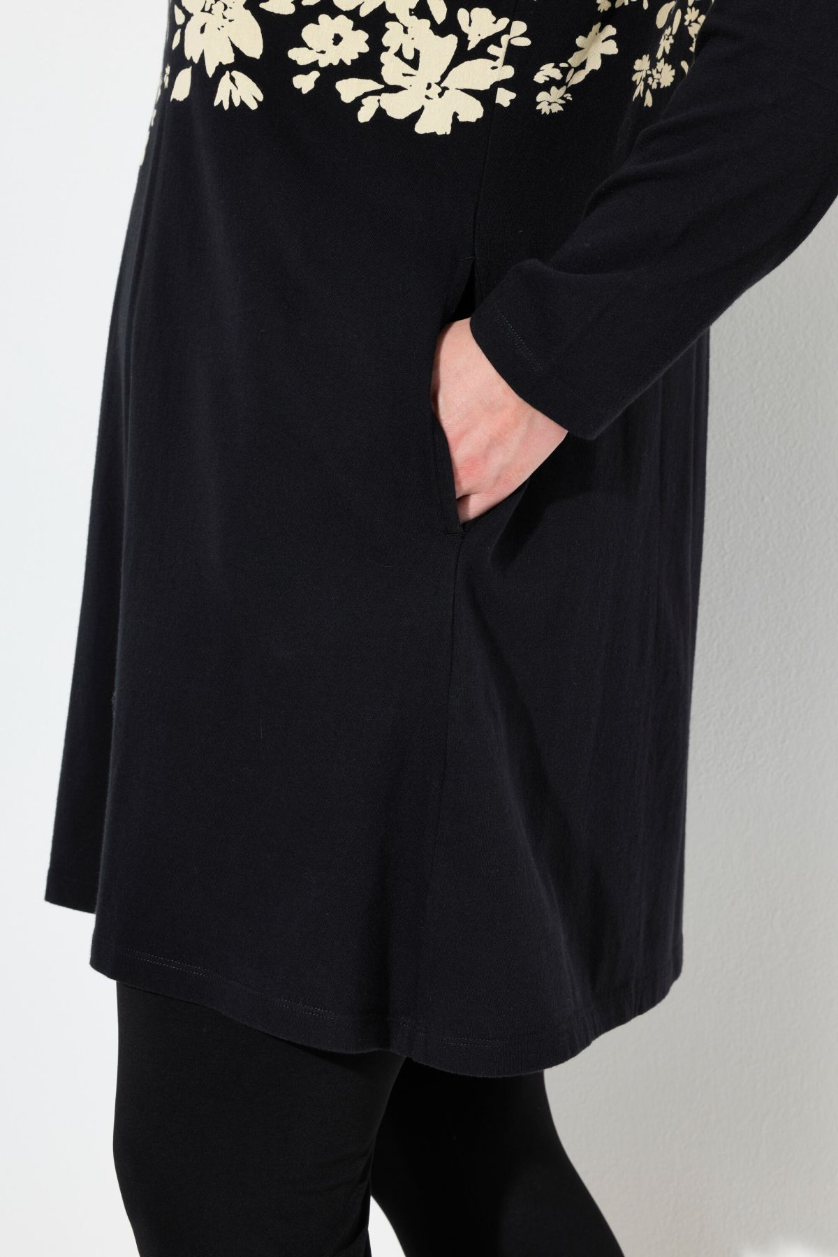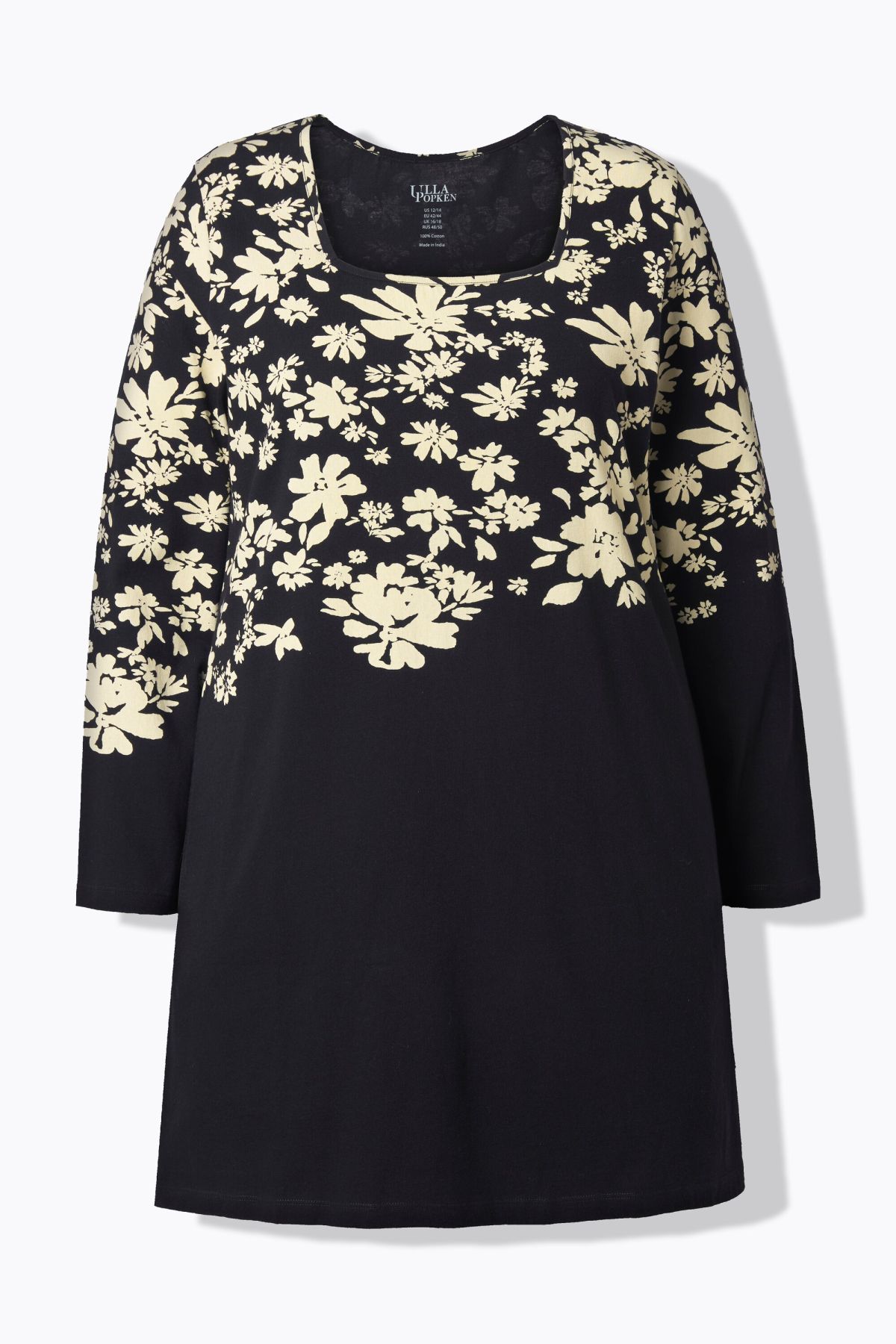 Туника с флорален пейзли принт с А - линия на силуета. С дълбоко кръгло деколте. С дълги ръкави.