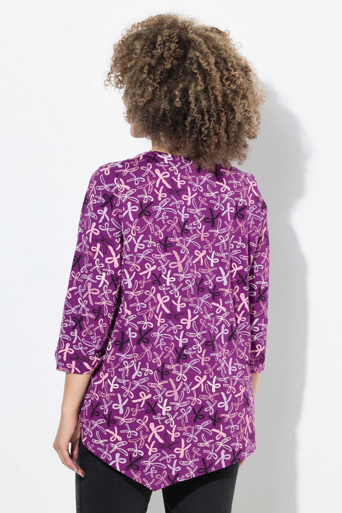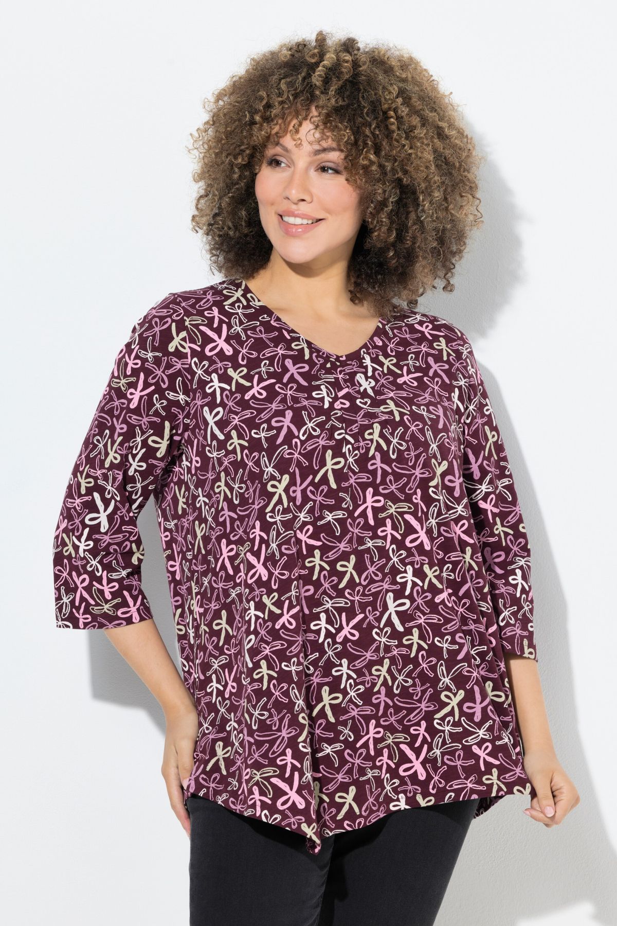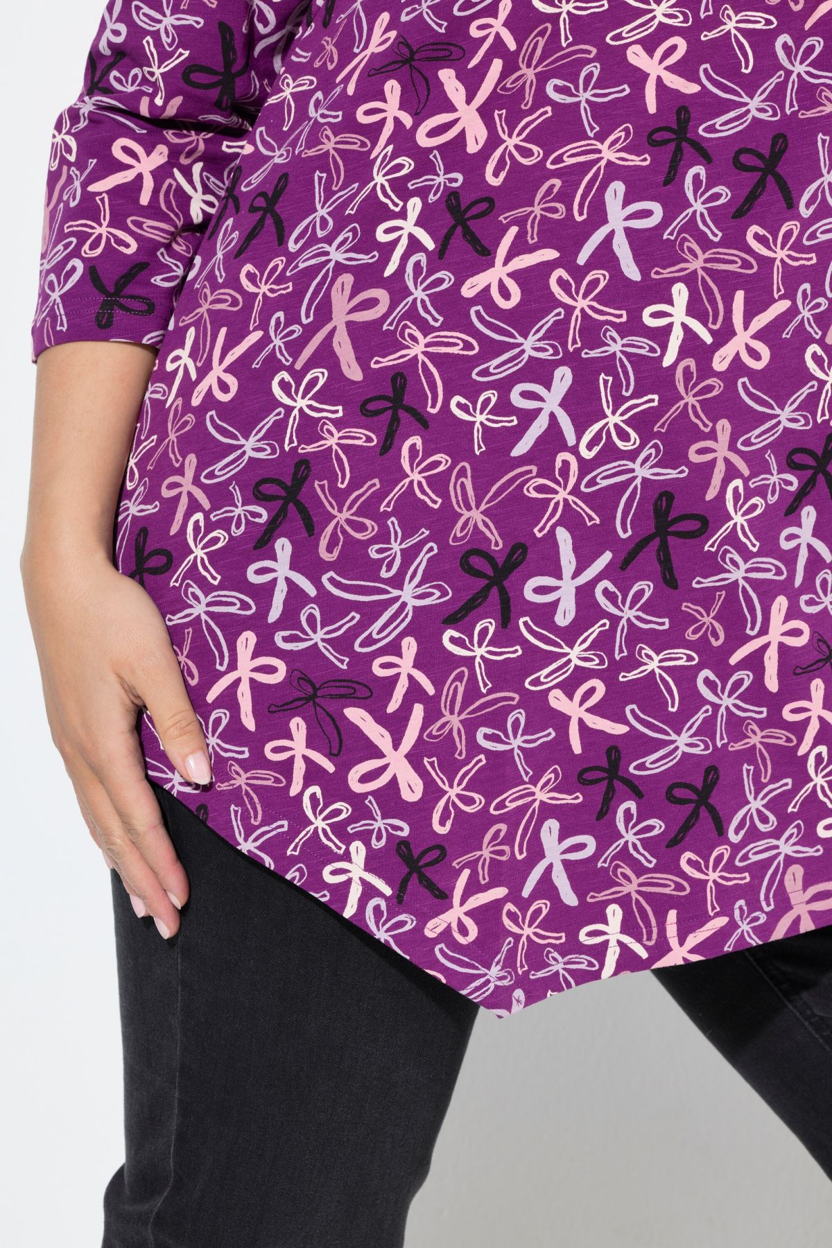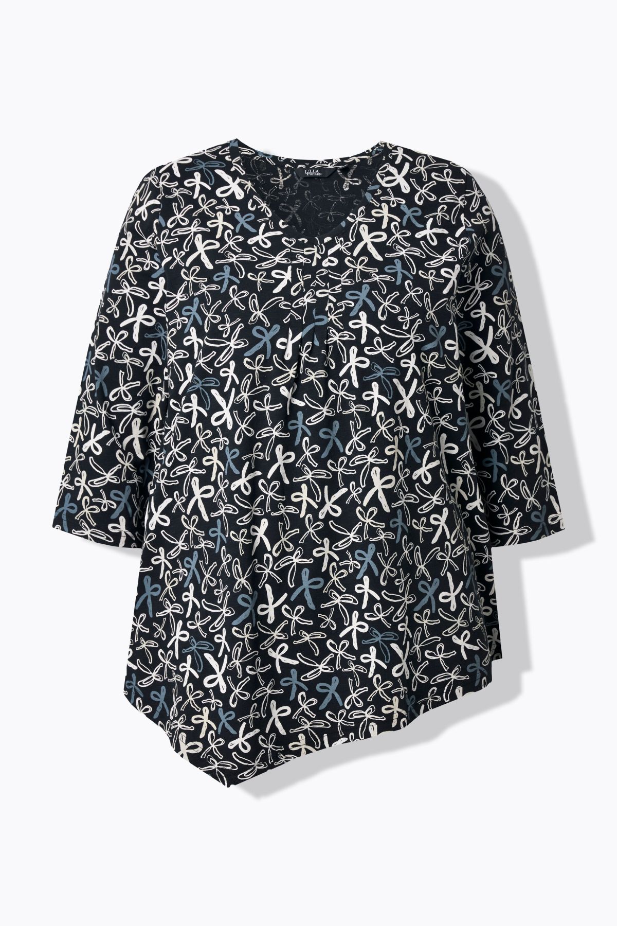 Тениска с принт на панделки с асиметричен подгъв. Със заоблено V - образно деколте и 3/4 ръкави. От мека, памучна материя