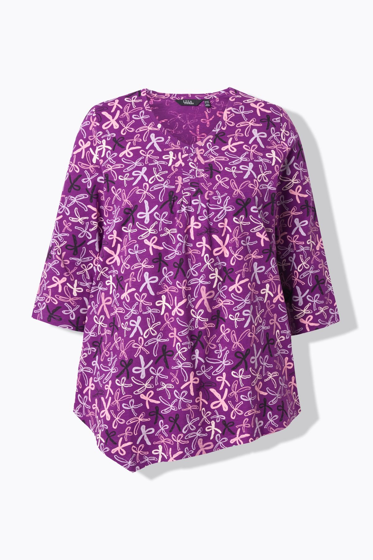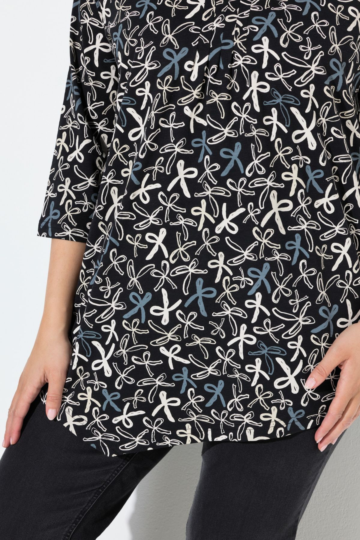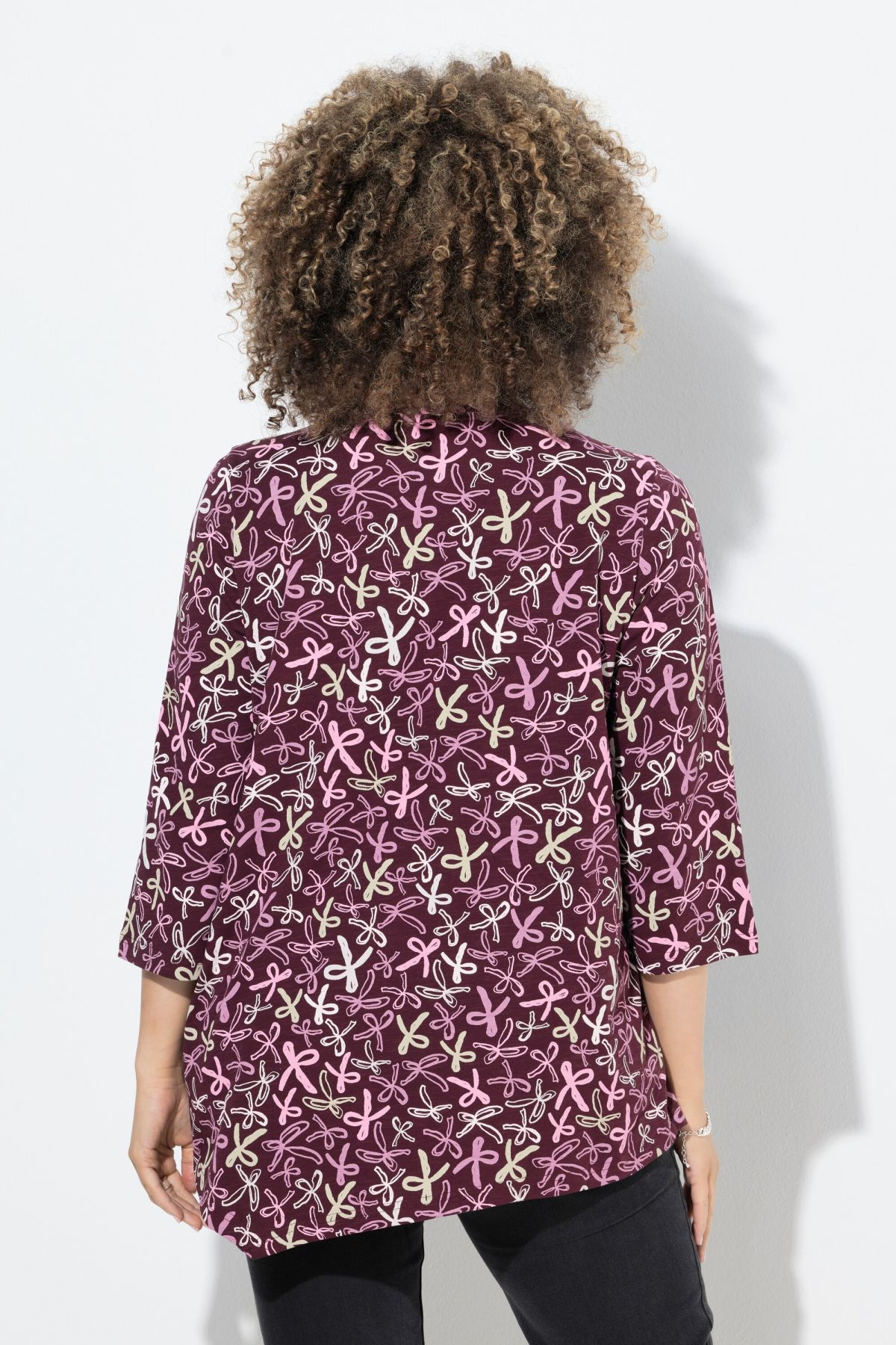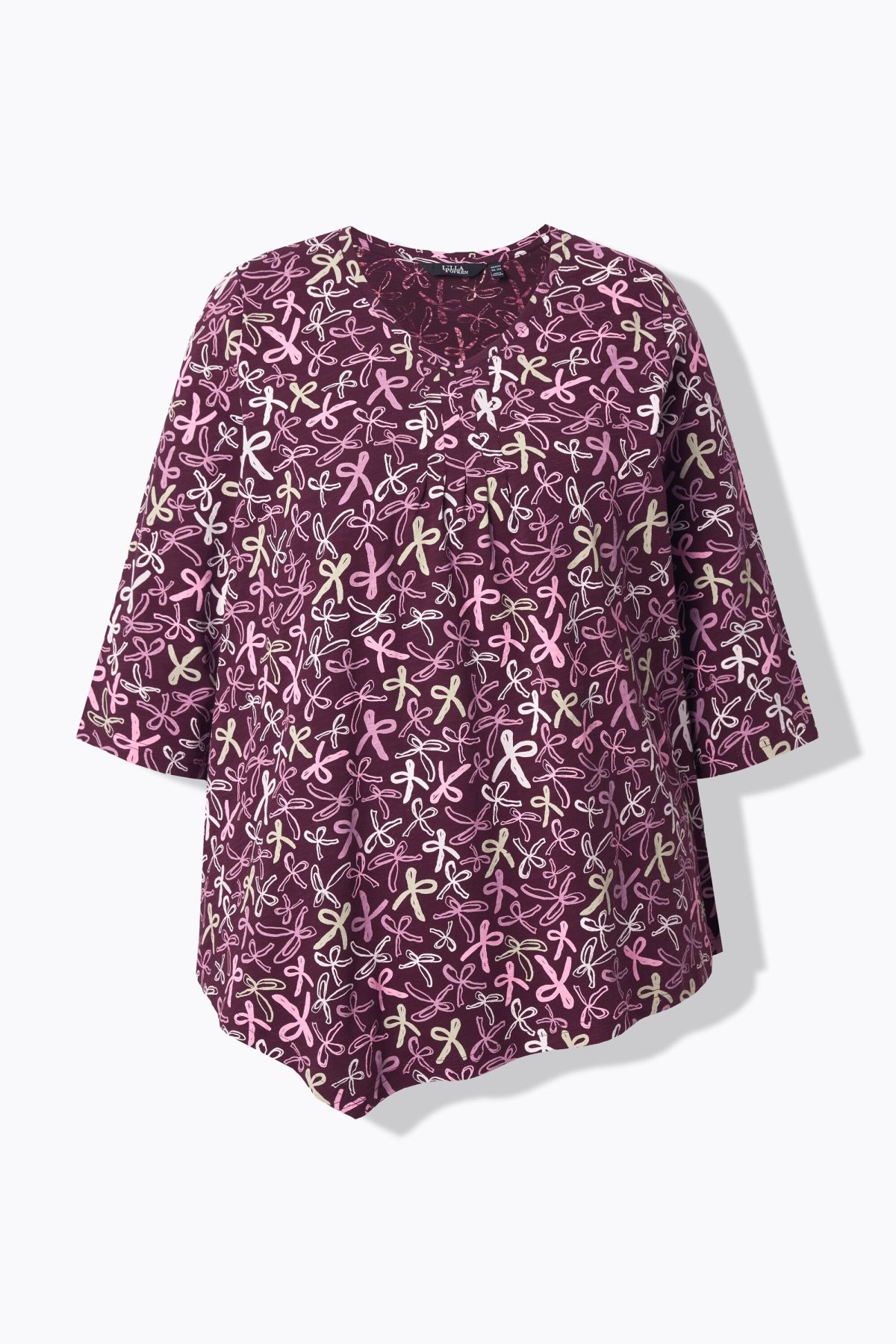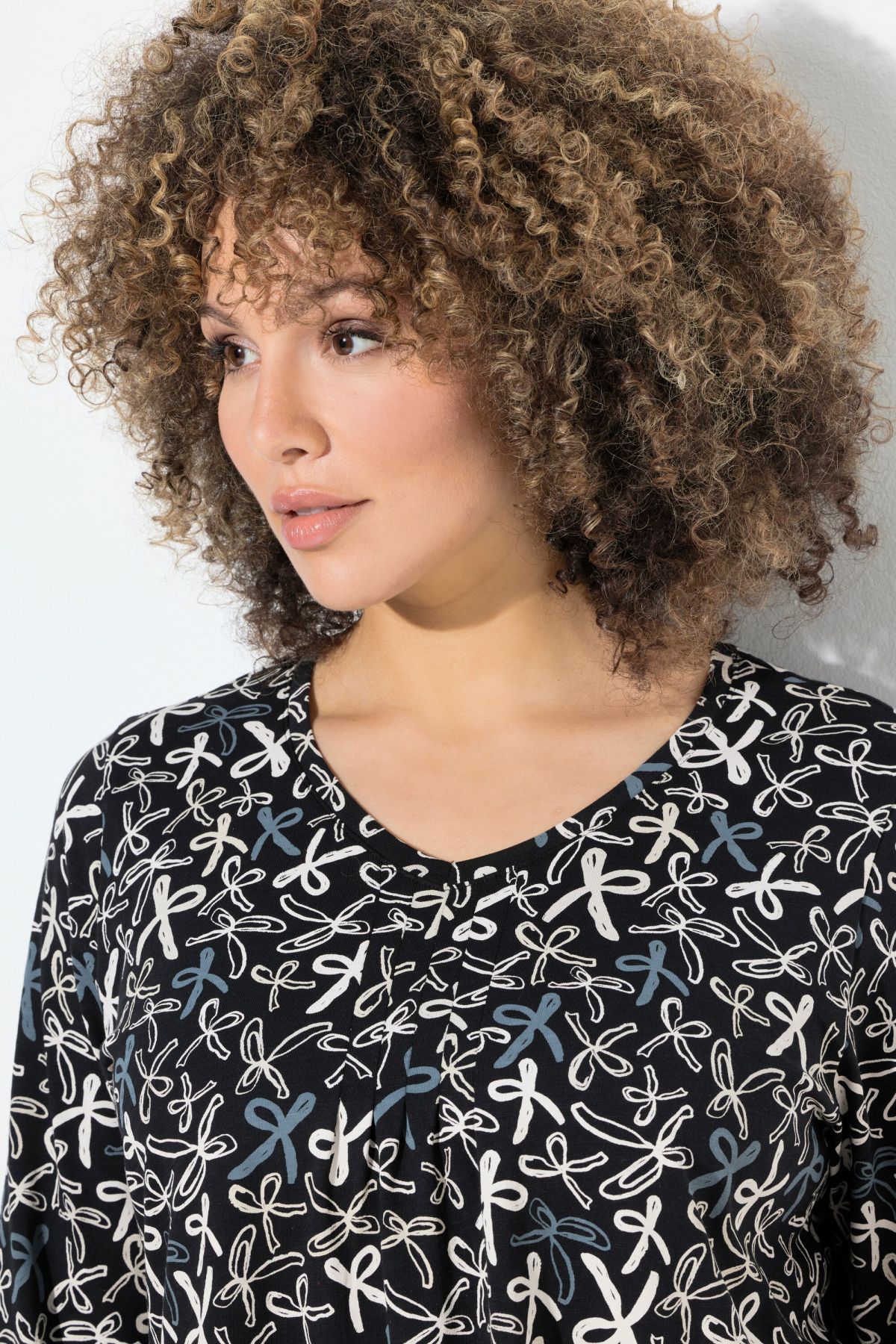 Тениска с принт на панделки с асиметричен подгъв. Със заоблено V - образно деколте и 3/4 ръкави. От мека, памучна материя