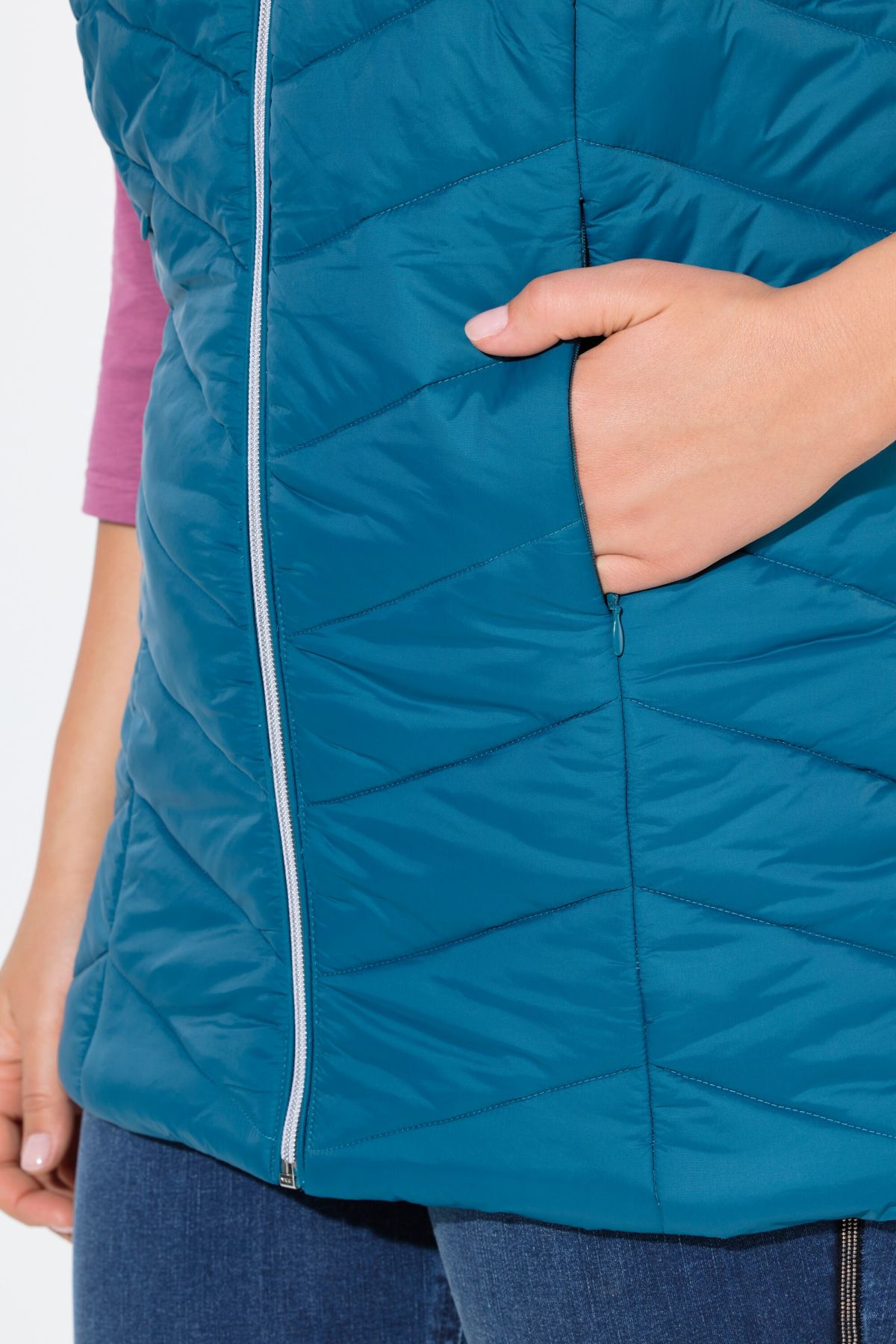 Водонепромокаем елек с цип от мека, ватирана материя. Подходящ за пролетните сутрини. С изправена яка и странични джобове.