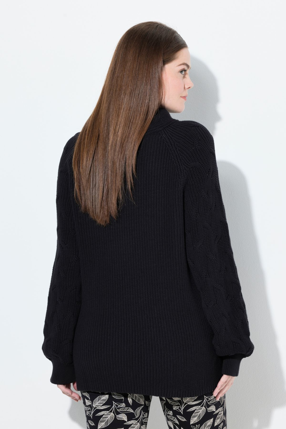 Пуловер с модерна плетка - перфектен за почивните дни. От супер мека, свободна материя. С поло яка и дълги ръкави.