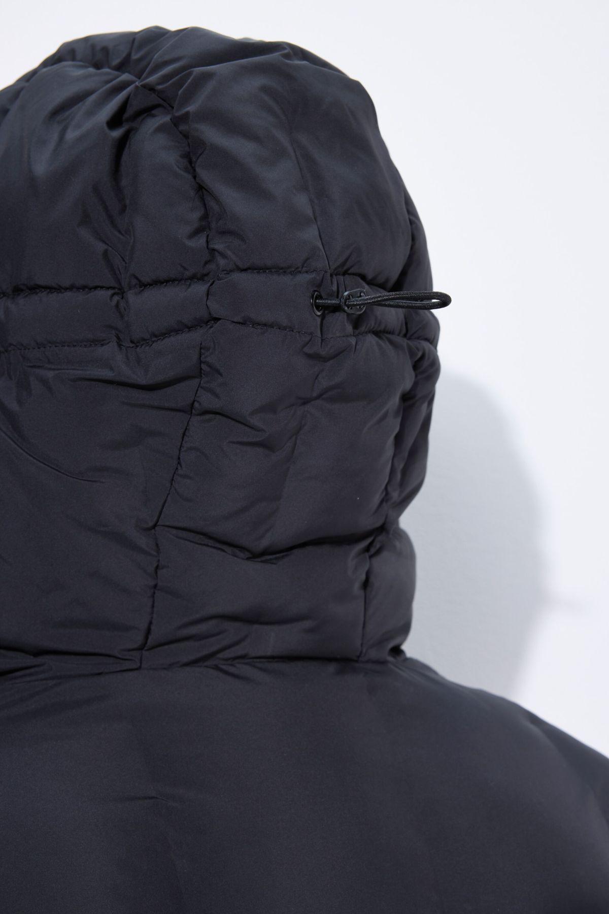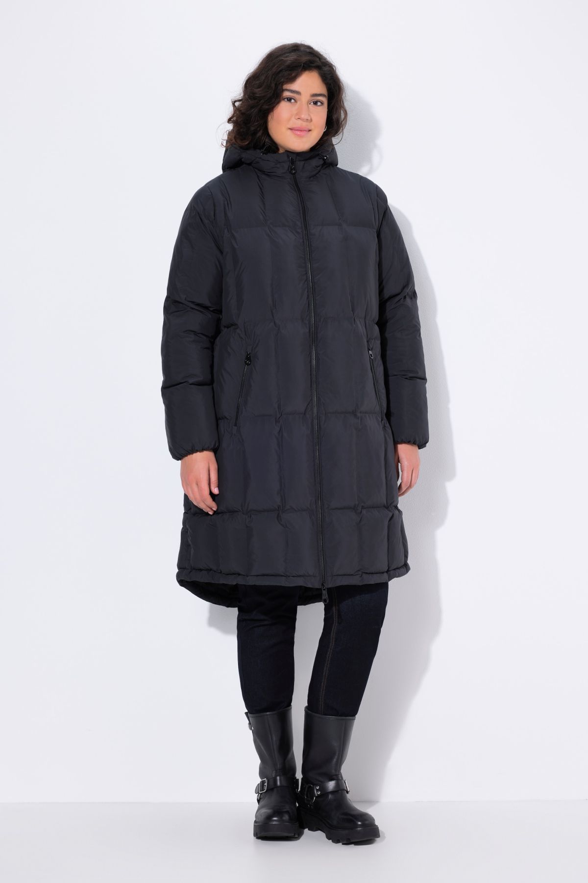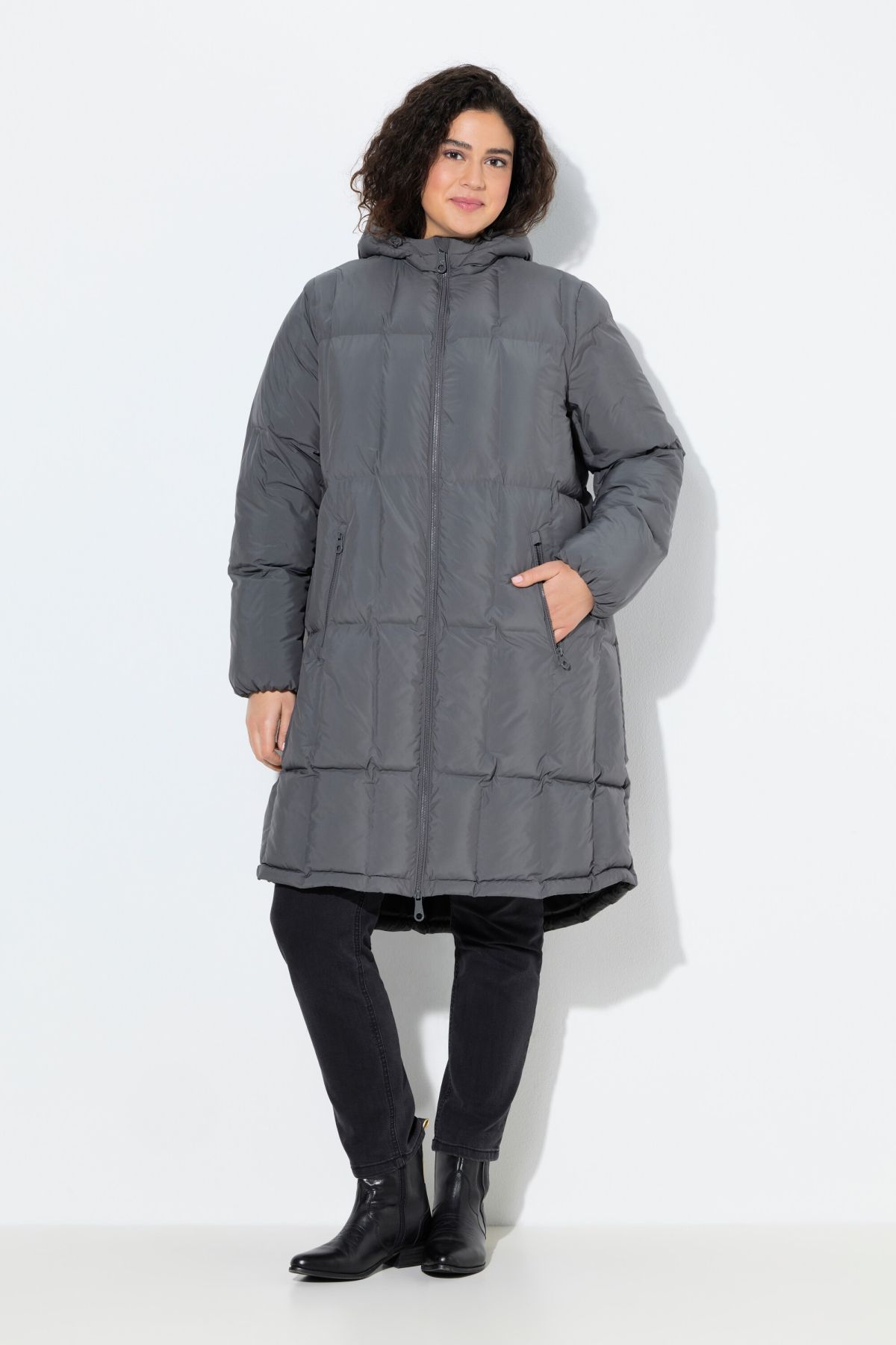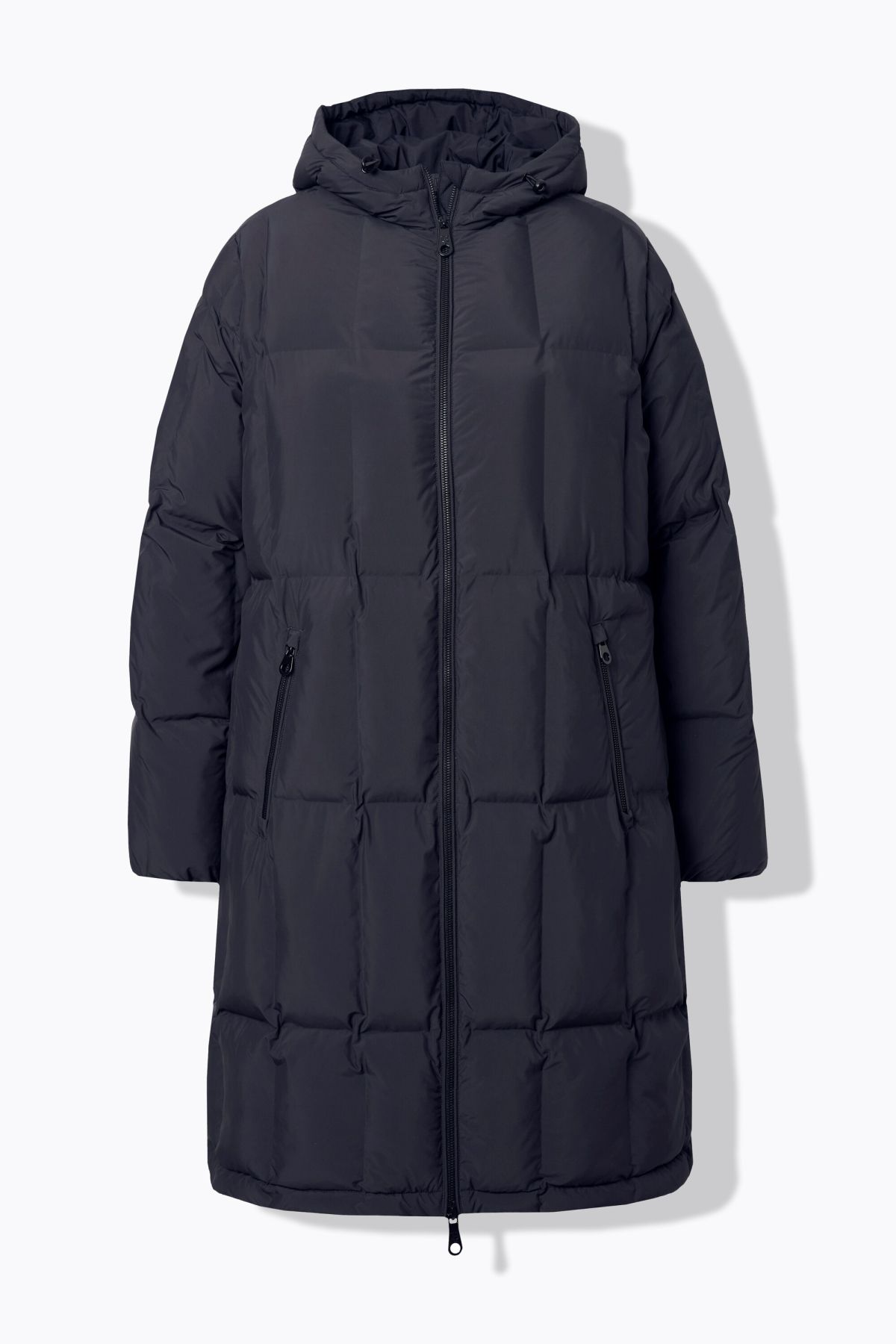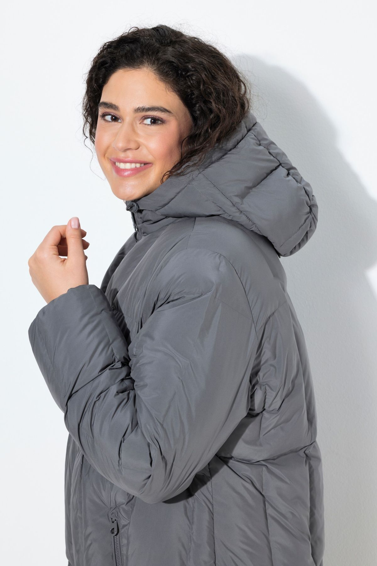 Леко, ватирано палто от водонепромокаема материя. С шевови акценти на материята. Дизайн с качулка, странични джобове и дълги ръкави.