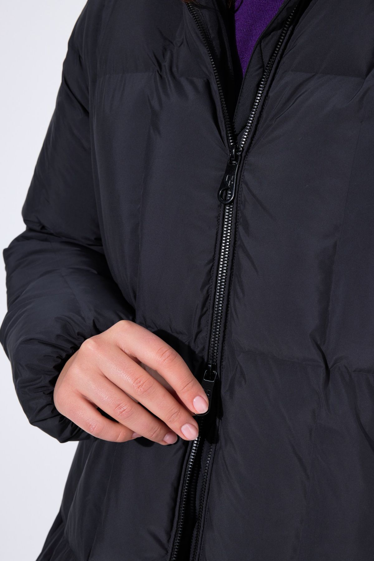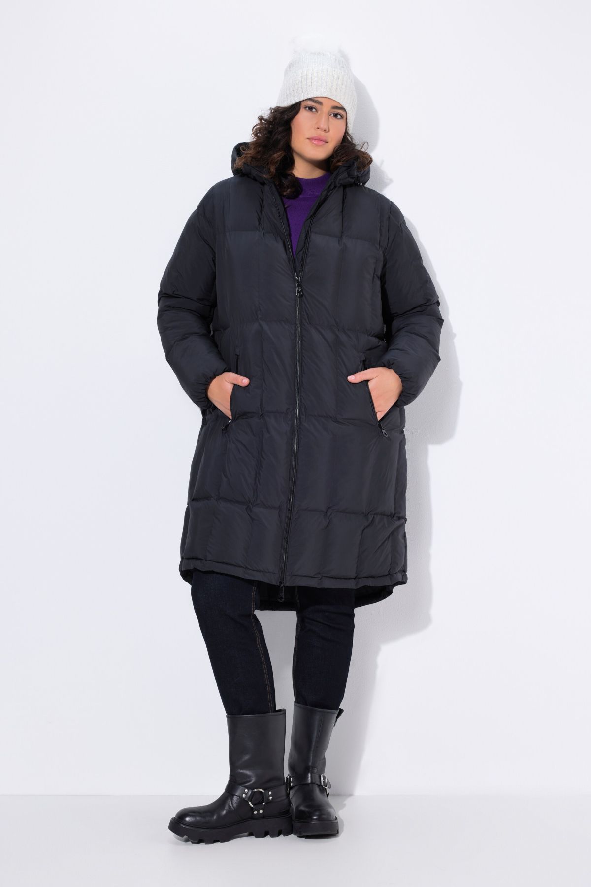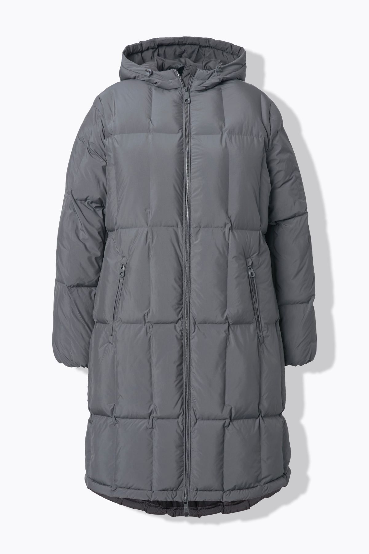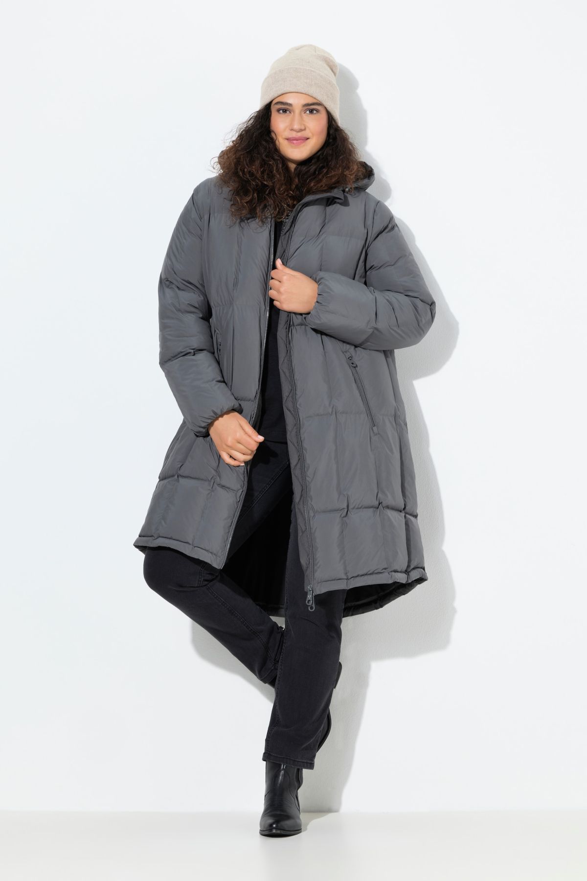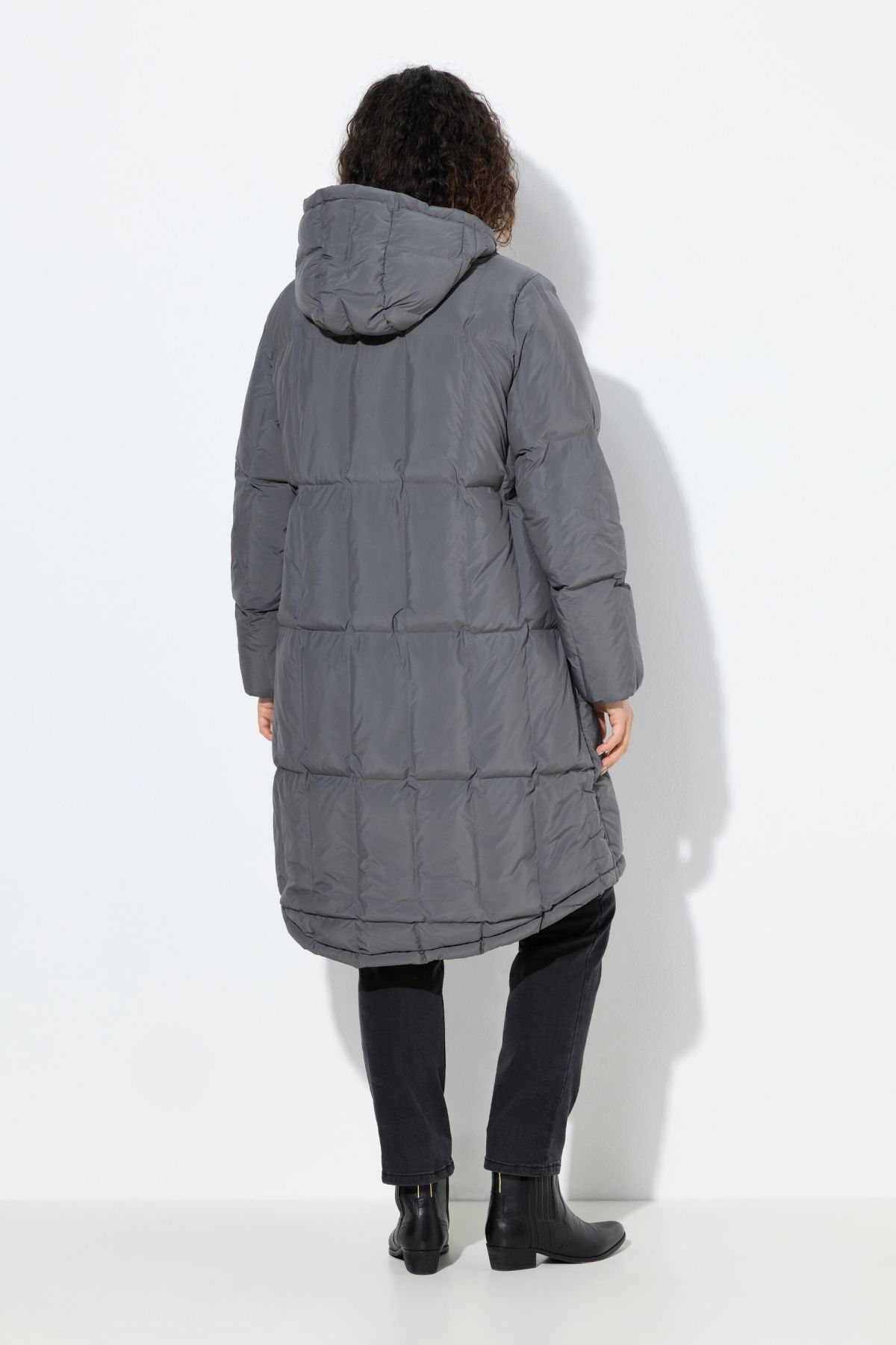 Леко, ватирано палто от водонепромокаема материя. С шевови акценти на материята. Дизайн с качулка, странични джобове и дълги ръкави.
