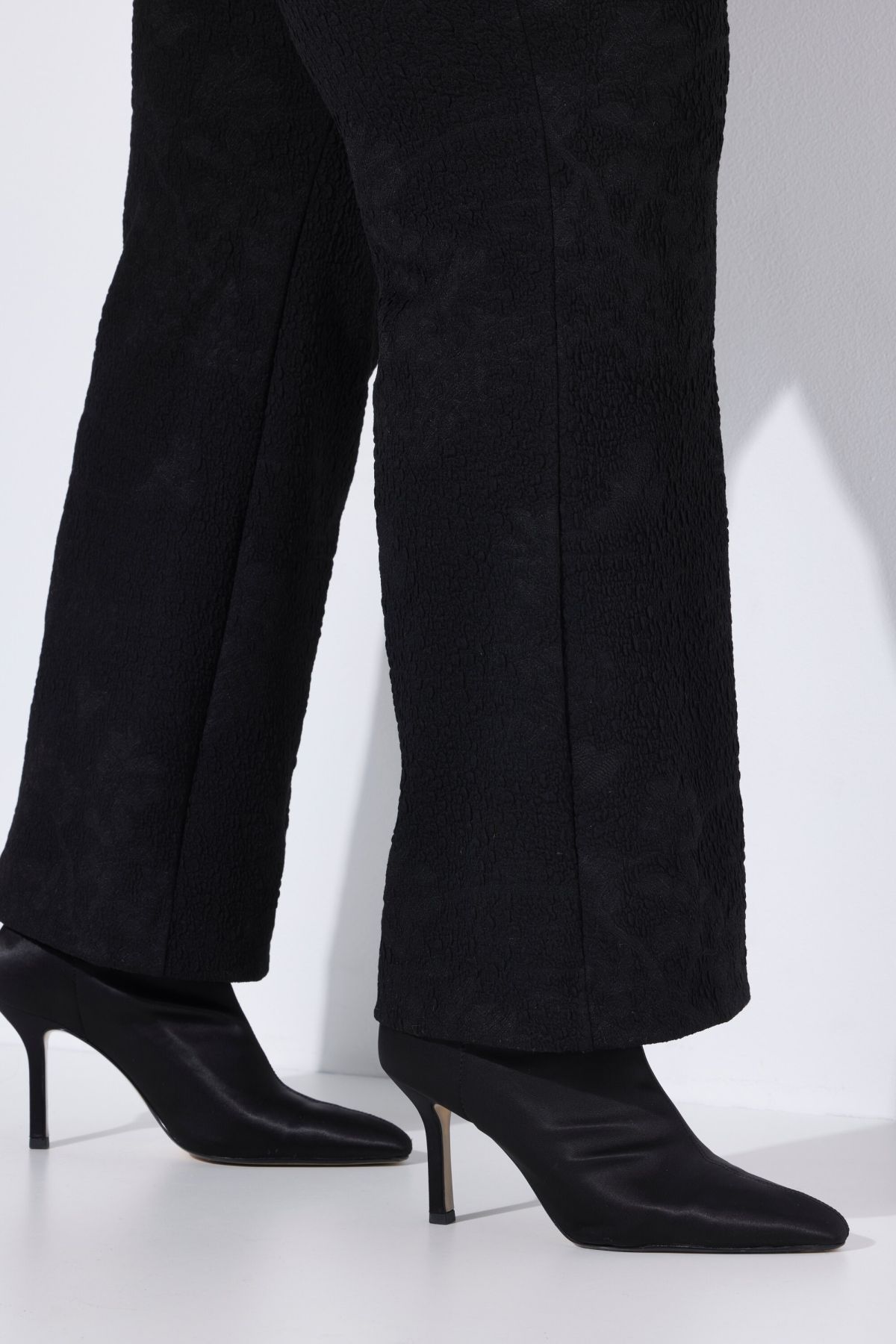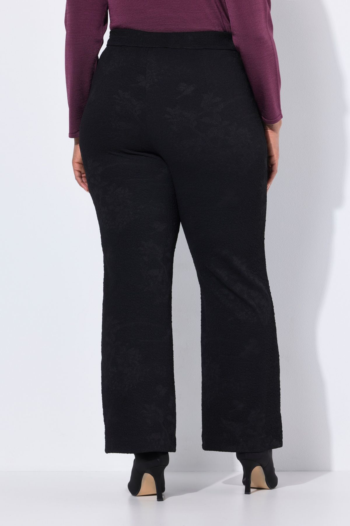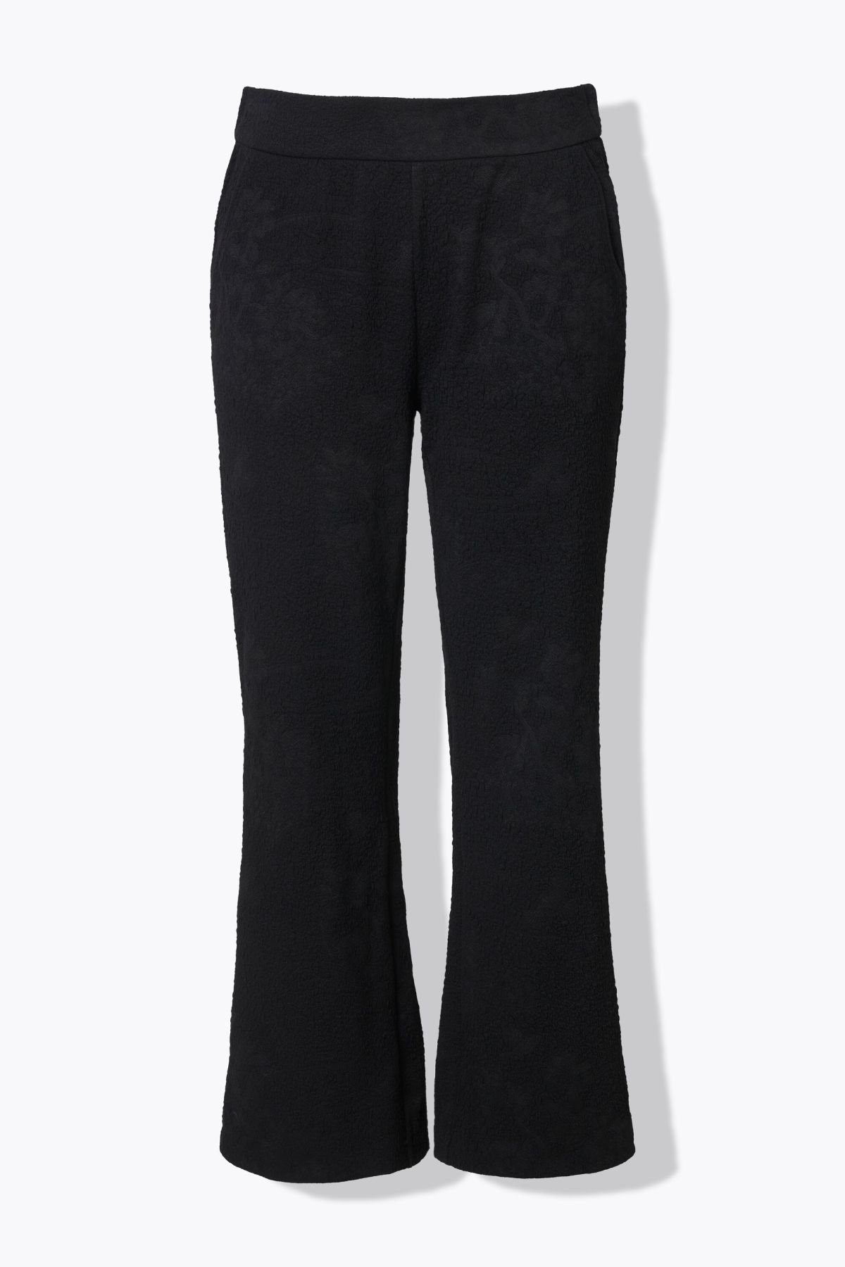 Панталон с флорални акценти. С комфортна, еластична талия и странични джобове. С прави крачоли и елегантна визия.