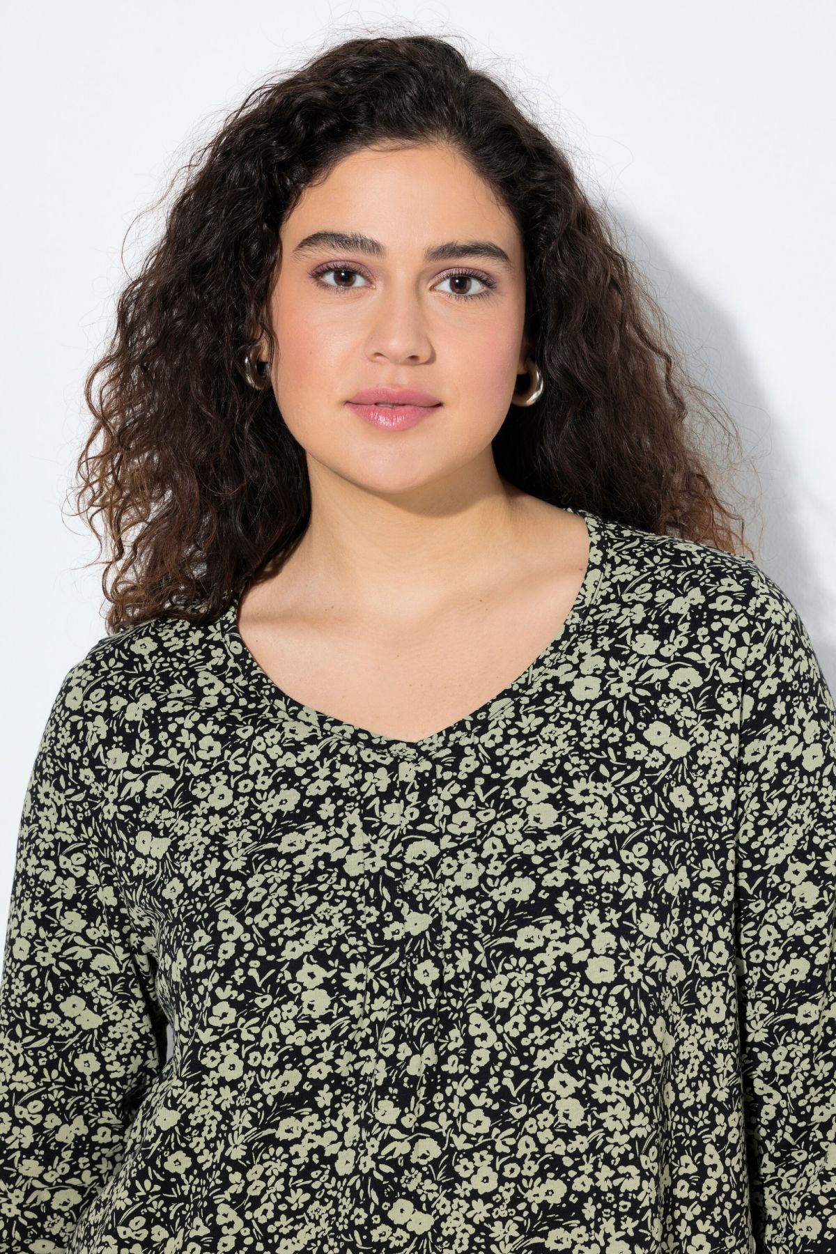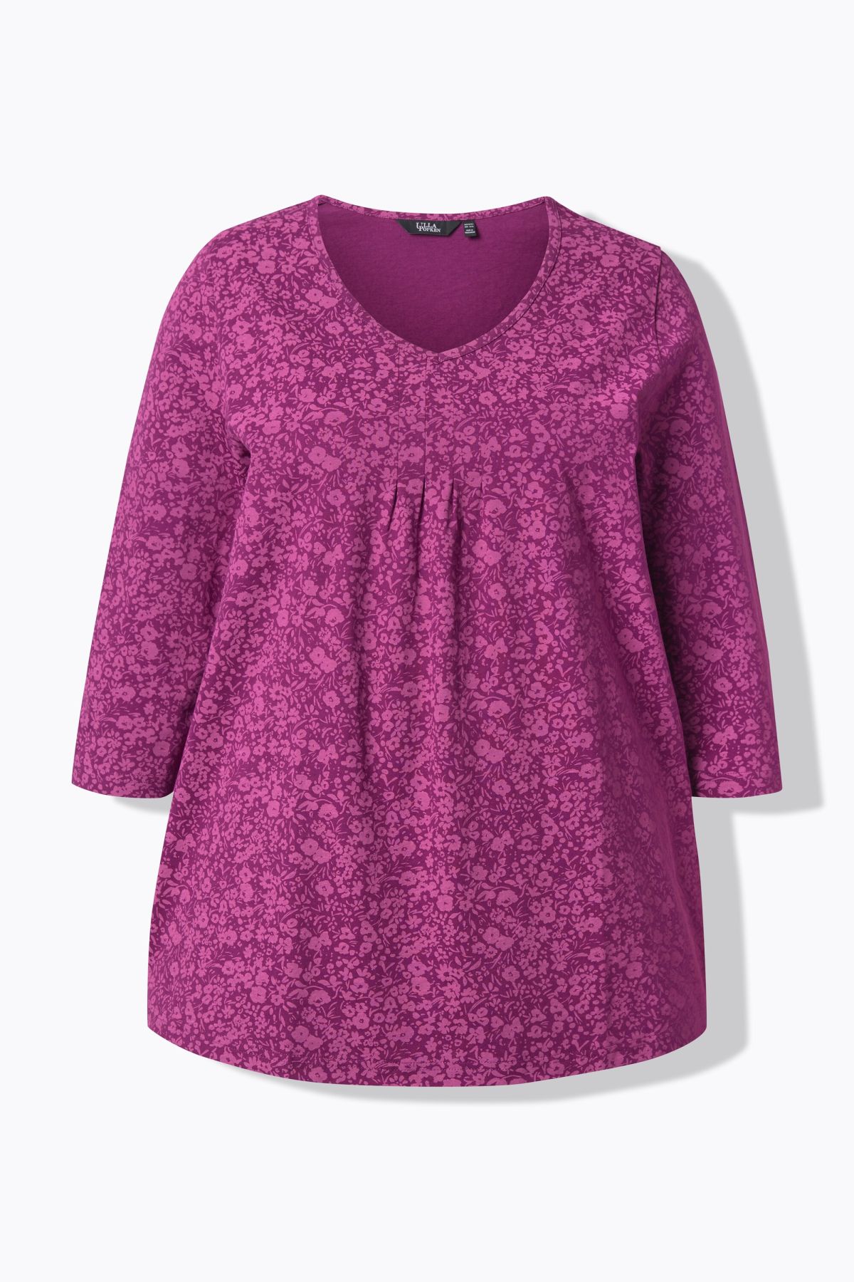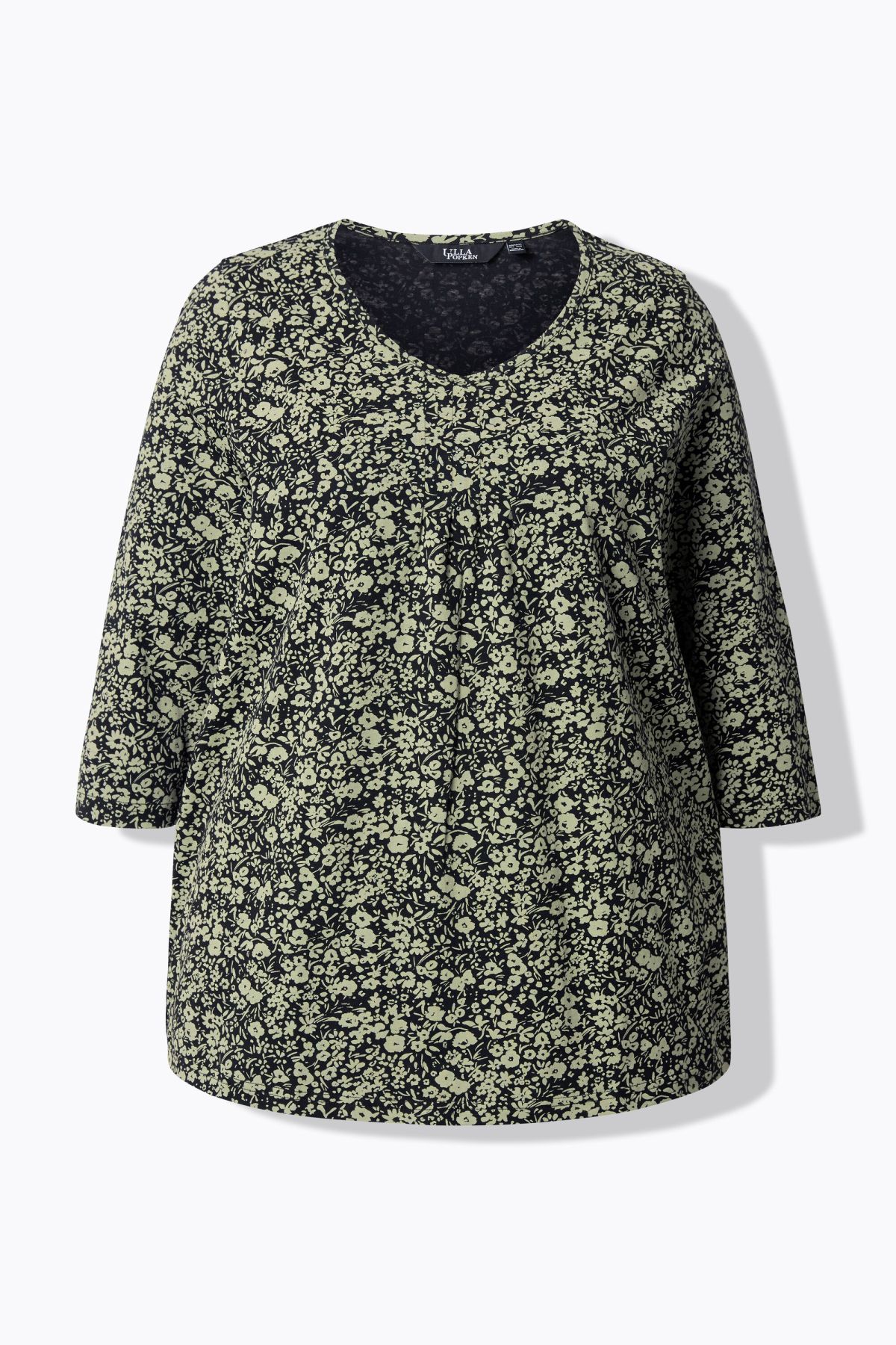 Тениска с плисирани акценти и принт на маргаритки. С V - образно деколте и 3/4 ръкави. От мека, памучна материя.