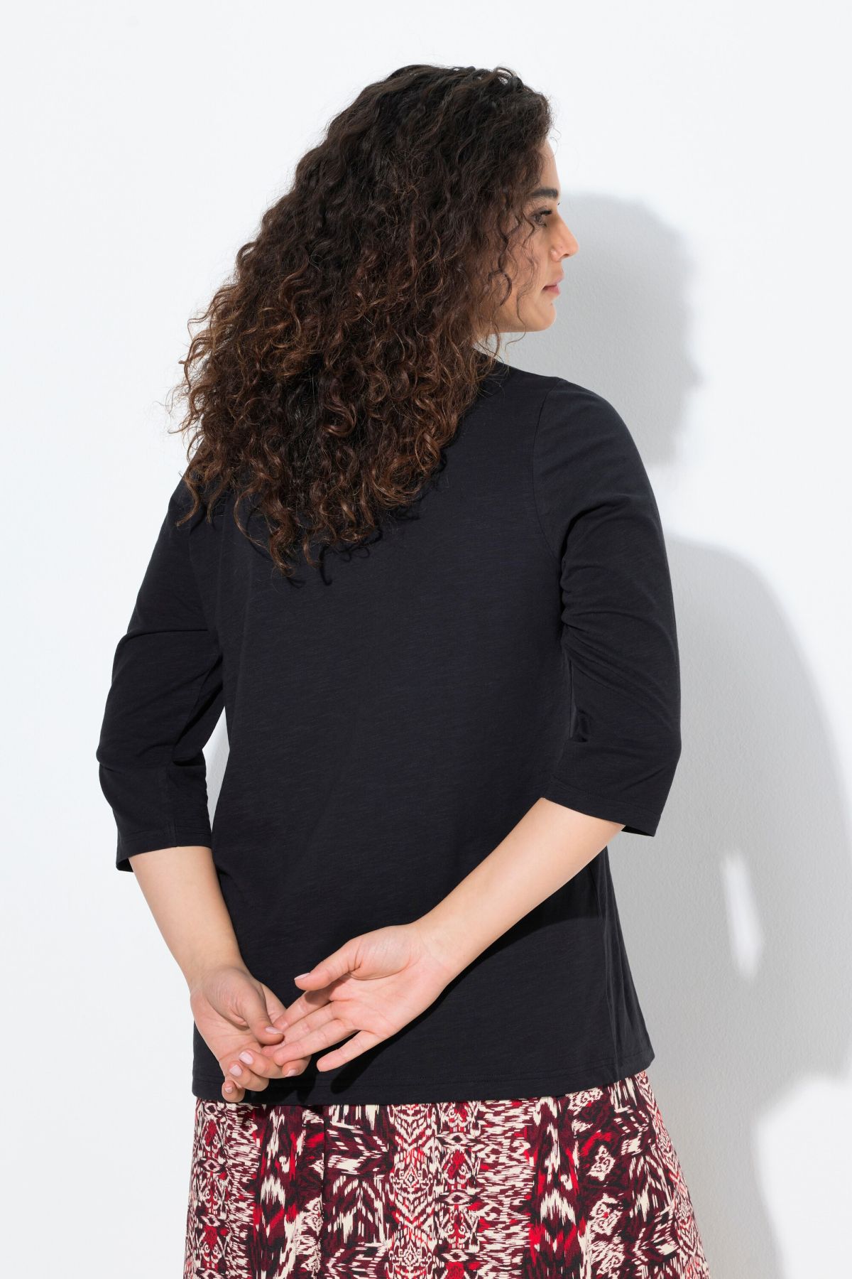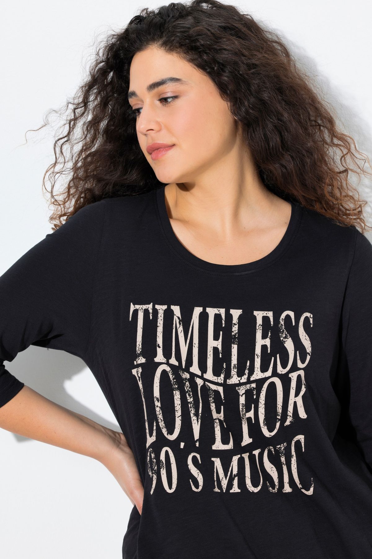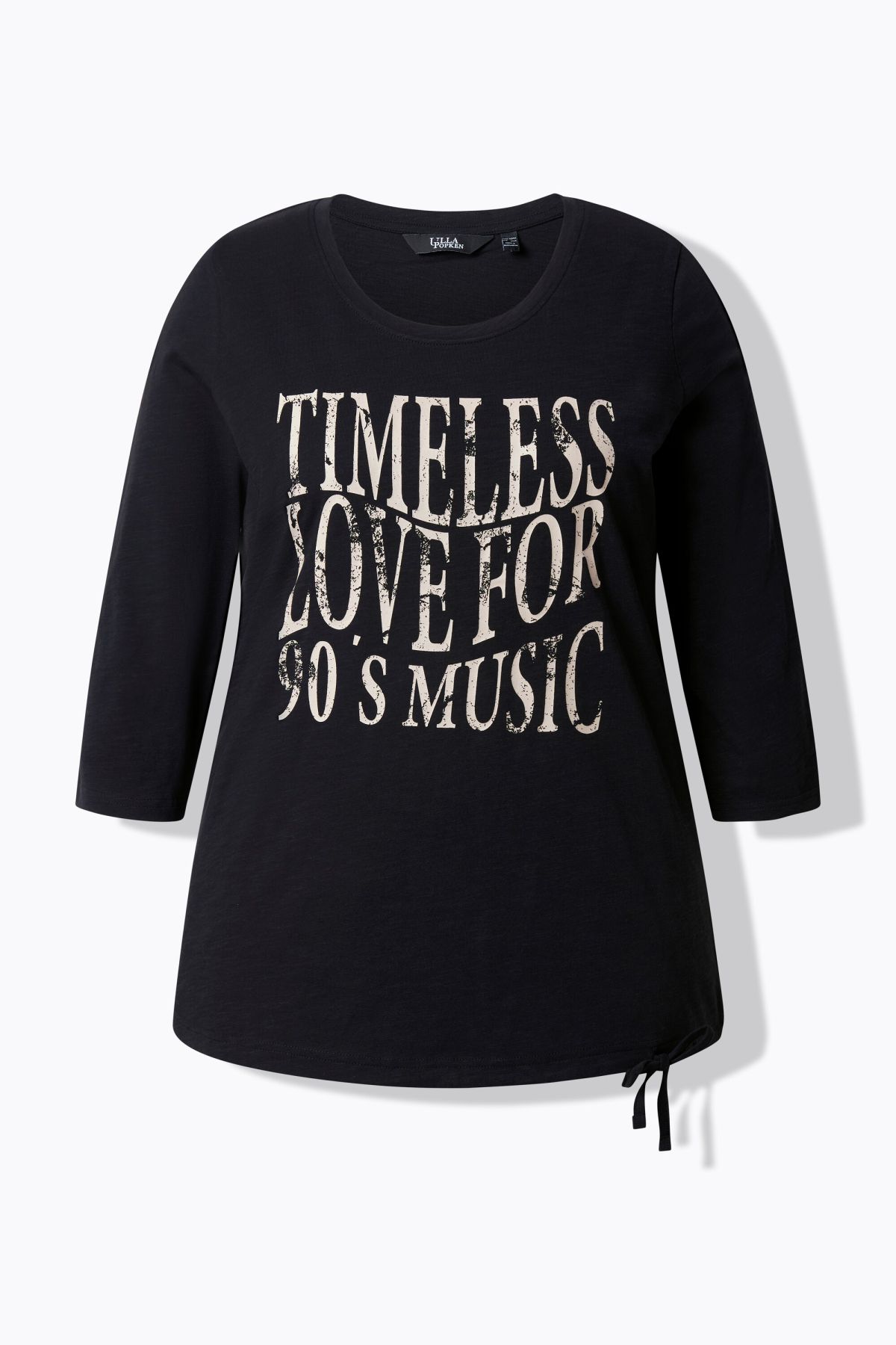 Тениска с графичен принт с надпис отпред. С кръгло деколте и 3/4 ръкави. От мека, памучна материя.