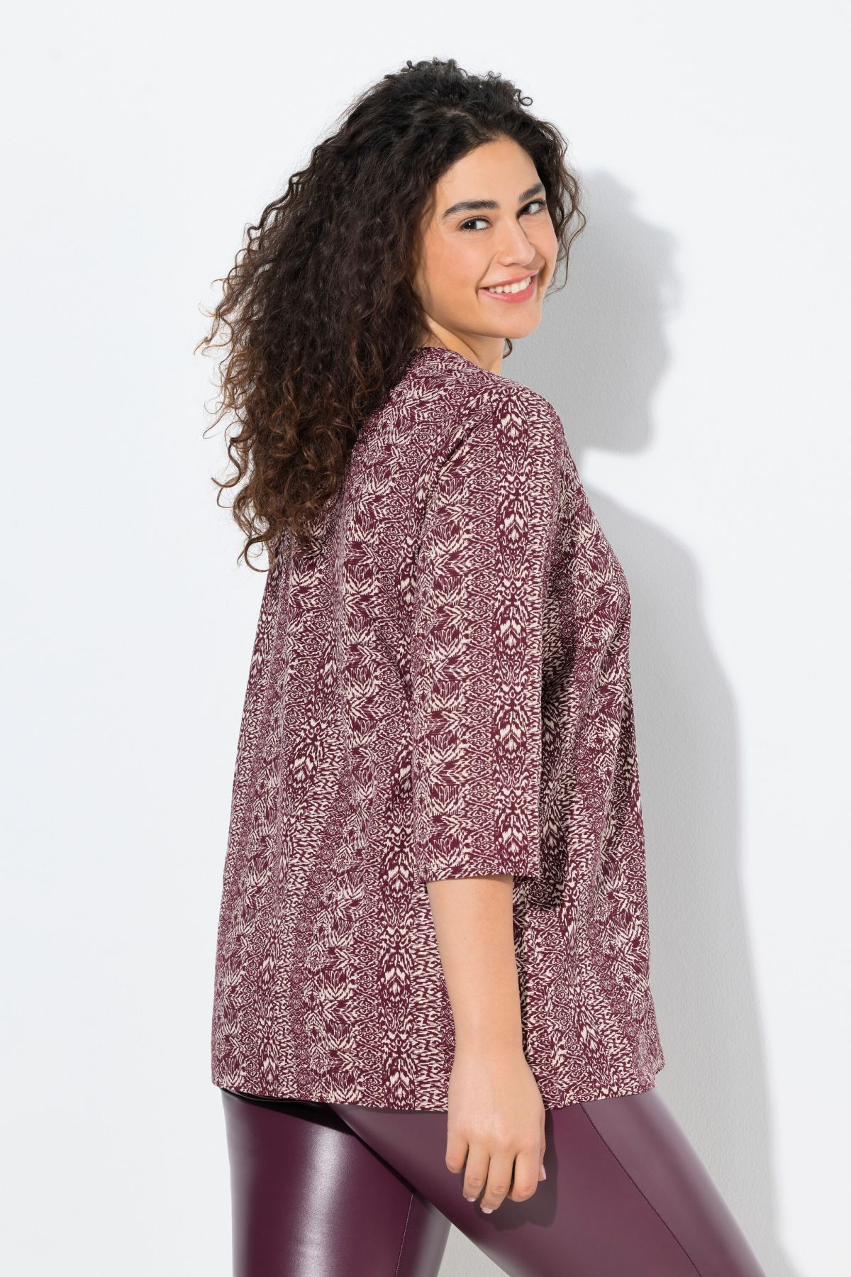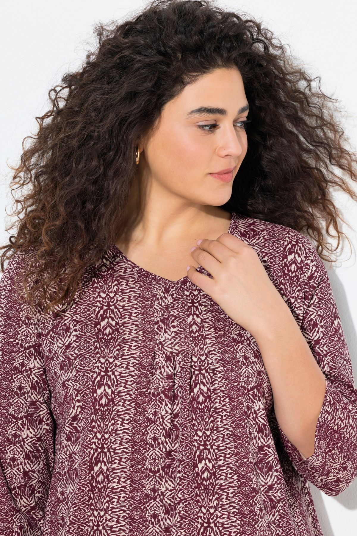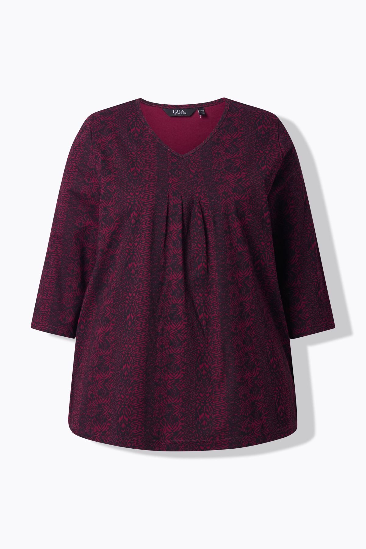 Тениска с микс от раирани принтове. С електрикови акценти. С V - образно деколте и 3/4 ръкави.