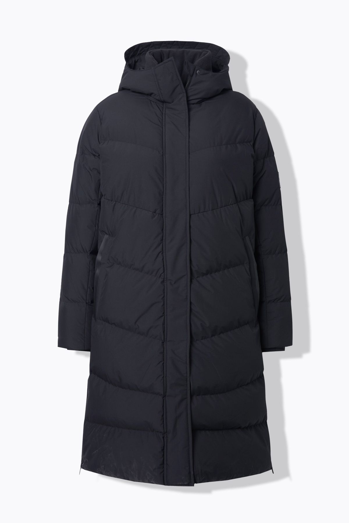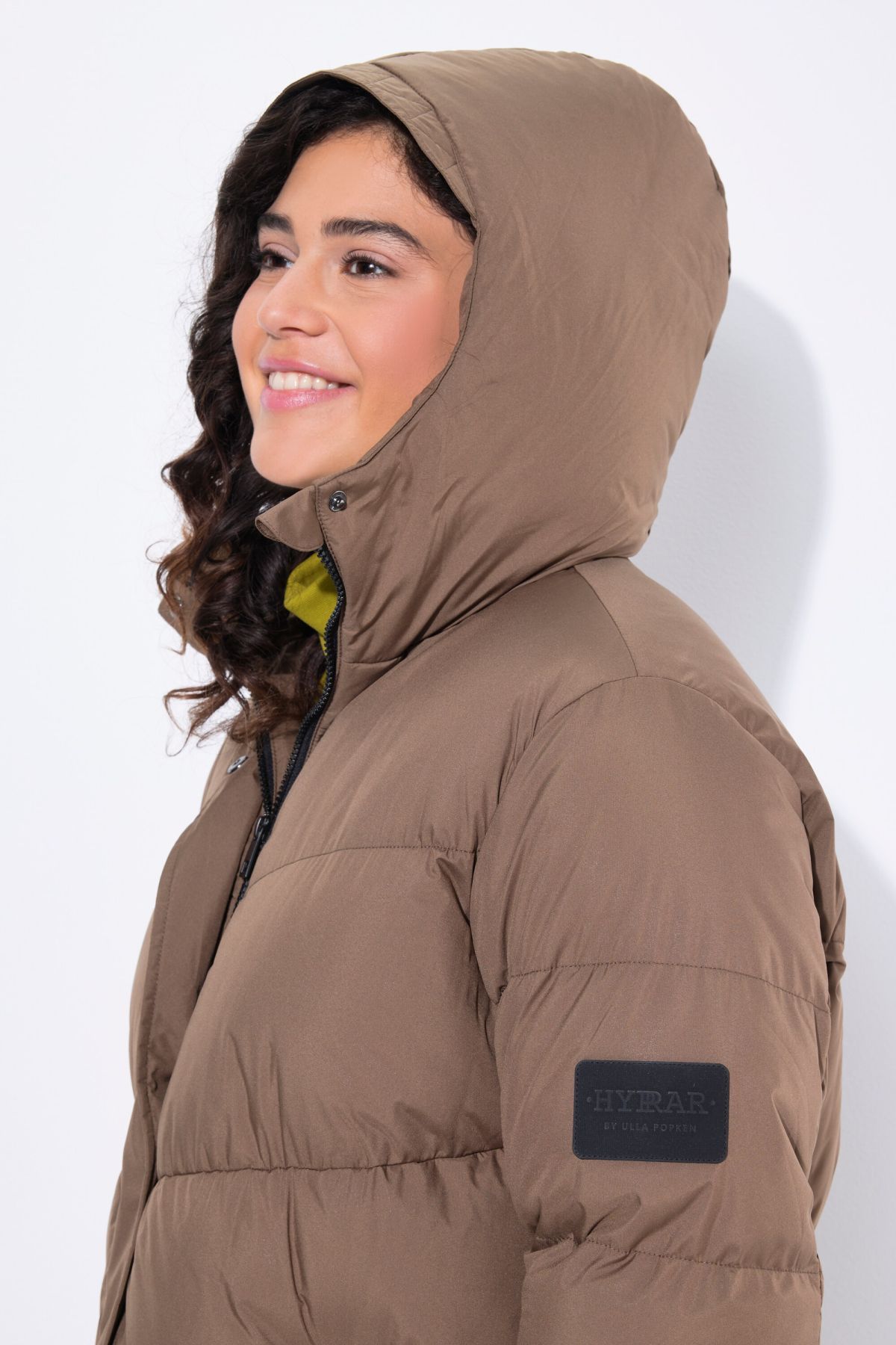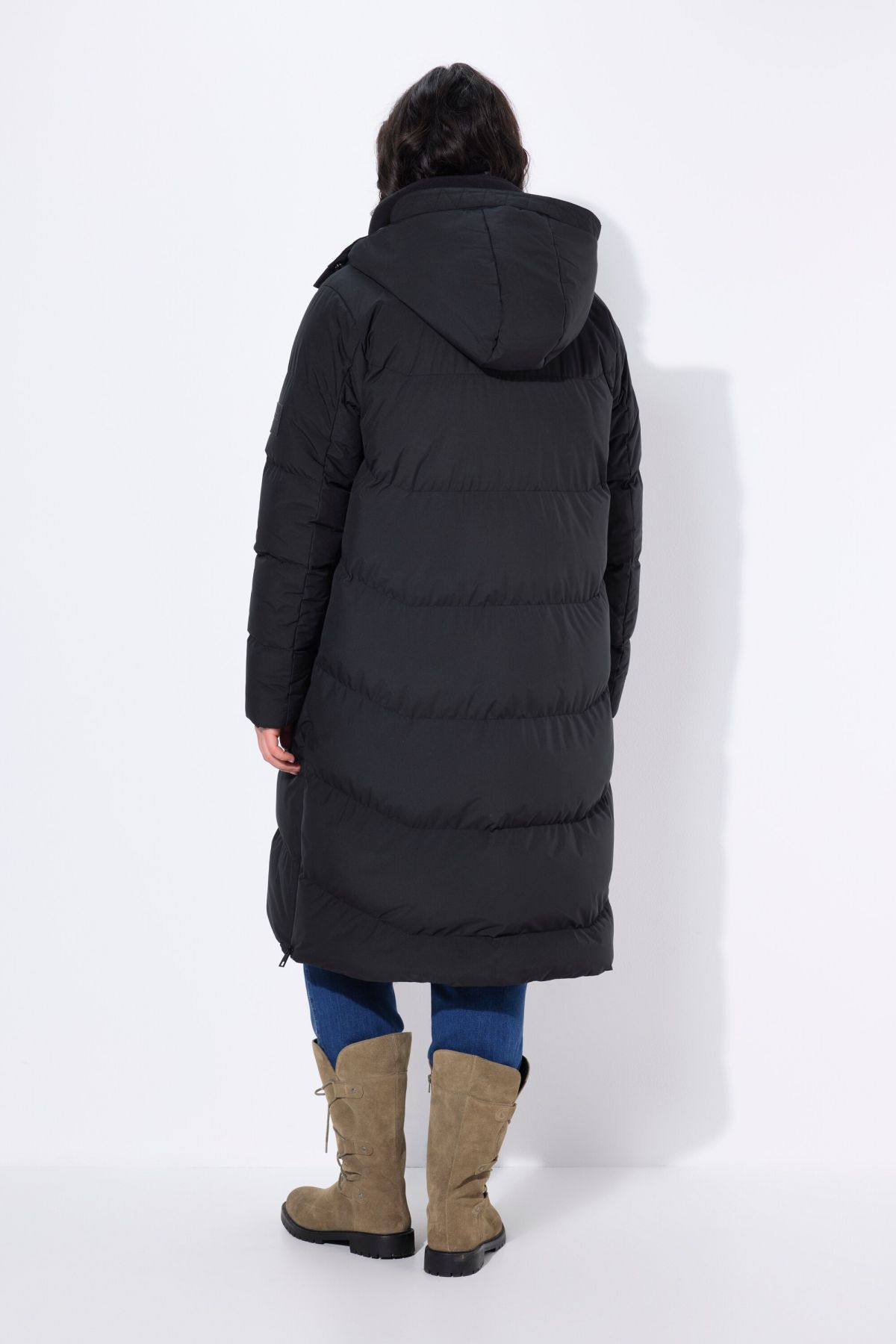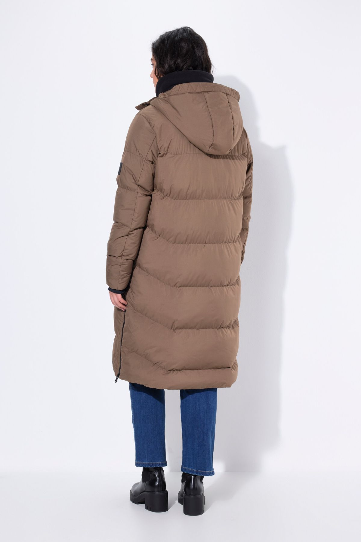 Палто дълго с ватирани шевови акценти. С модерна подплата, водонепромокаема материя и доста топло. С качулка, цип отпред, странични джобове и дълги ръкави.