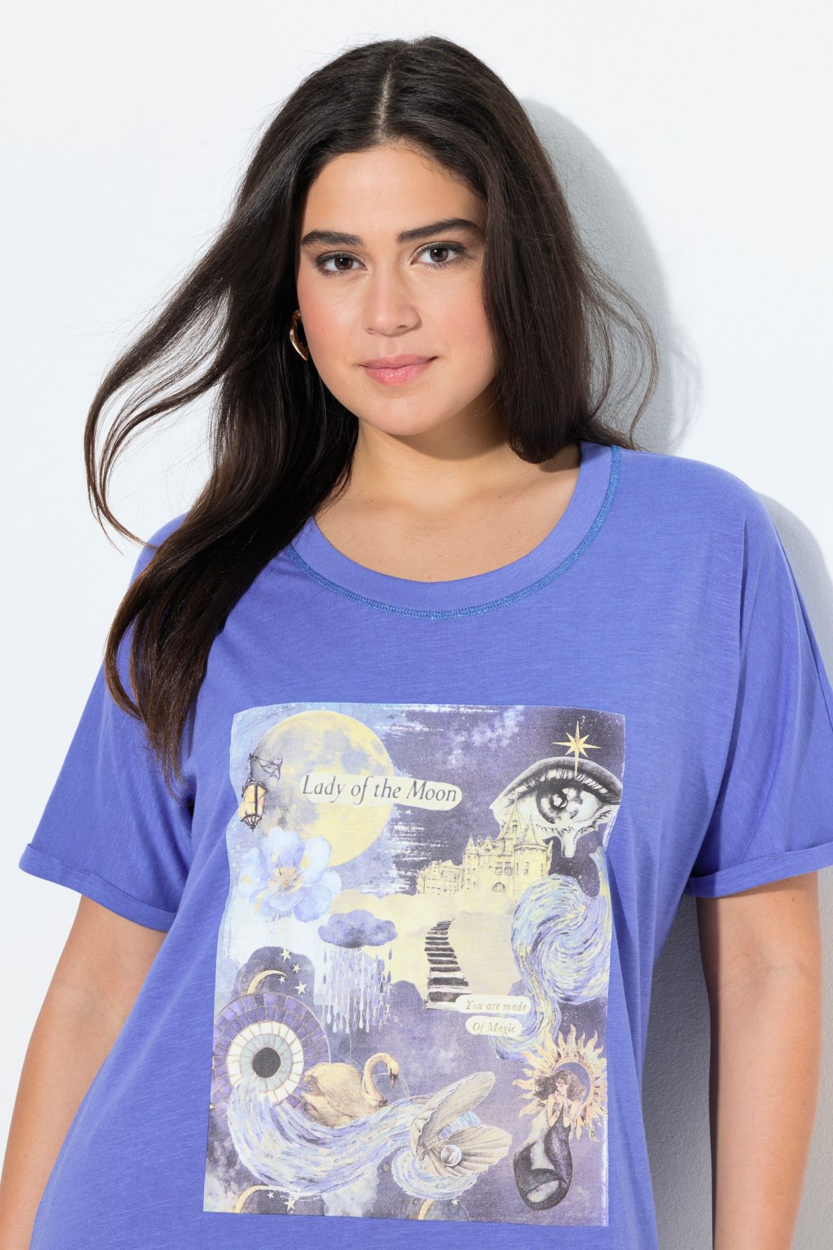 Тениска с графичен принт и къси ръкави. С кръгло деколте. Мека, комфортна и ежедневна.