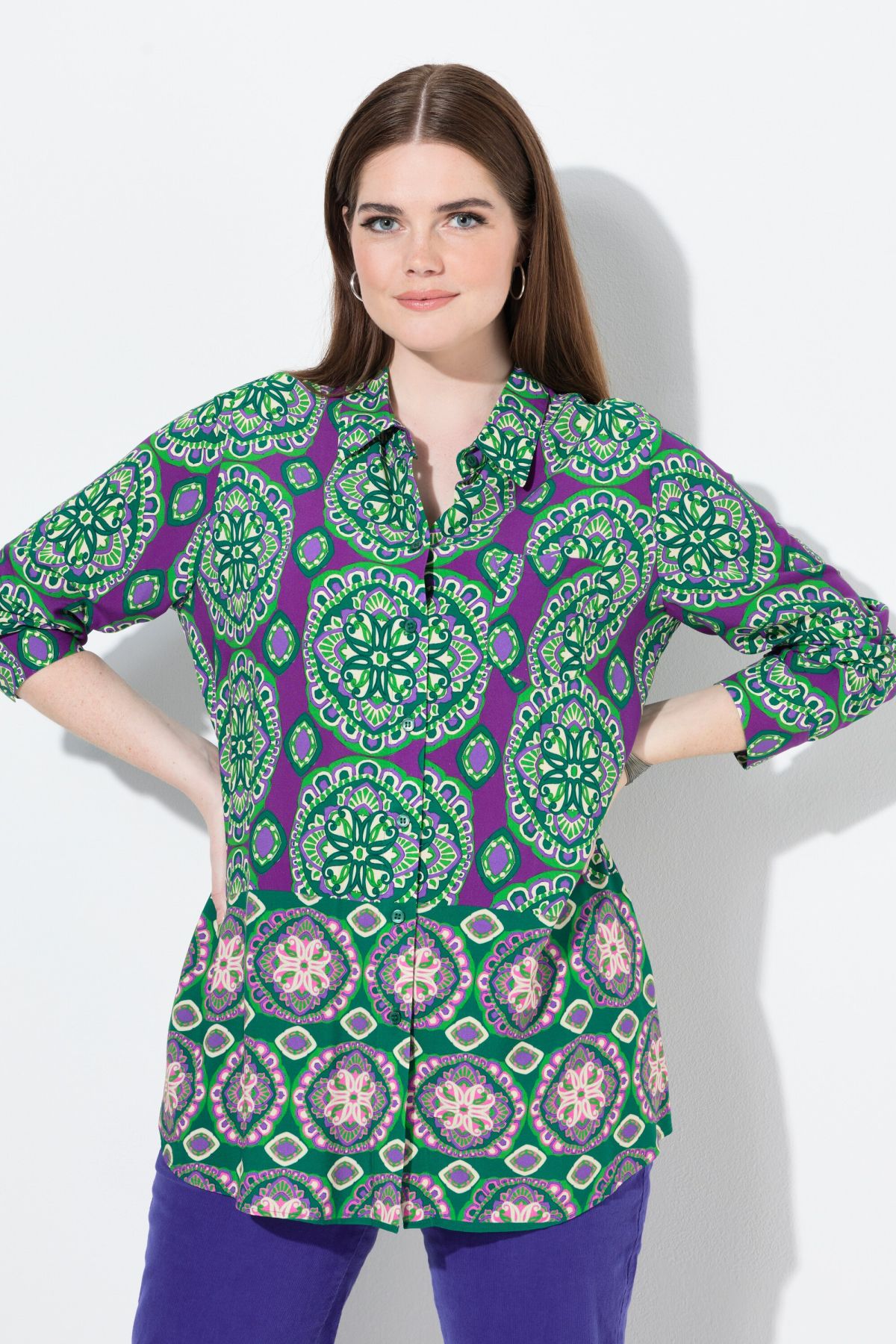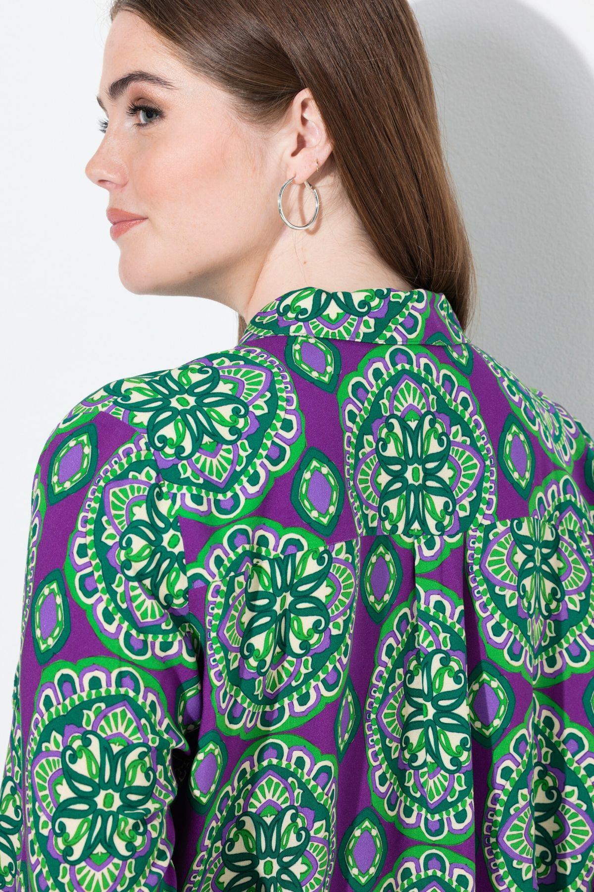 Риза с модерен принт на различни орнаменти. С класическа визия с яка, копчета отпред и дълги ръкави с маншет с копче. От мека, комфортна материя.