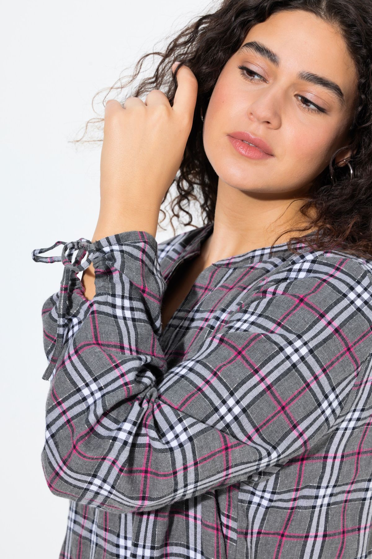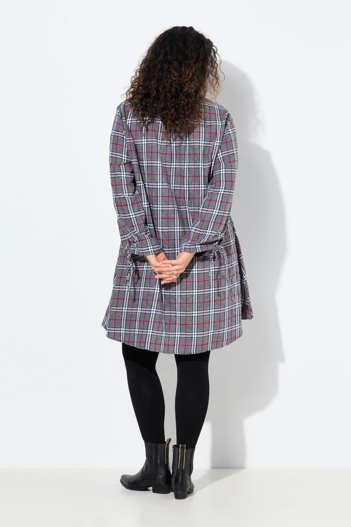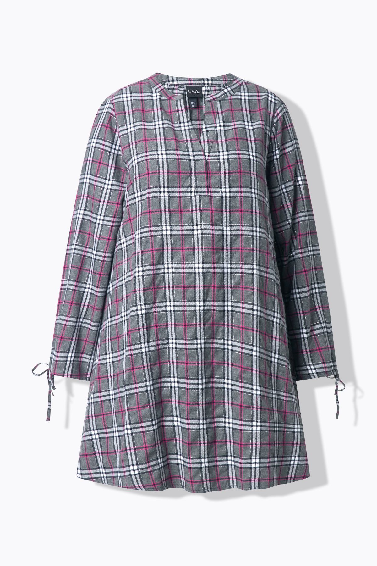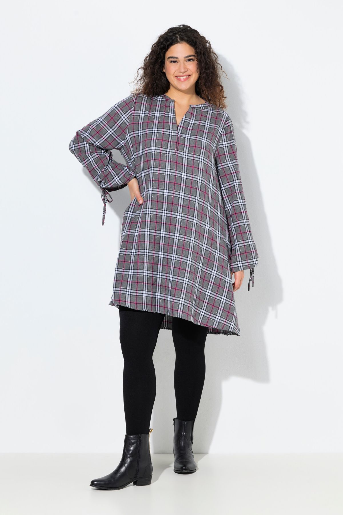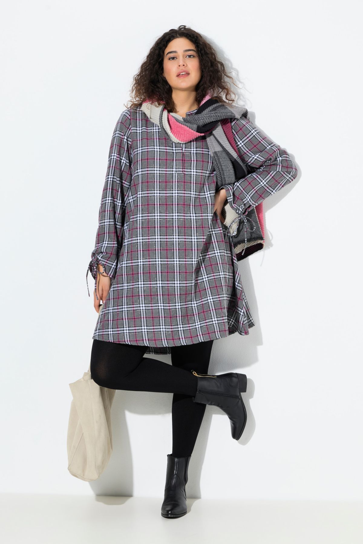 Рокля с кариран принт и бляскави акценти. С кръгло деколте, дълги ръкави и А -линия на силуета. Стилна и комфортна