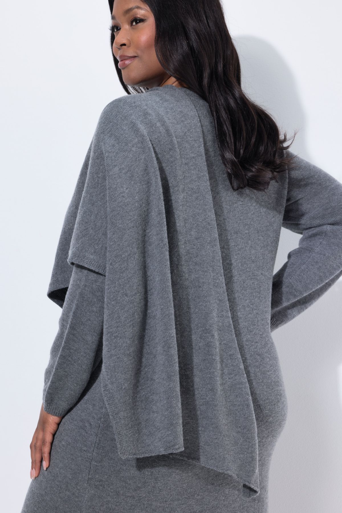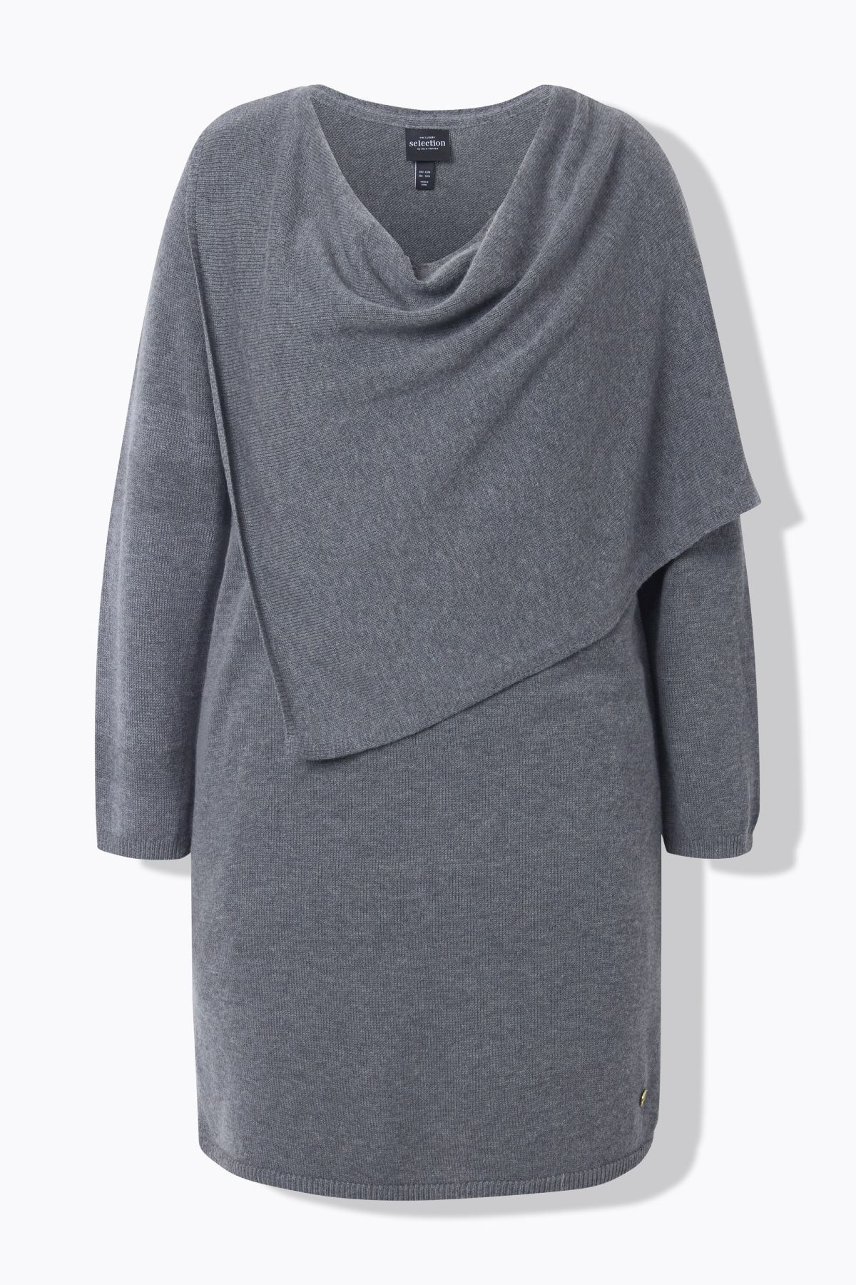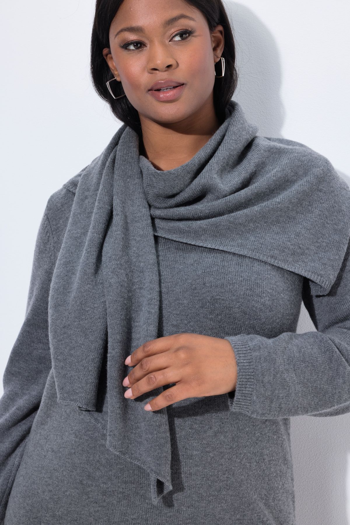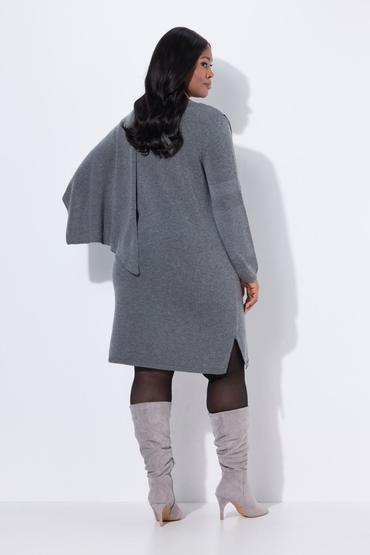 Рокля с добавен шал от мека, плетена материя. От вълна. С дълги ръкави и комфортна кройка. Топла визия за студените, зимни дни.