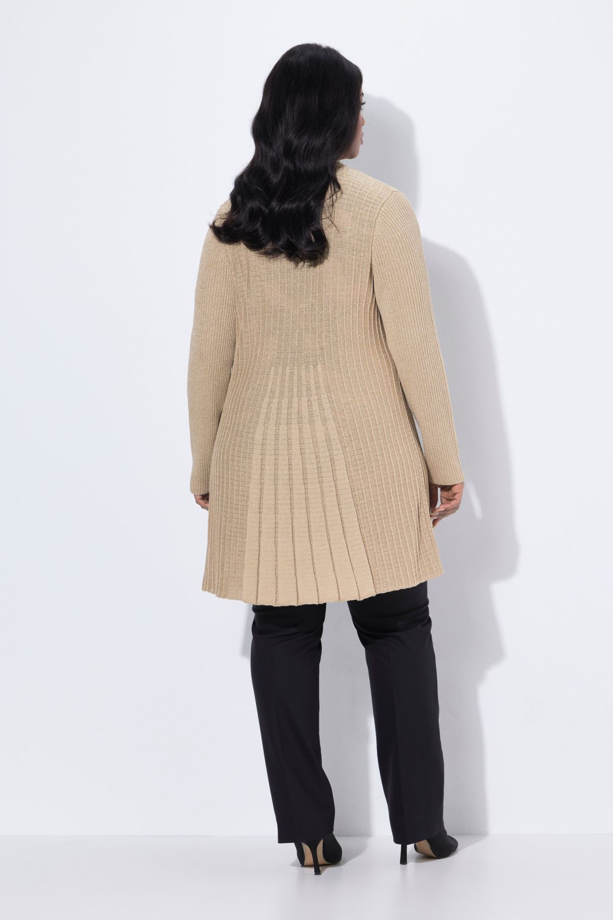 Плетена жилетка с бляскави плисиран дизайн. С шал яка и дълги ръкави. Стилна и елегантна, подходяща за всеки повод.