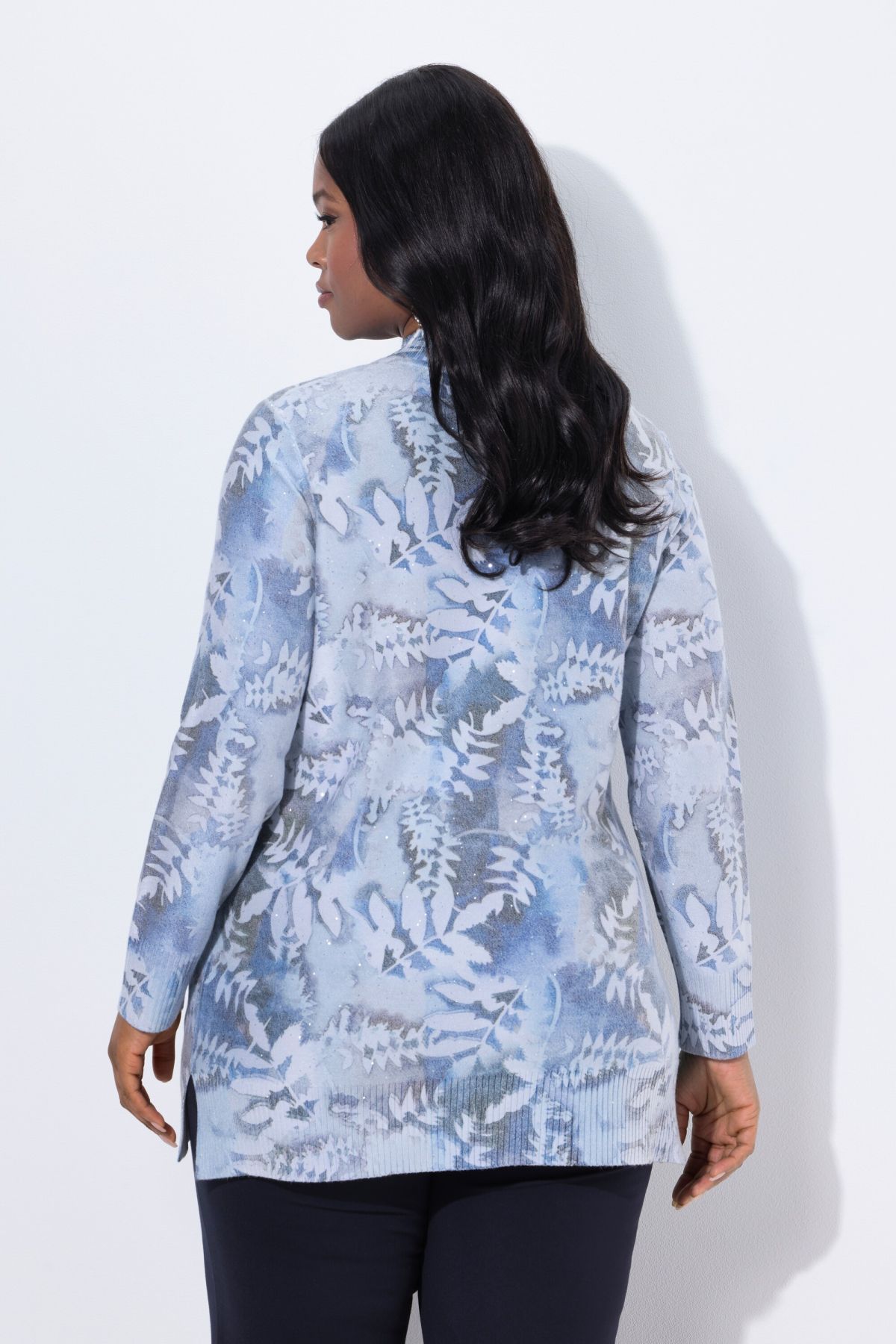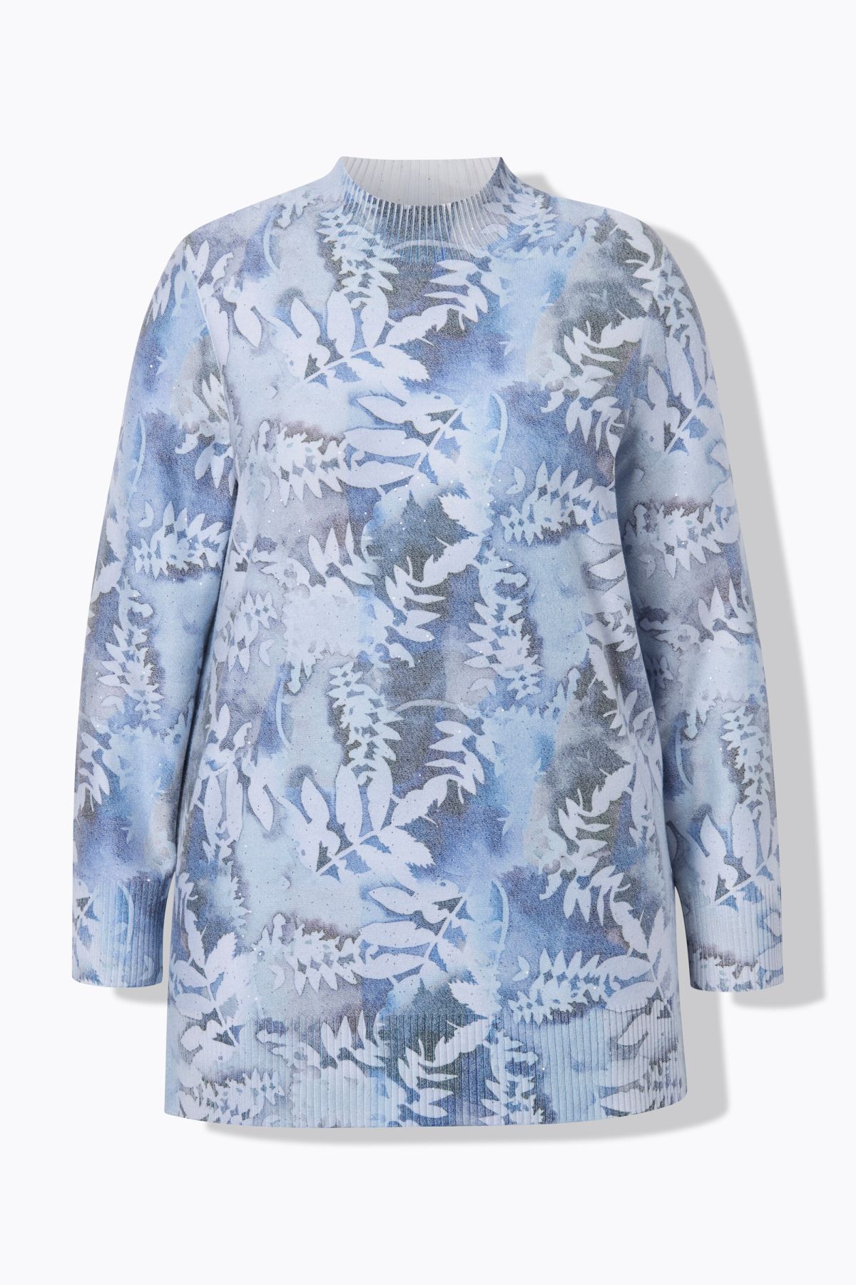 Пуловер от фина плетка с модерен листов принт. С дълги ръкави и странични цепки на подгъва. Подгответе се за прохладните дни