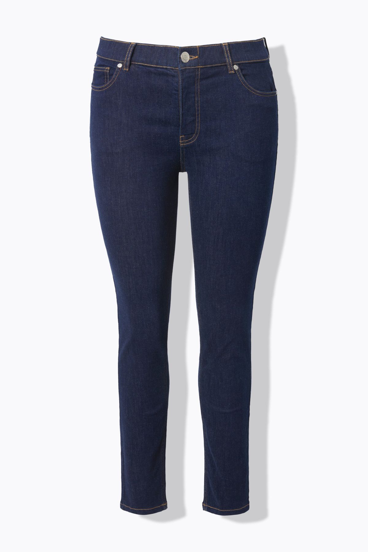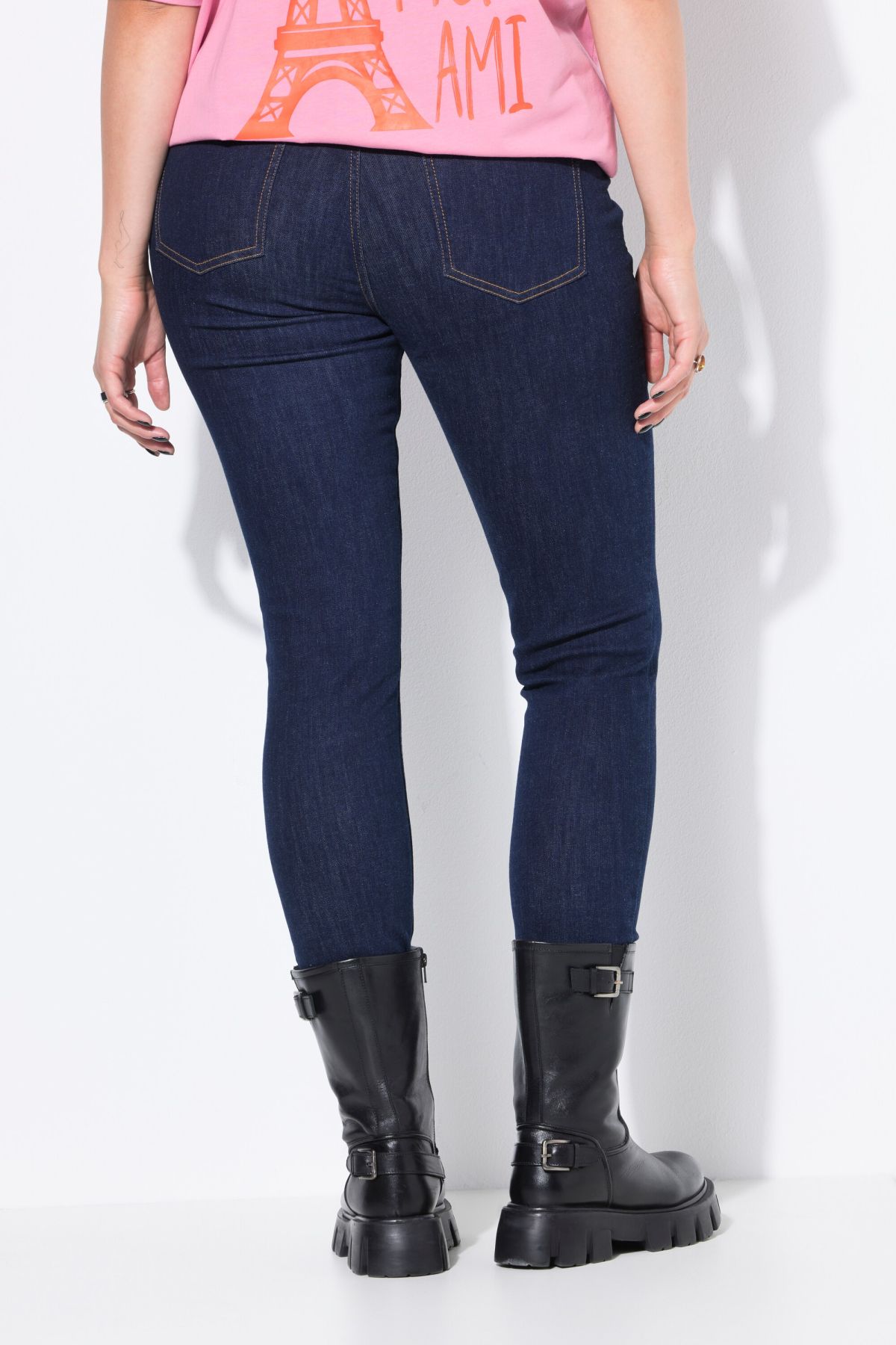 Прилепнала кройка, изплакнат еластичен деним, 5 джоба, удобна талия, гайки за колан, вътрешен шев приблизително 72 см.