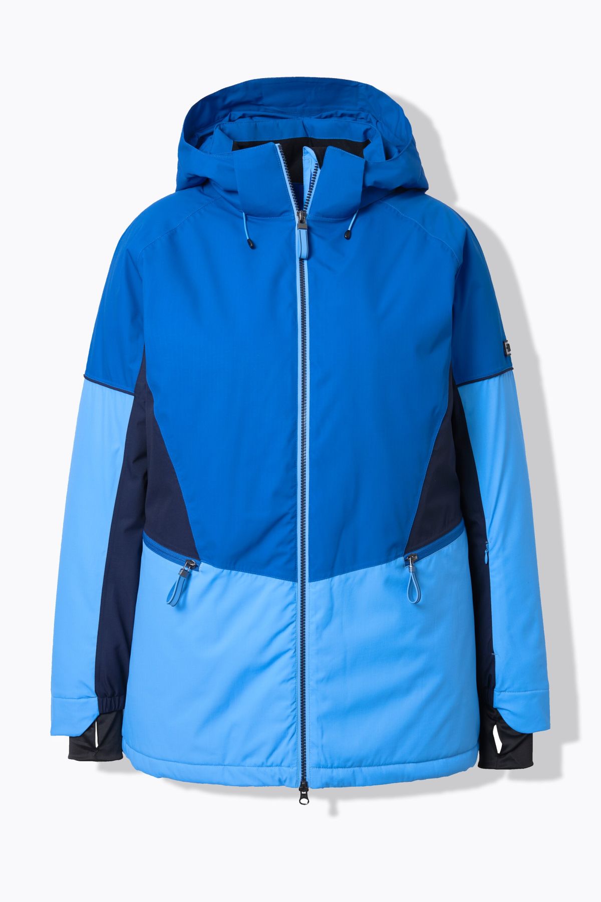 Яке HYPRAR за ски с цветен блоков принт. Останете топли и защитени през дните за спорт през зимата. Водонепромокаемо, ветроустойчиво и дишащо. С дълги ръкави, изправена яка и качулка.