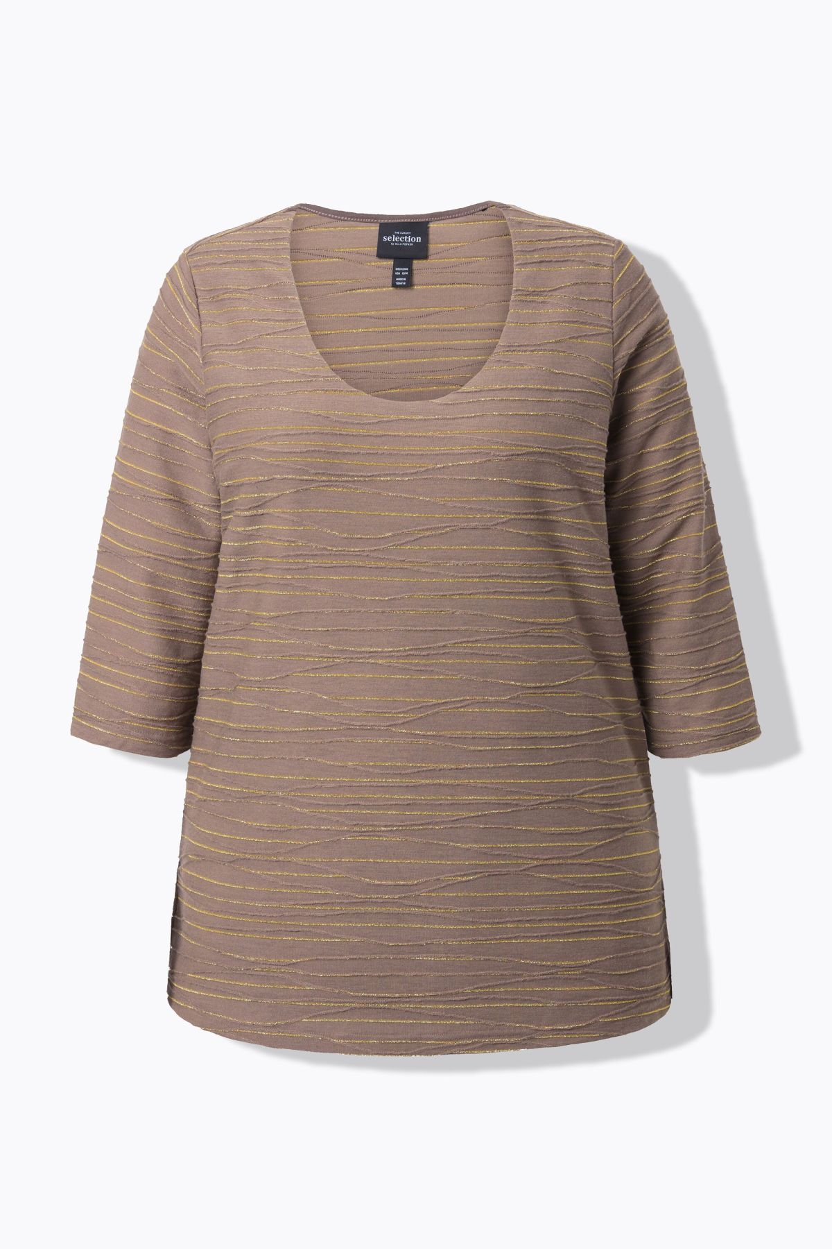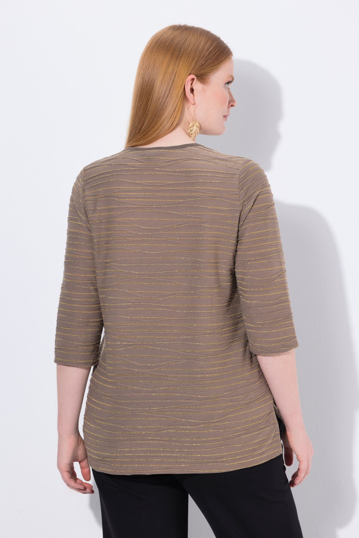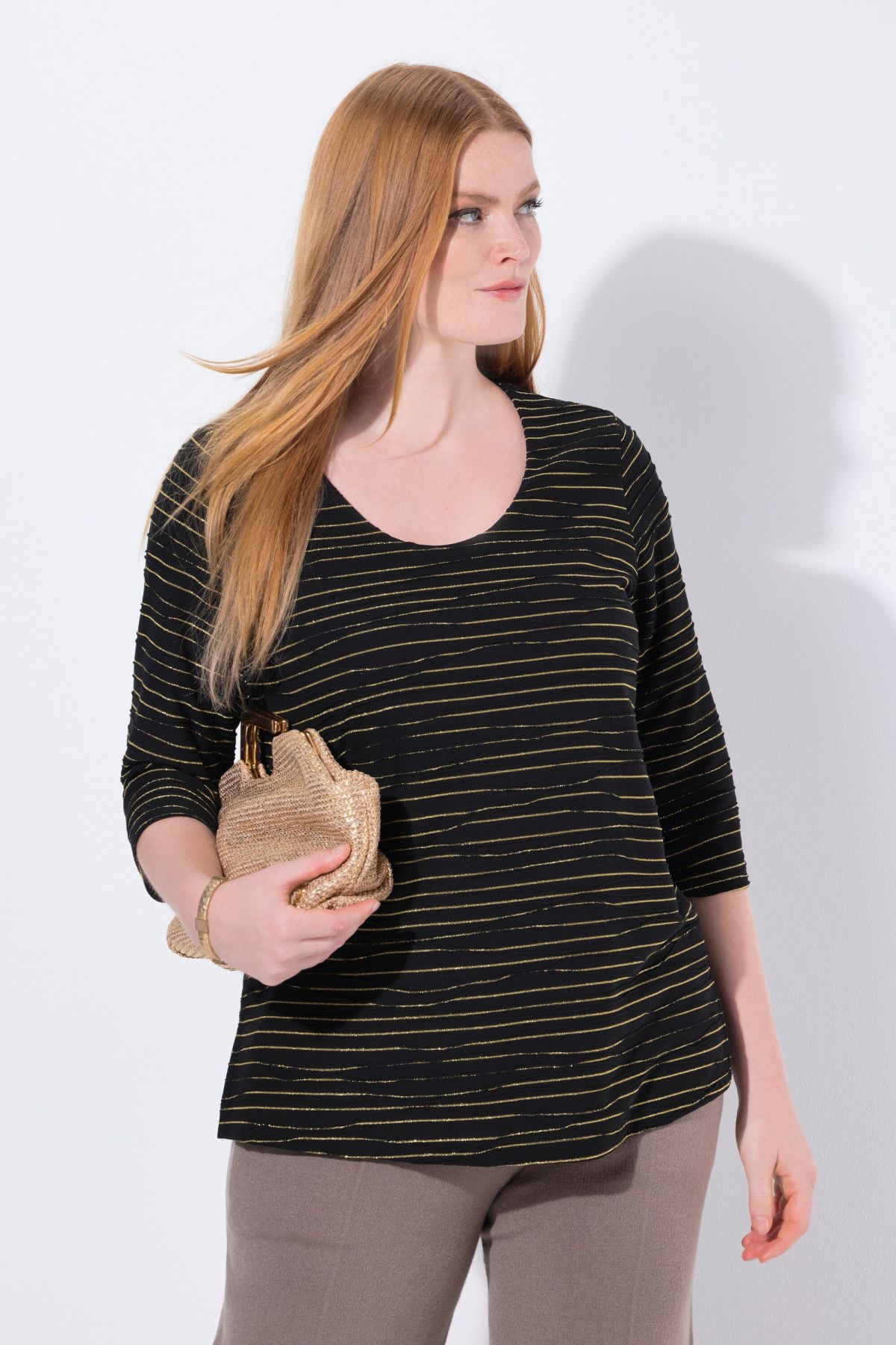 Тениска с бляскави вълни за акцент. С дълбоко кръгло деколте и 3/4 ръкави. Стил и удобство в ежедневието.