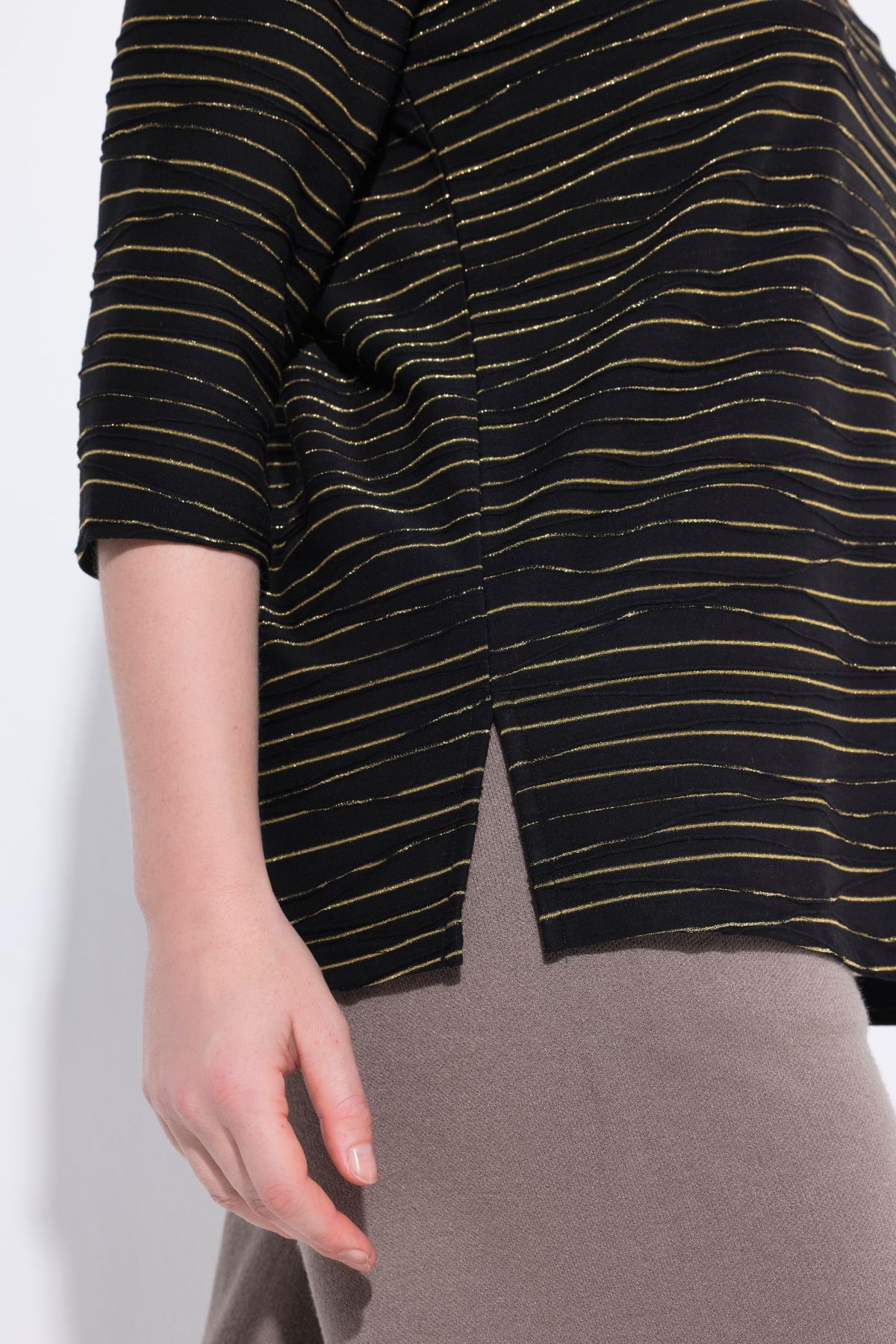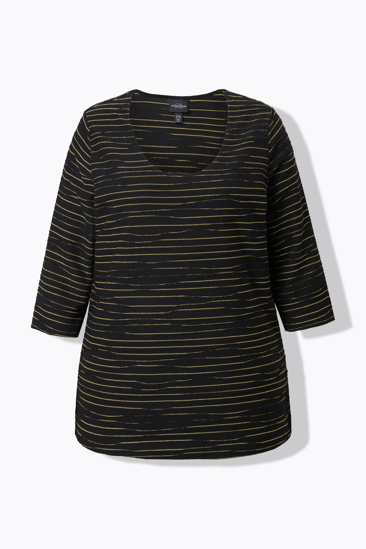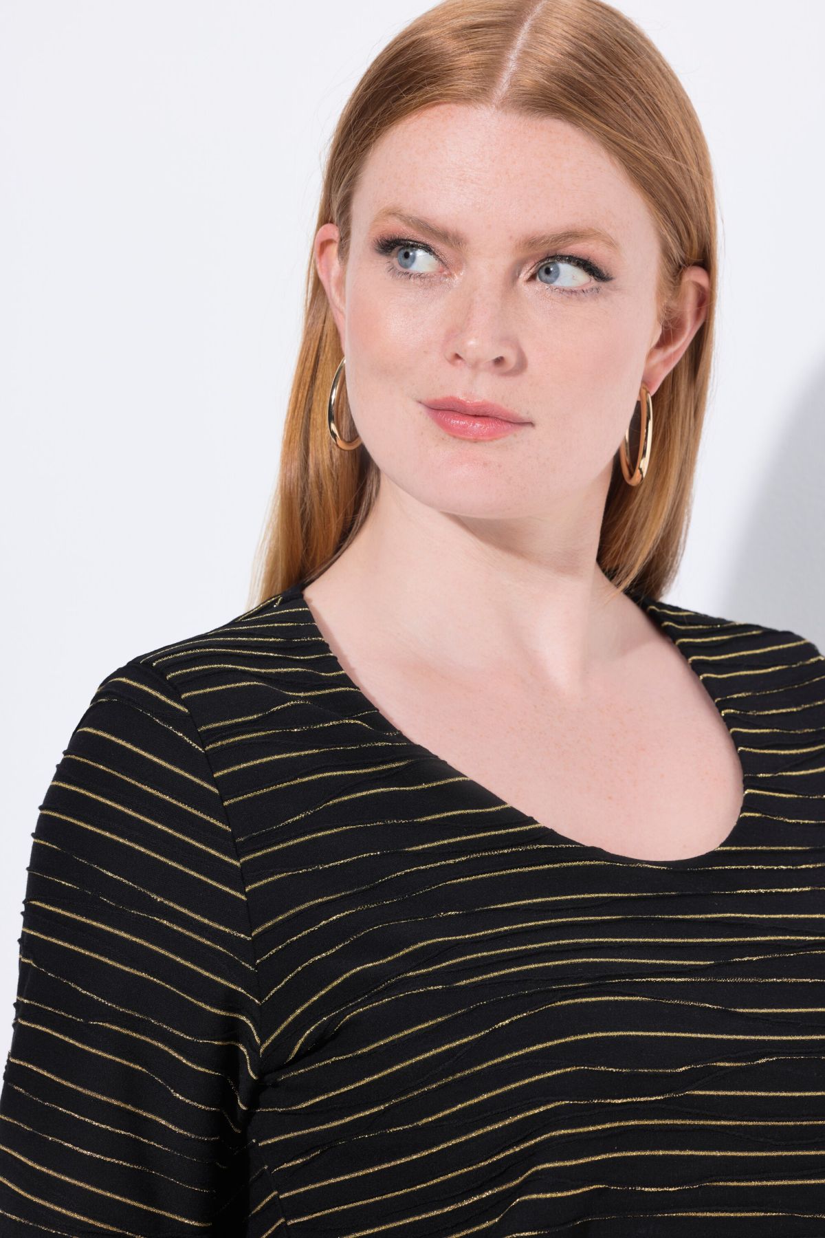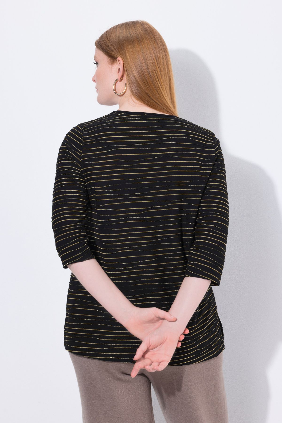 Тениска с бляскави вълни за акцент. С дълбоко кръгло деколте и 3/4 ръкави. Стил и удобство в ежедневието.