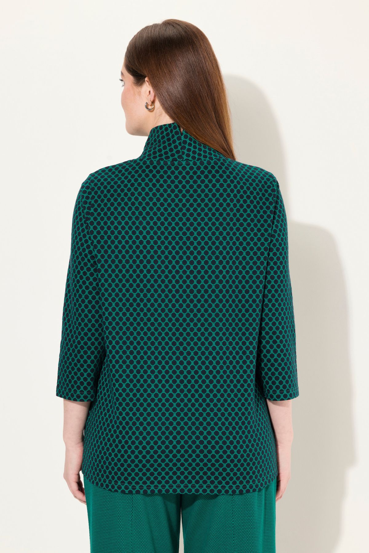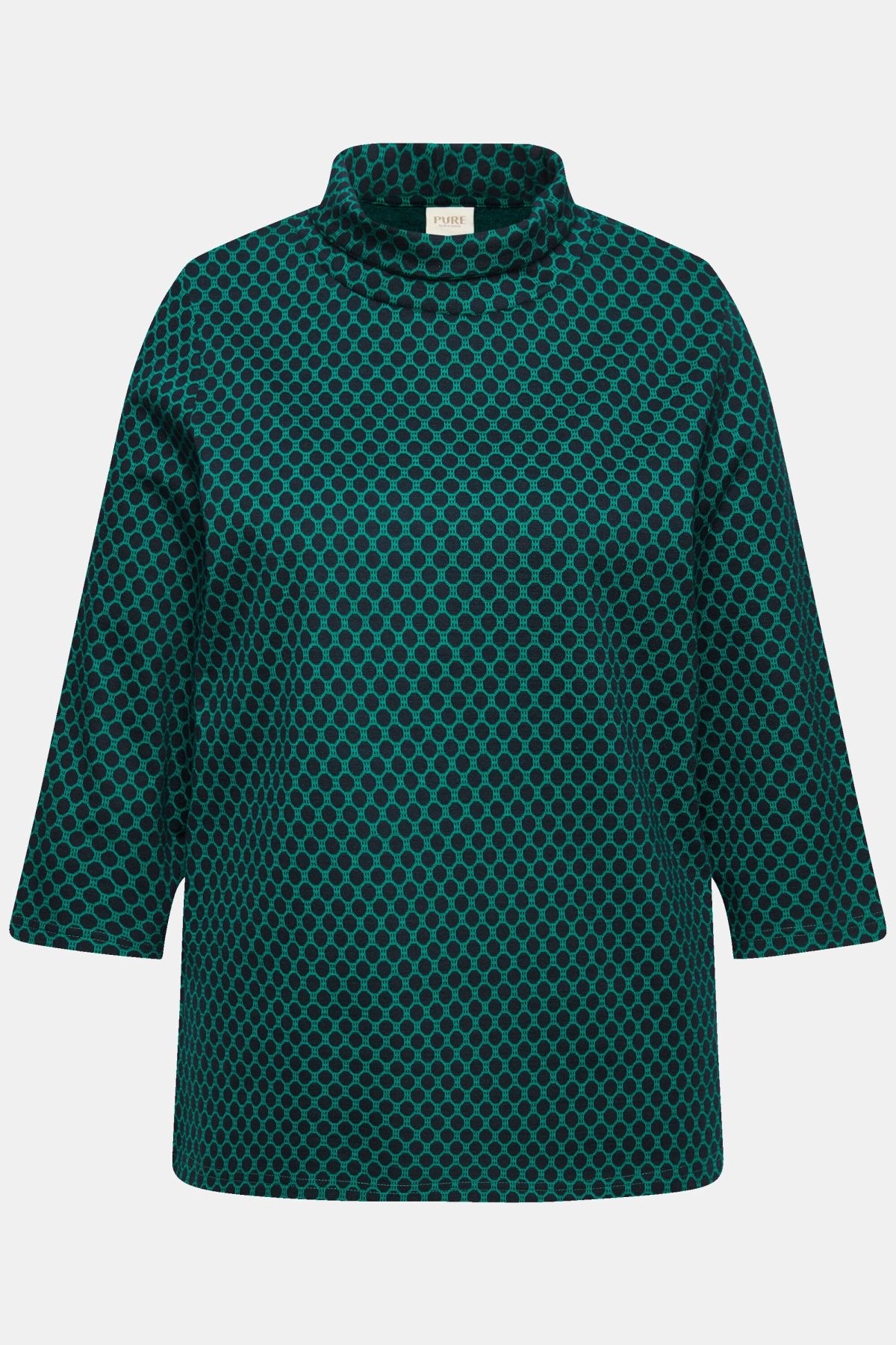 Висококачествен суитшърт с фин жакардов десен, широка стояща яка, странични цепки за повече свобода на движение, широки 3/4 ръкави, устойчив органичен памук, коригирана дължина около 68-76 см.