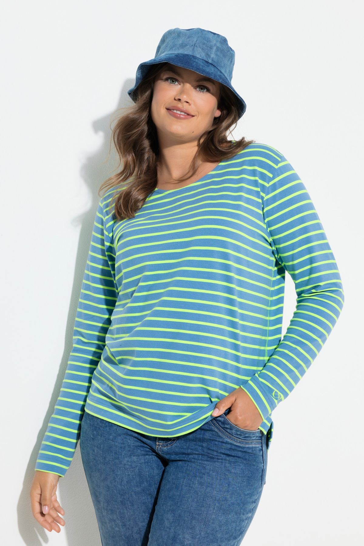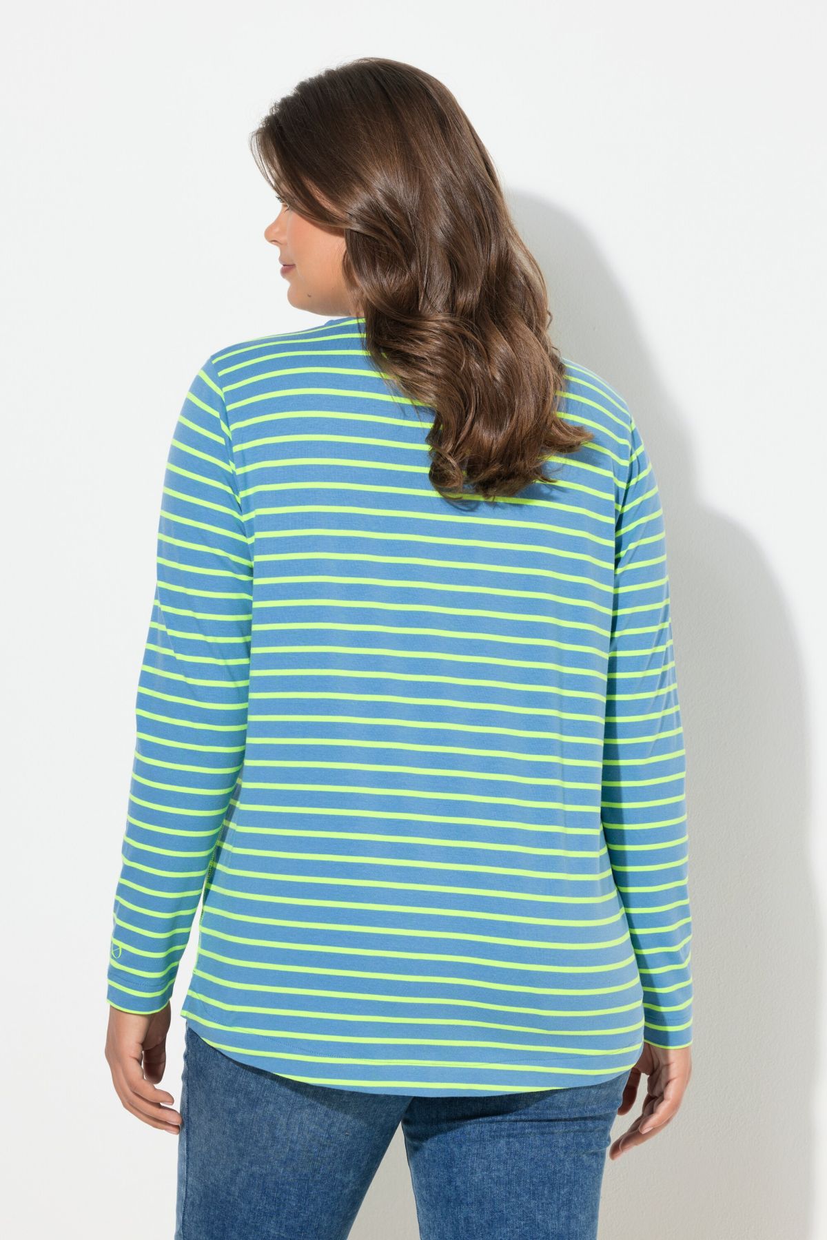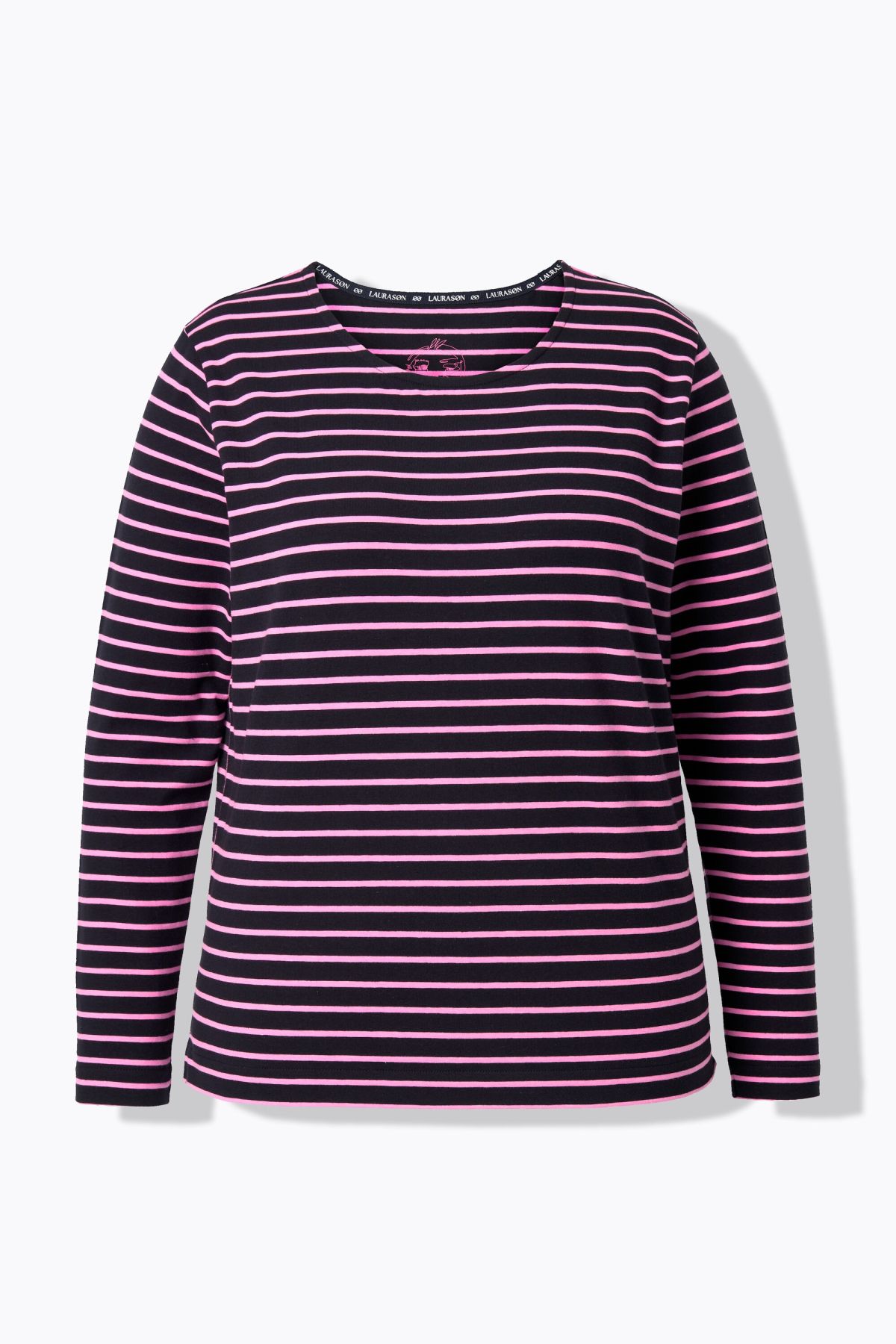 Раирана блуза с кръгло деколте по врата. С комфортни дълги ръкави. От мека, памучна материя. Перфектна за носене в свободното време и в ежедневието.