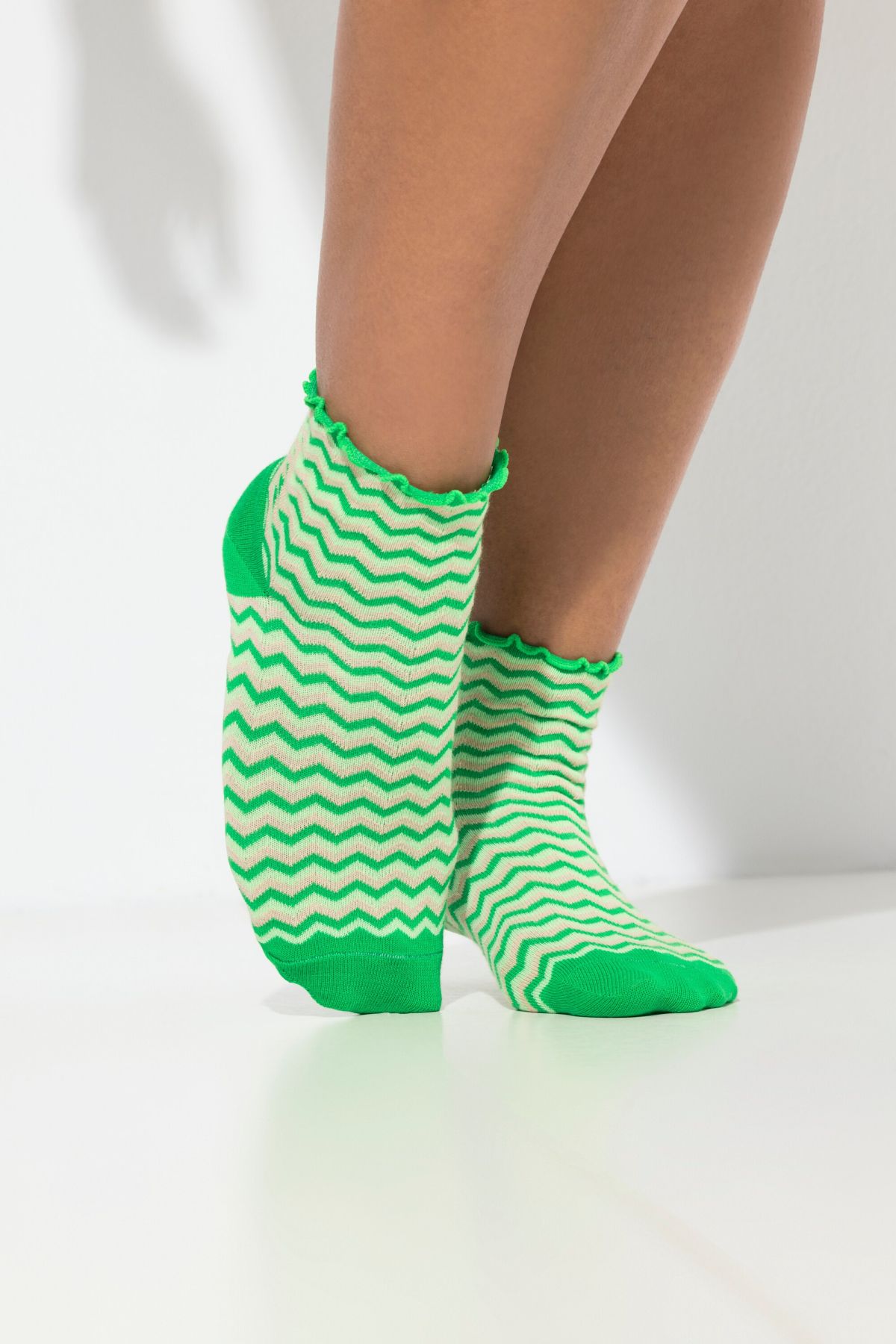 Комплект от 2 чифта чорапи с раиран принт и едноцветни. С къдрав акцент на ластика. Подсилени пети и пръсти. От мека, памучна материя.