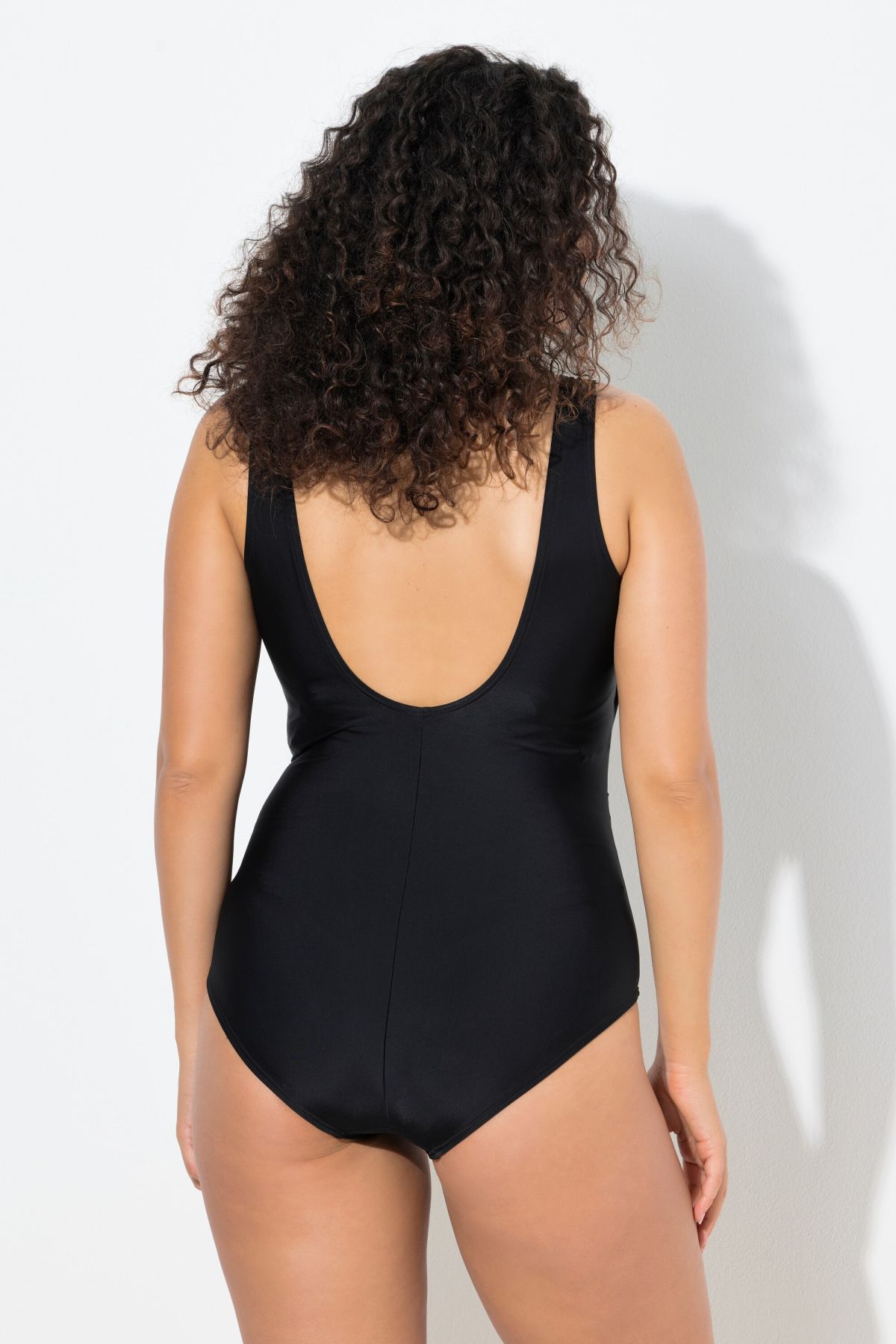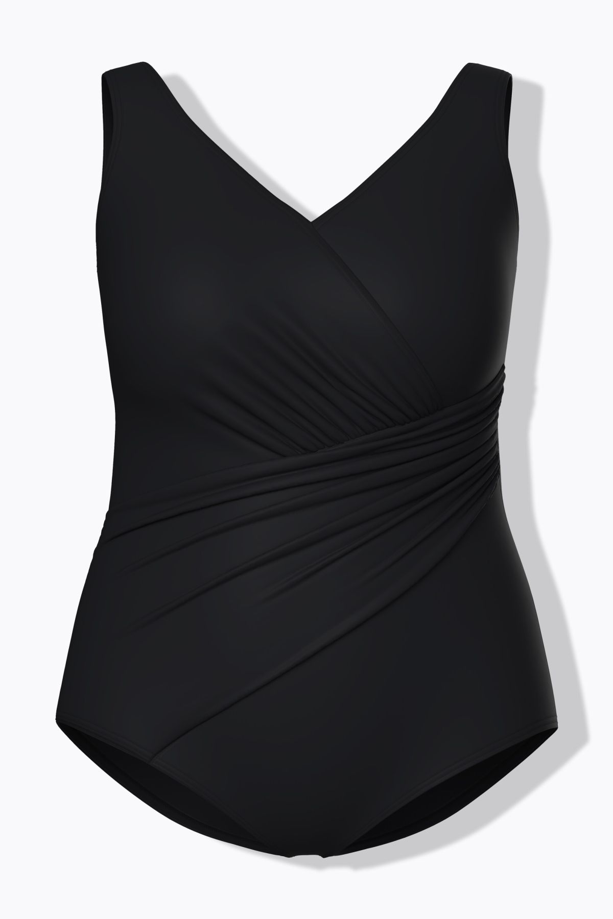 Бански с драперия с елегантна визия и комфортна кройка. С V - образно деколте, широки, удобни презрамки, оформени чашки и подплата отпред.