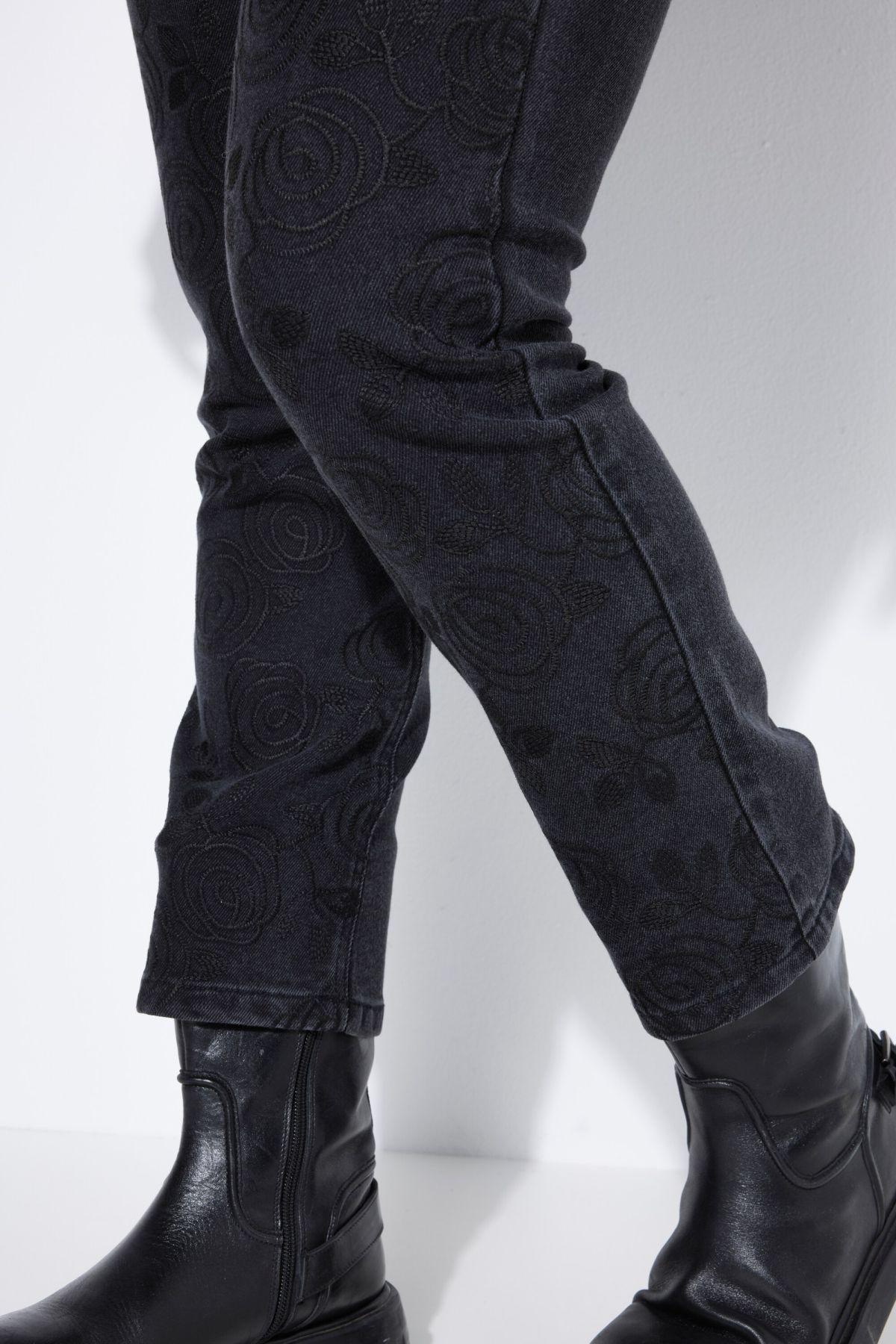 Дънки тип Mom с цветна бродерия