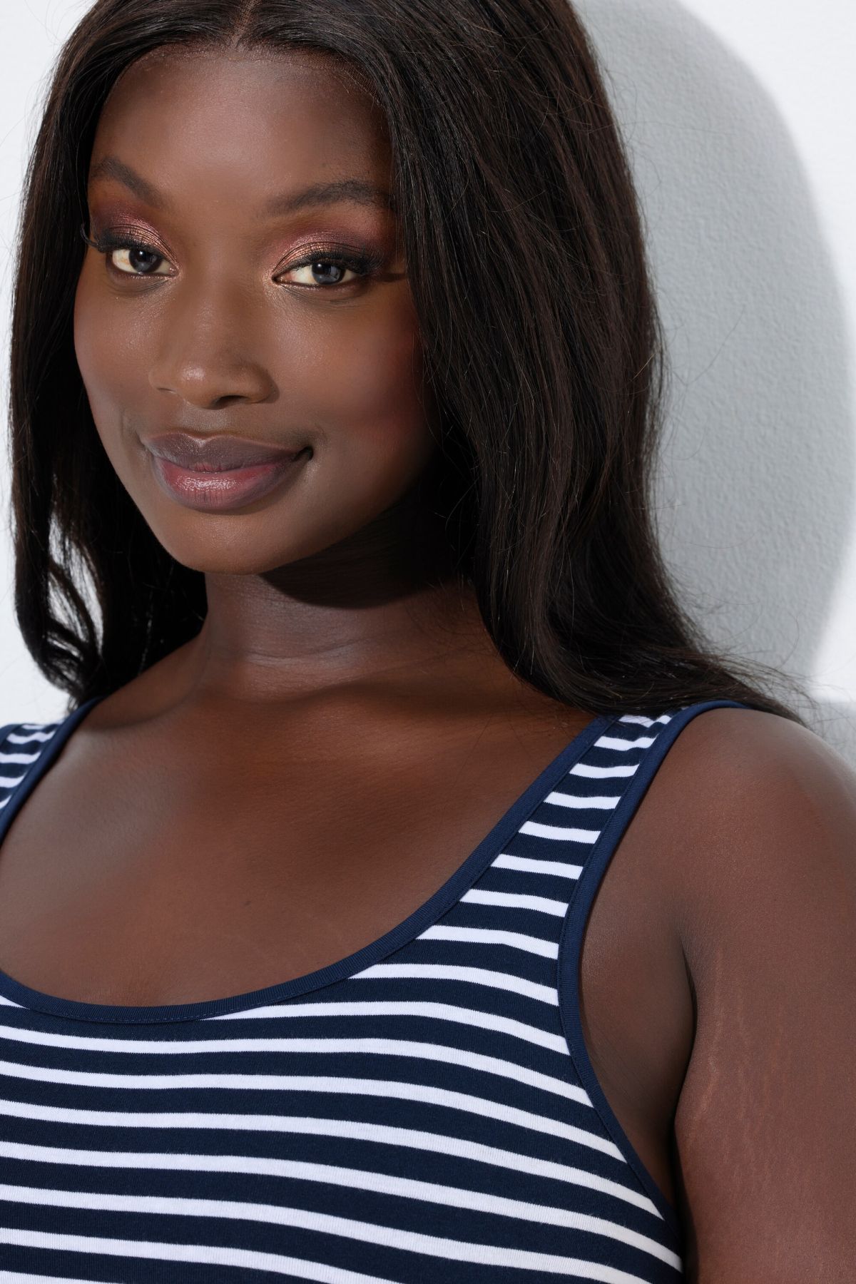 Комплект от 2 броя потници - единия с раиран принт, а другия едноцветен. С кръгло деколте, комфортни широки презрамки. От мека, памучна материя.