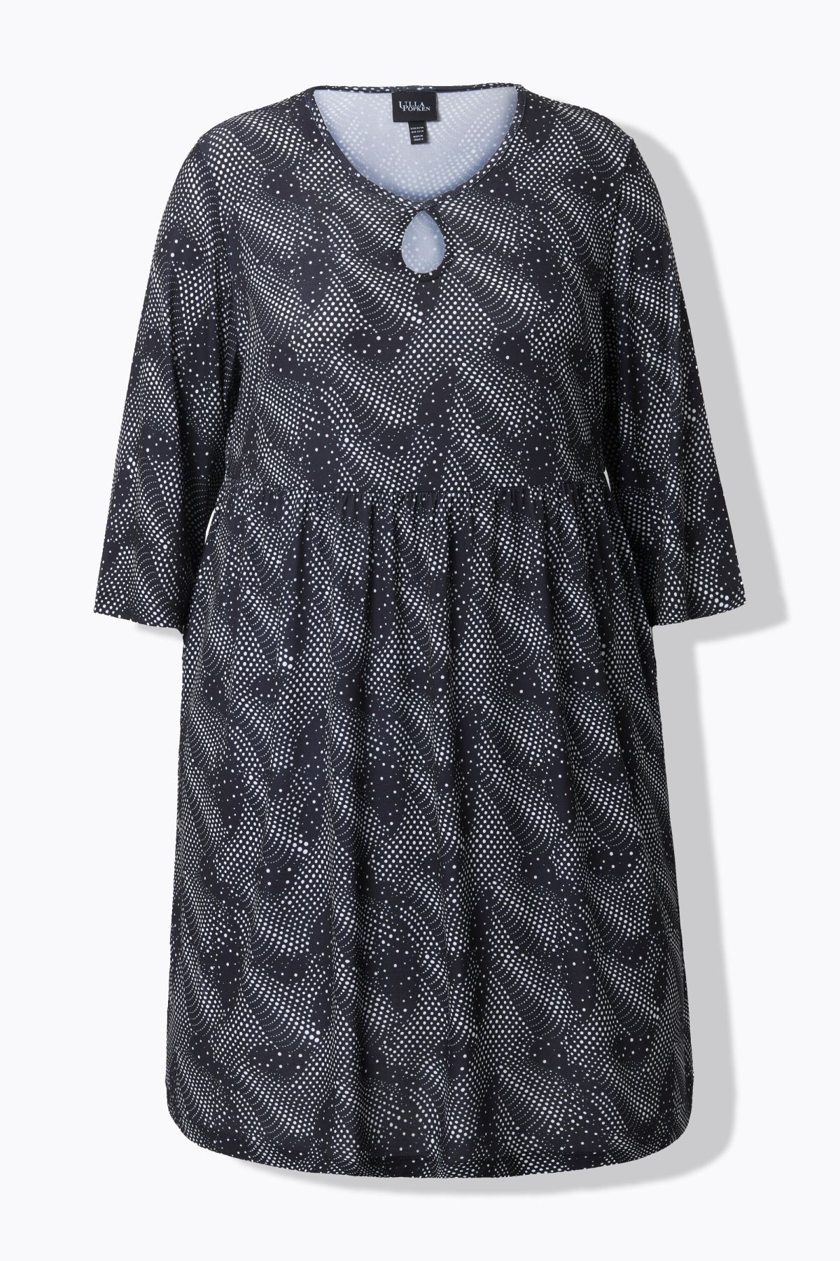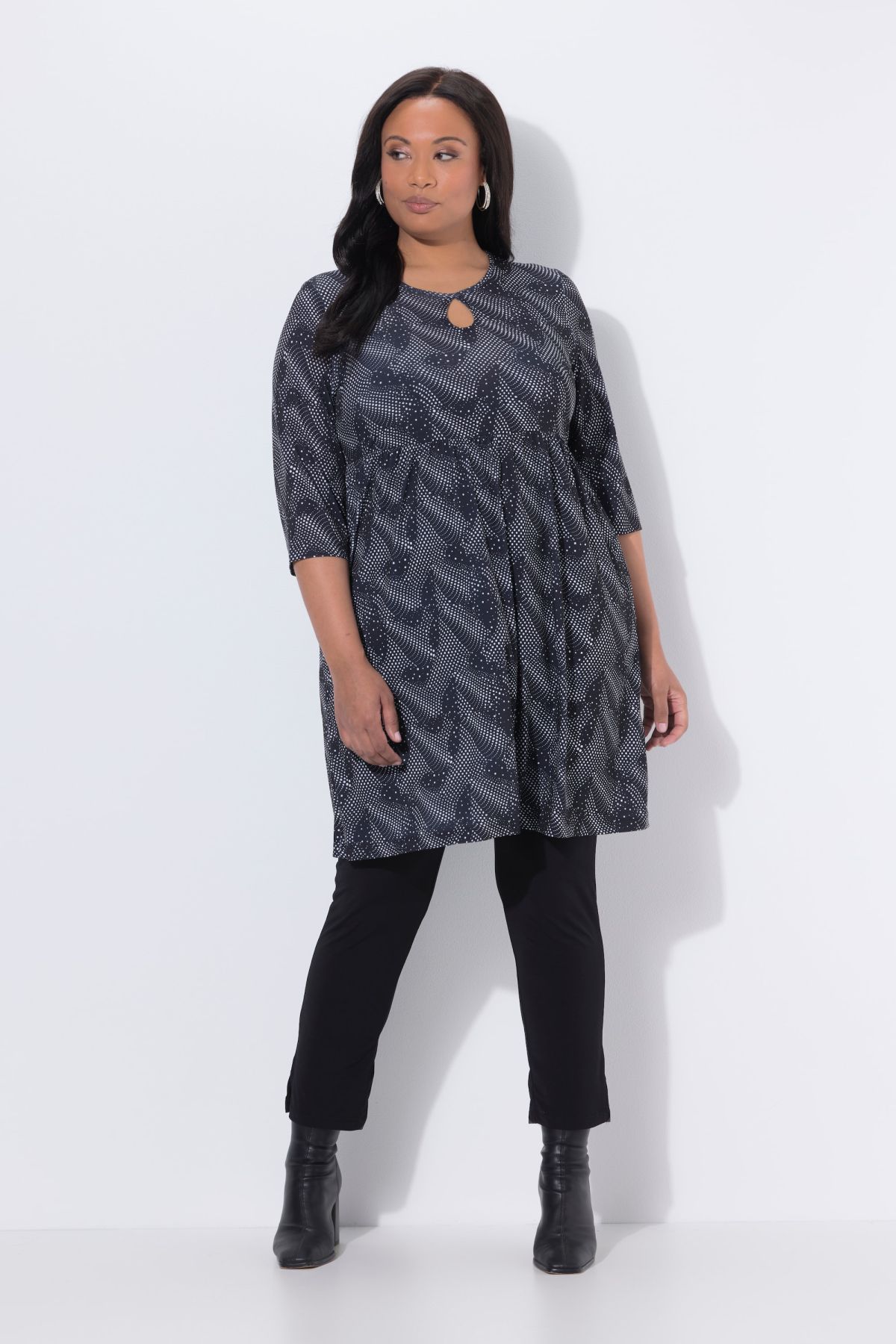 модерен, графичен принт, кръгло деколте с малък изрез, по-дълга А-силуета с удобно широк подгъв, странични джобове, изключително гладко трико с еластичен кръстосан шев, дължина приблизително 97-101 см.