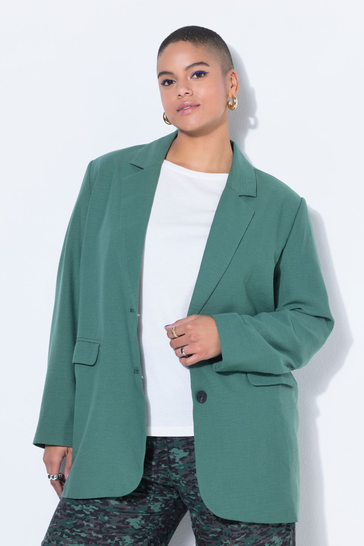 Блейзър с ленен ефект с подплата. С разкроен силует, ревери на яката, копче отпред за закопчаване и дълги ръкави. С джобове с капаци. Бъдете стилни в ежедневието си.
