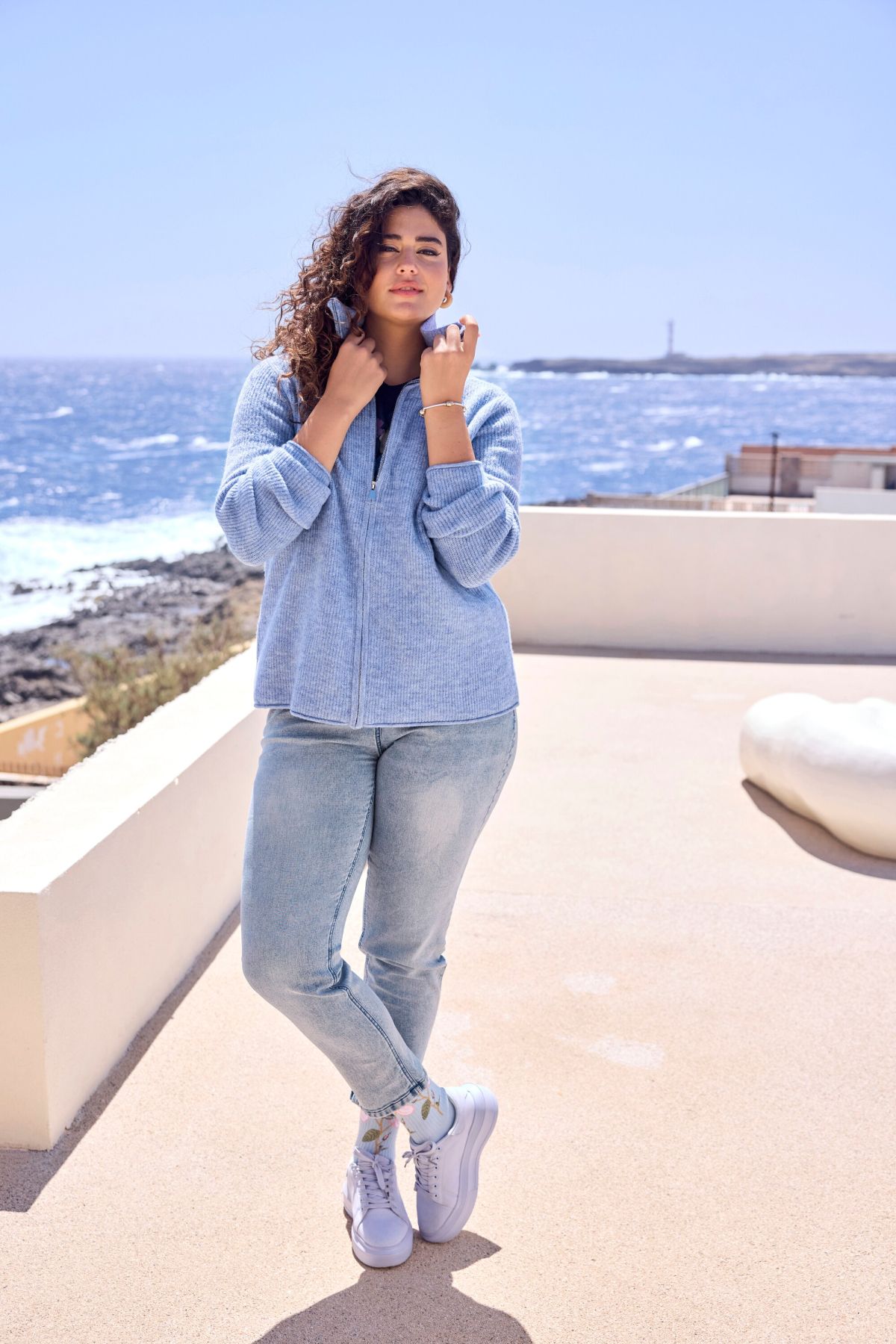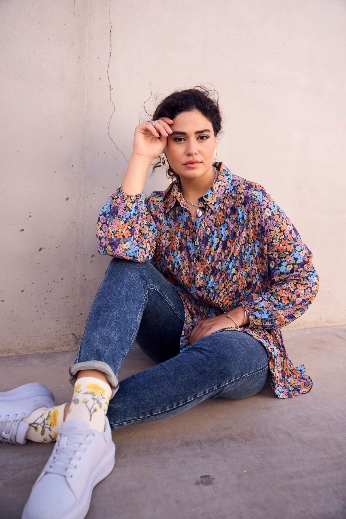 Чорапи с флорален акцент и рипсени маншети.