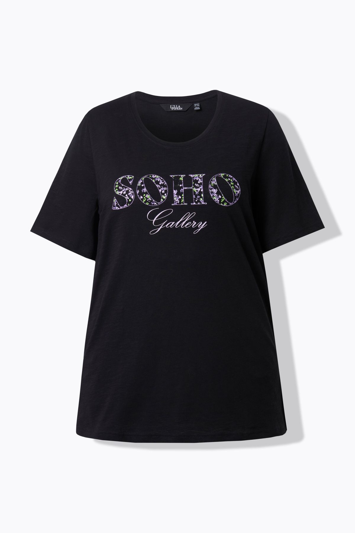 Тениска с бродерия и надпис. С широки къси ръкави и кръгло деколте. С А - линия на силуета. От мека, памучна материя.