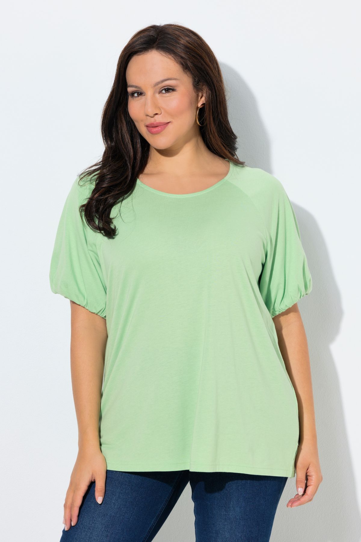 Тениска от модал едноцветна. С акцент на късите ръкави тип буфан. Мека и еластична материя. С перфектна дължина за ежедневието.