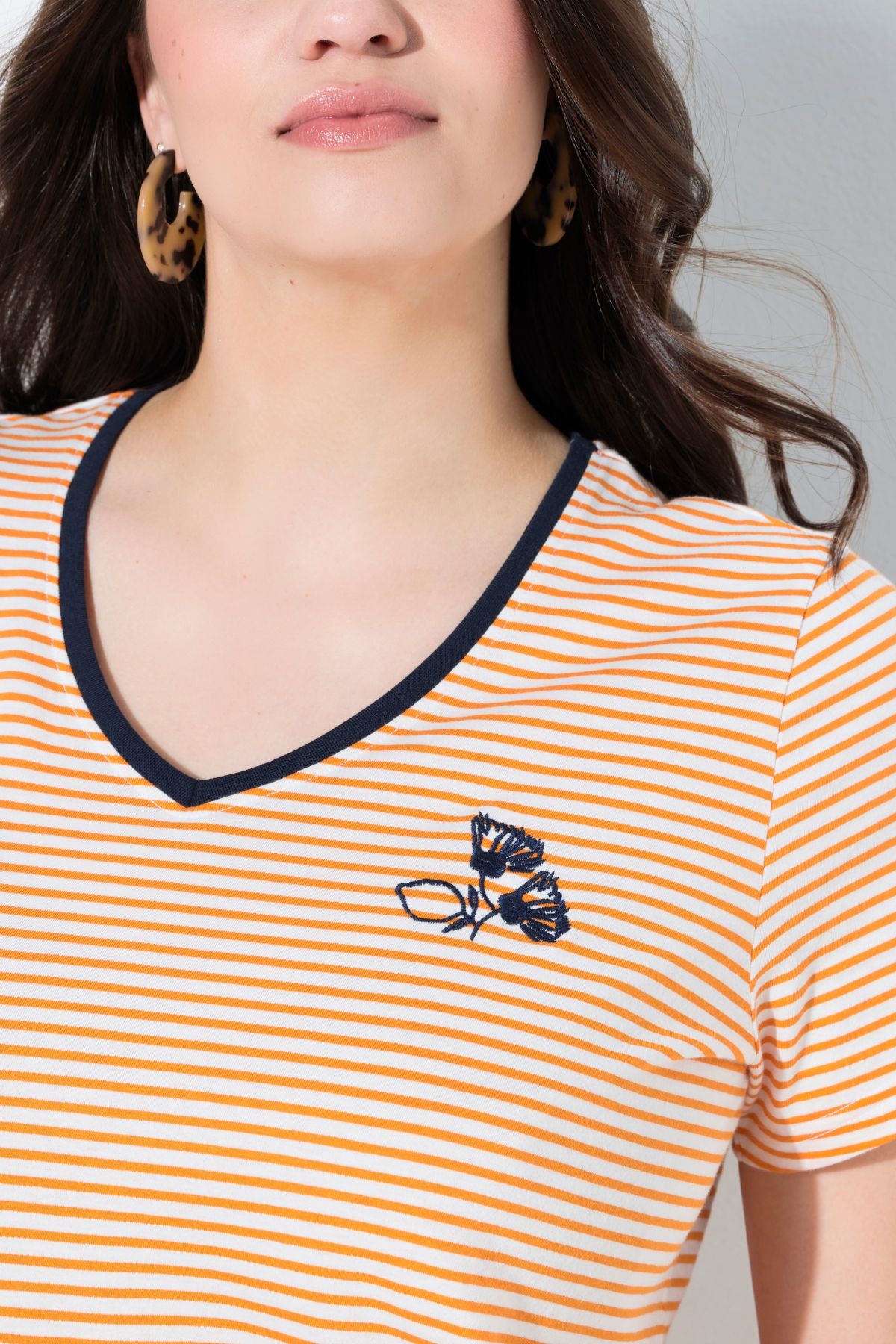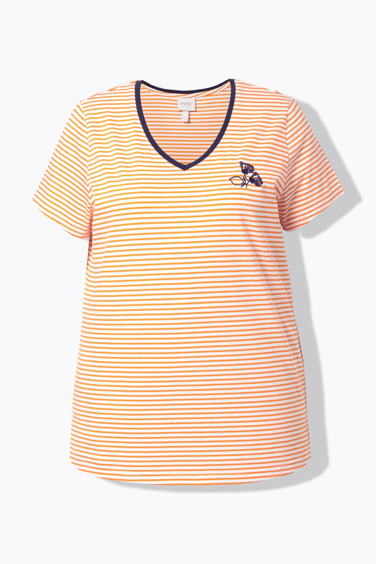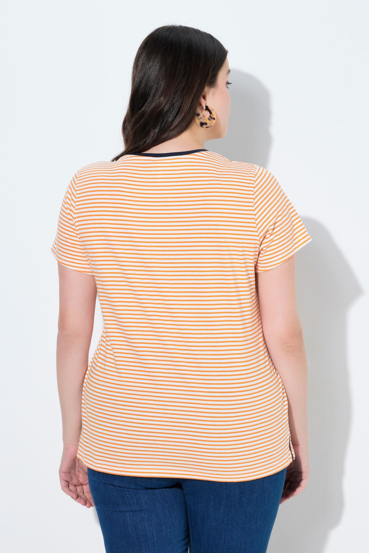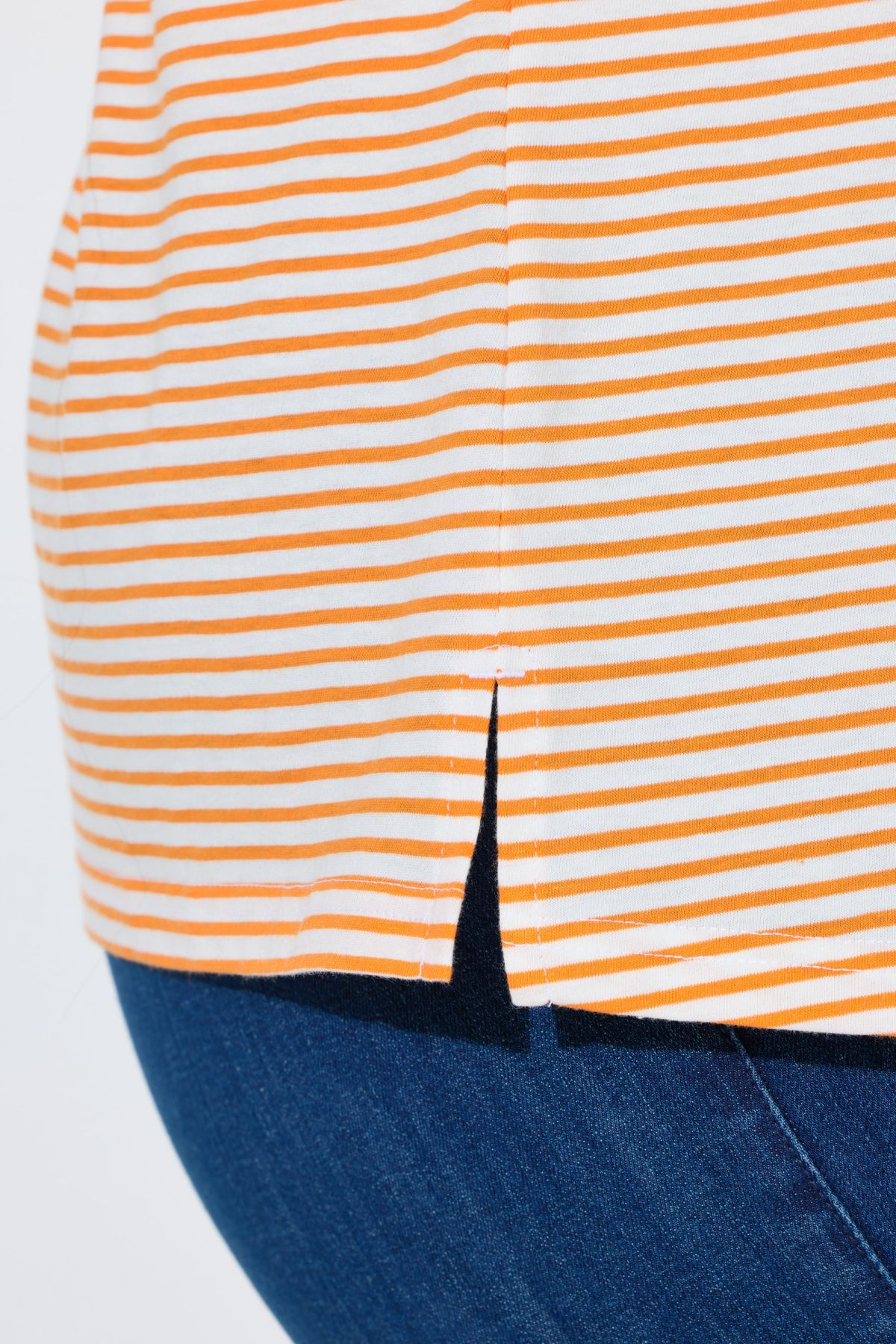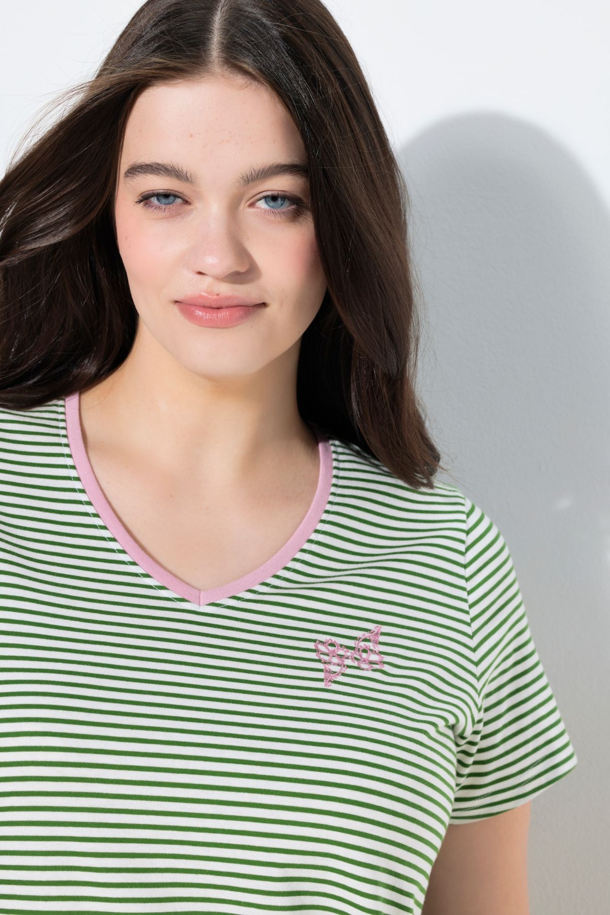 Тениска с райета от мека, памучна материя. В свежи пастелни цветове, перфектни за пролетта. С кръгло деколте и къси ръкави.