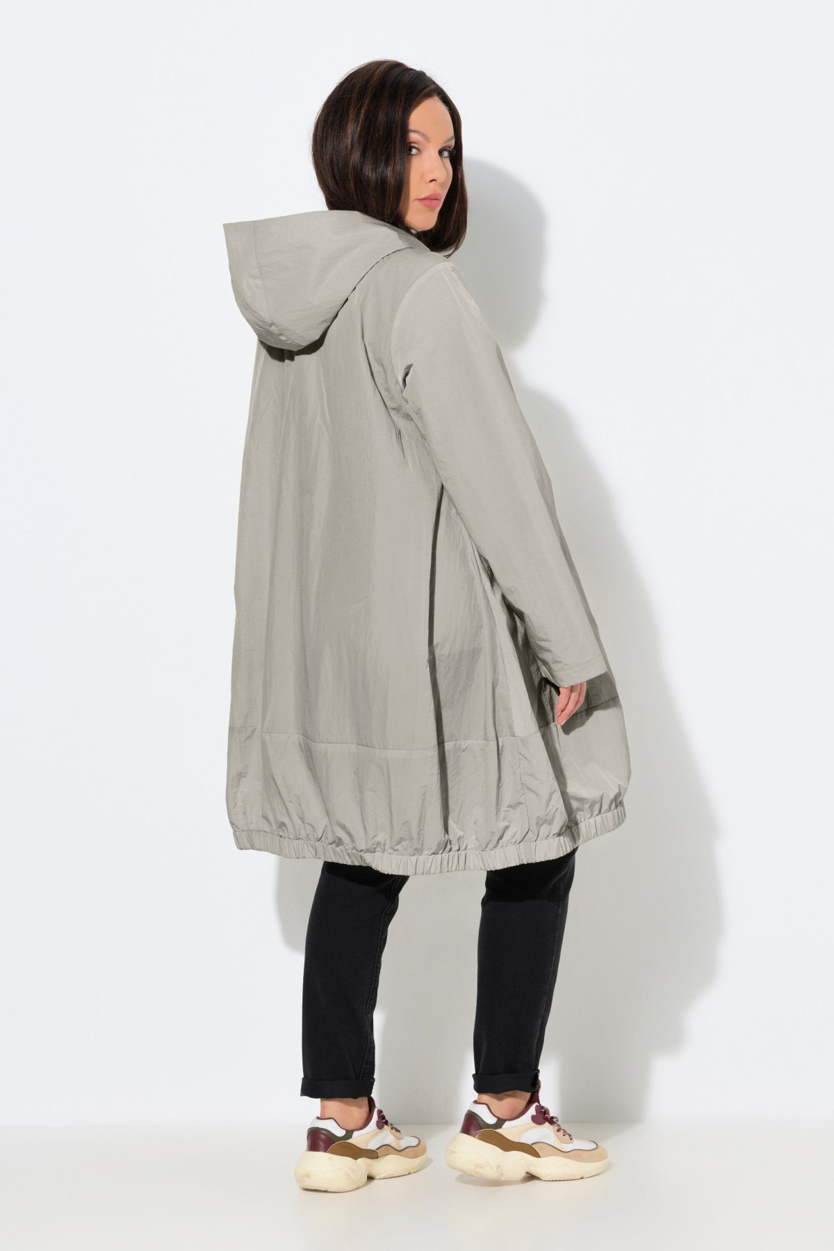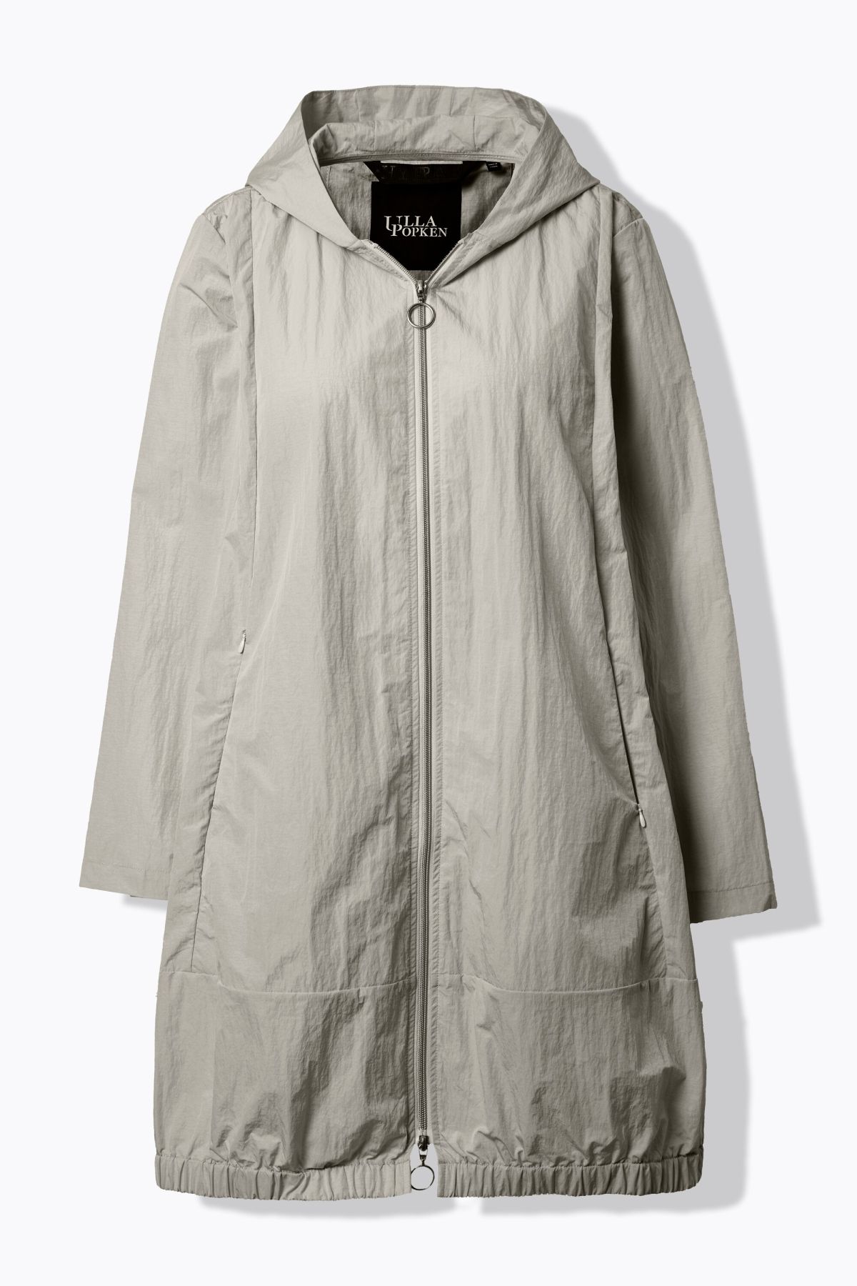 Дълго палто за дъжд - водонепромокаема материя. С контрастен цип отпред, странични джобове и дълги ръкави. Стилно и комфортно за повод или ежедневието.