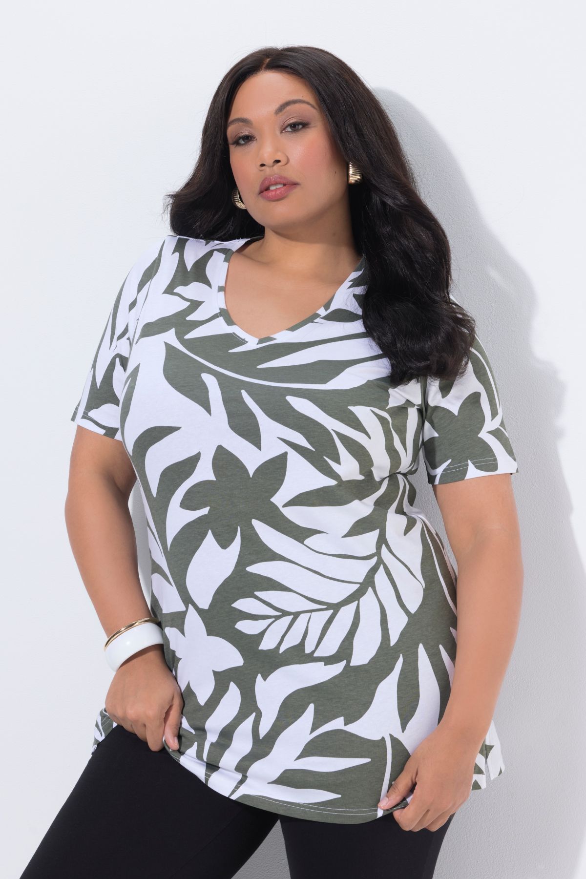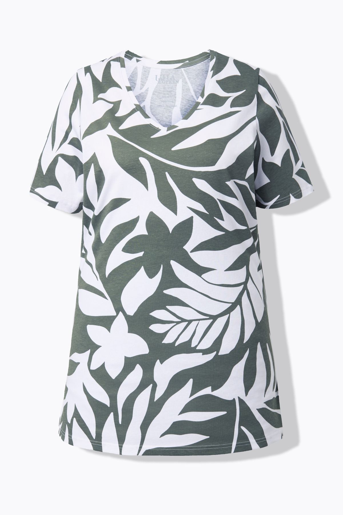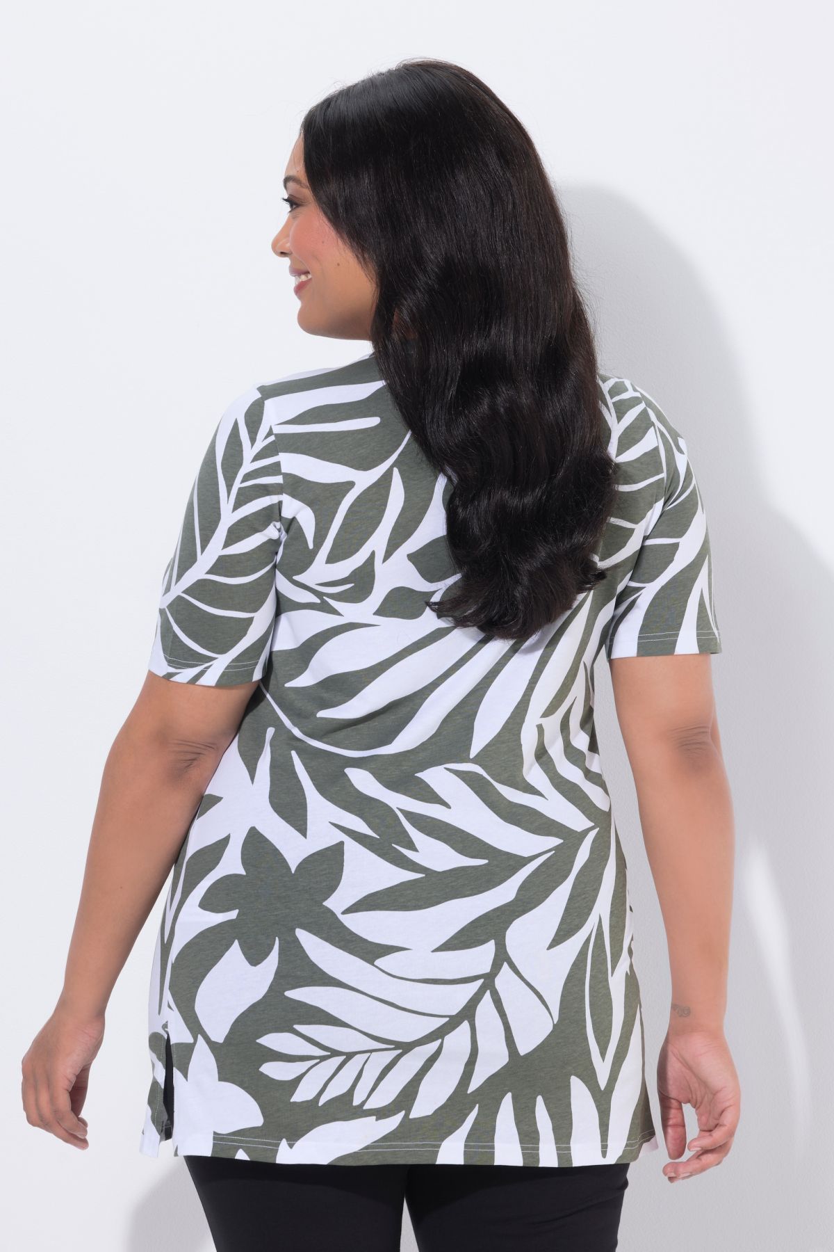Туника с монохромен принт на листа. Дизайн с кръгло деколте, А - линия на силуета и къси ръкави. Стилна и комфортна за ежедневието.