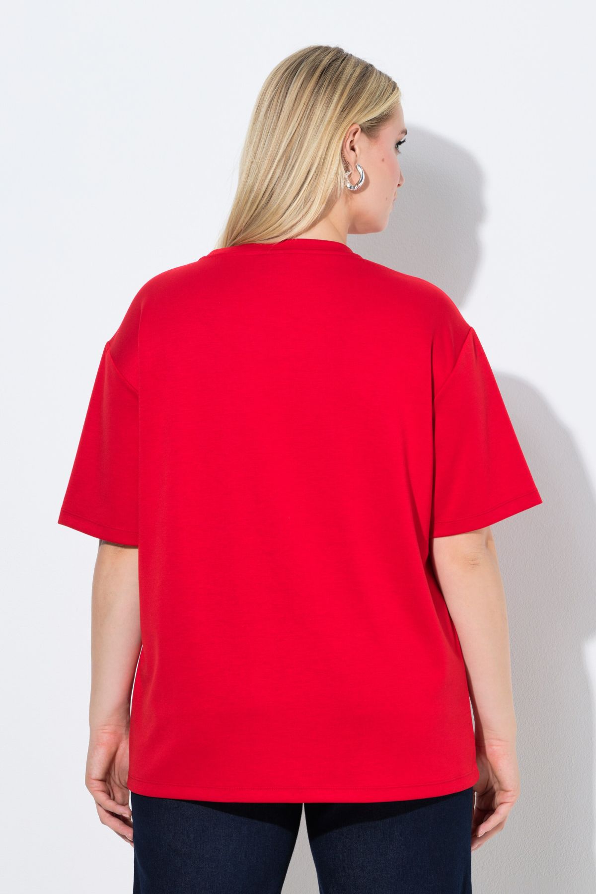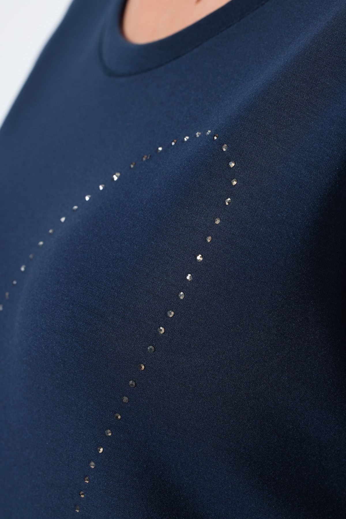 Суитчър с акцент от кристали, свободно кръгло деколте. Къси ръкави с паднало рамо с маншет, класическа права и свободна кройка. Изработен от изключително мека модална смес.