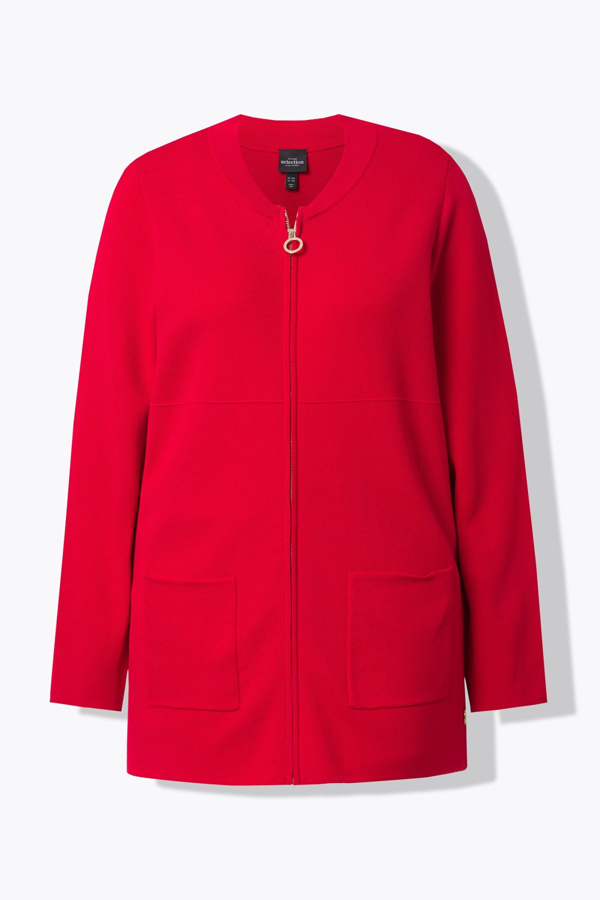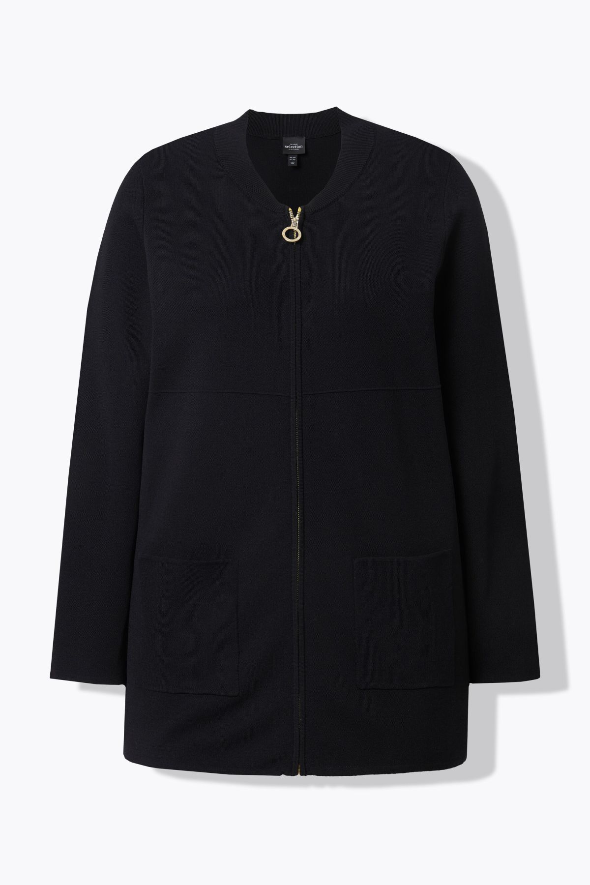 Жилетка с фина вафлена структура и столче яка. Кръгло деколте, 2 предни квадратни джоба, уникални метални копчета. От мека вискозна плетка.