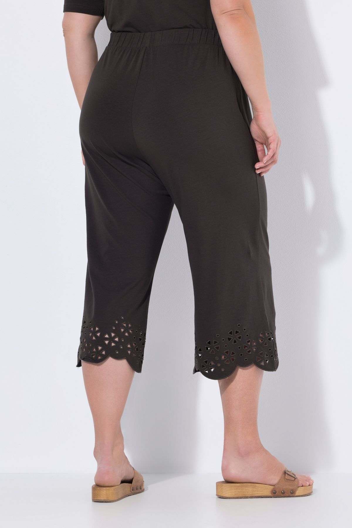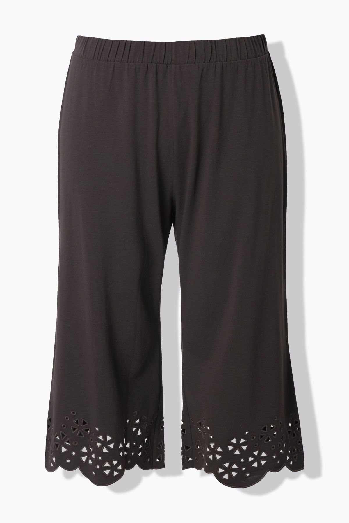 Панталон 7/8 с флорална бродерия - силует, с който да сте готови за летните дни. С еластична талия и странични джобове. От памучна материя.