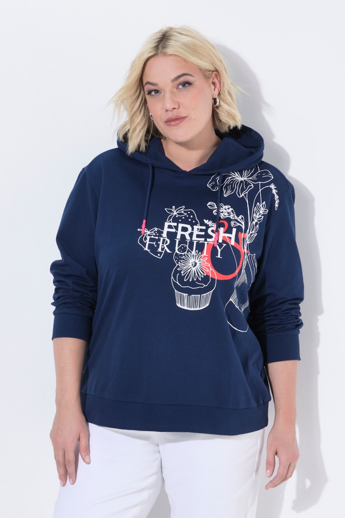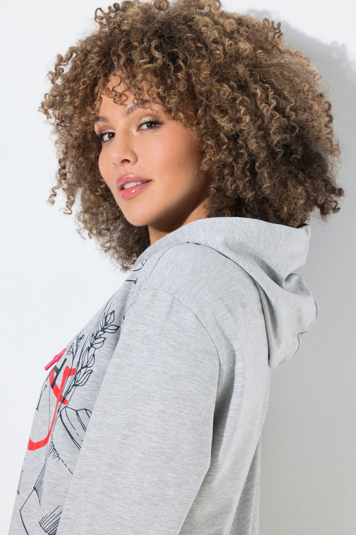 Суитчър с качулка с връзки за пристягане. Дълги ръкави с паднали рамена и рипсени маншети, надпис и щампа на гърдите, еластичен рипсен подгъв. Изработен от естествен памук с еластан.