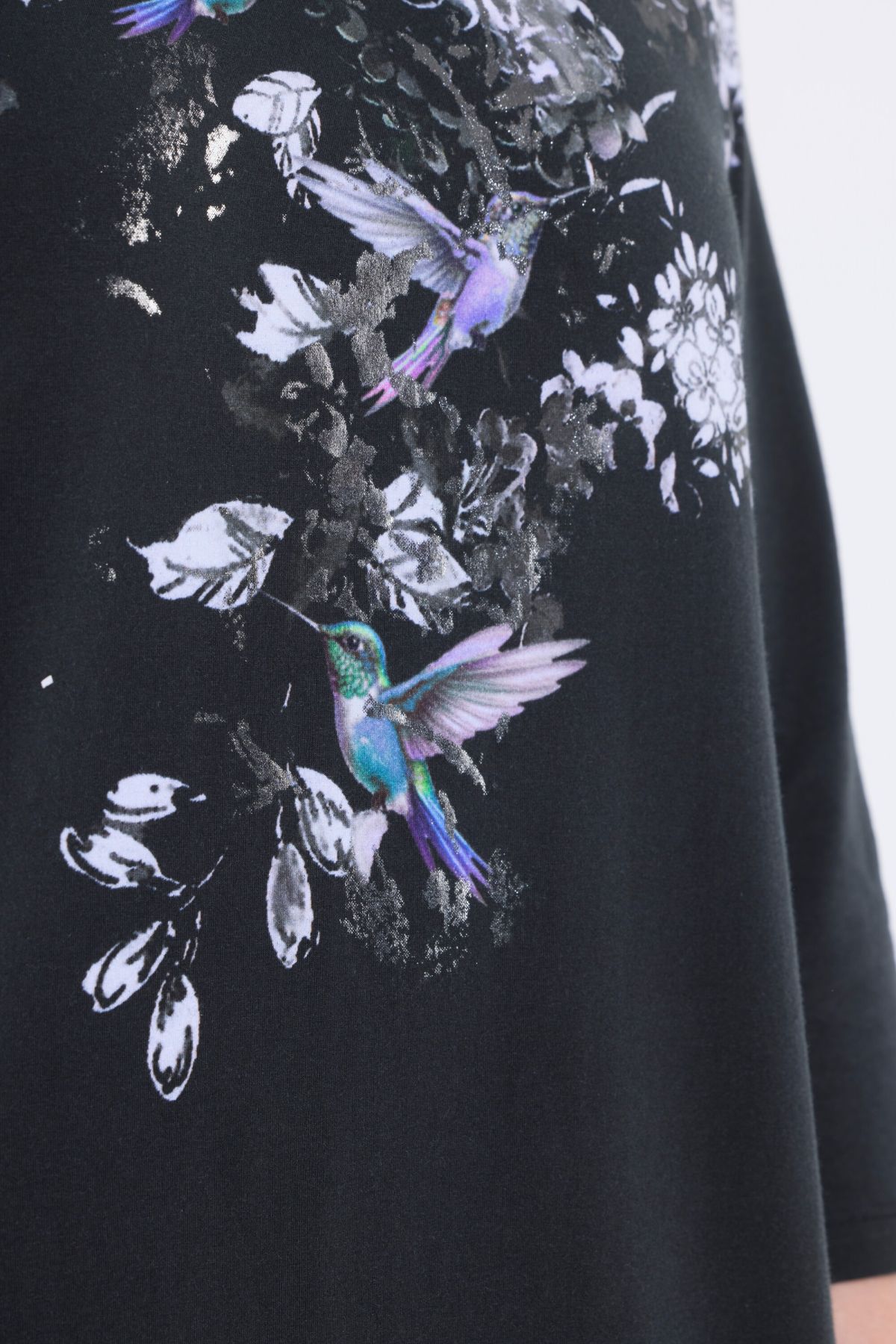 Тениска с принт на колибри