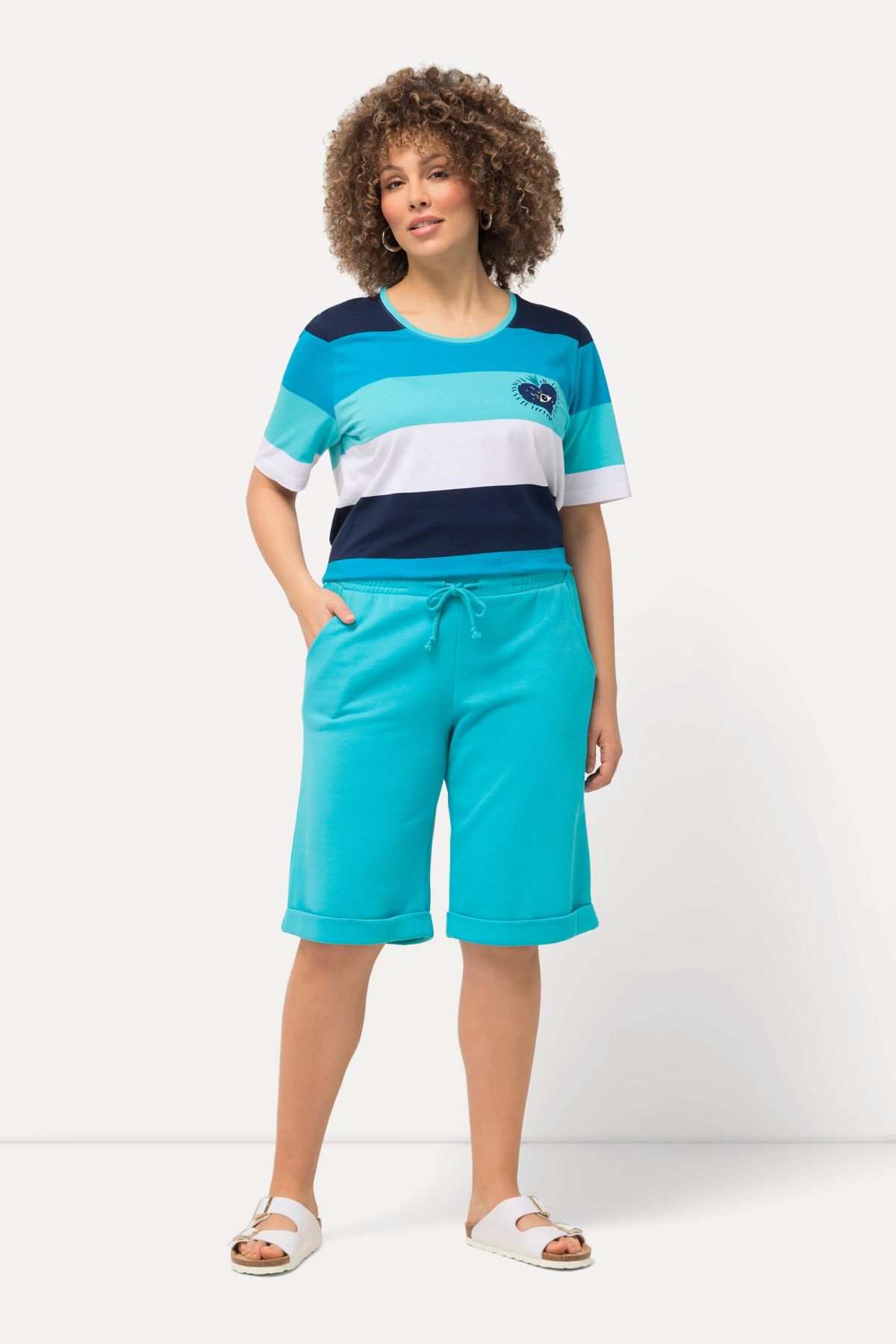Трикотажни шорти тип Mary с комфортна еластична талия и дължина на бермуди. Със странични цепки и мека материя.