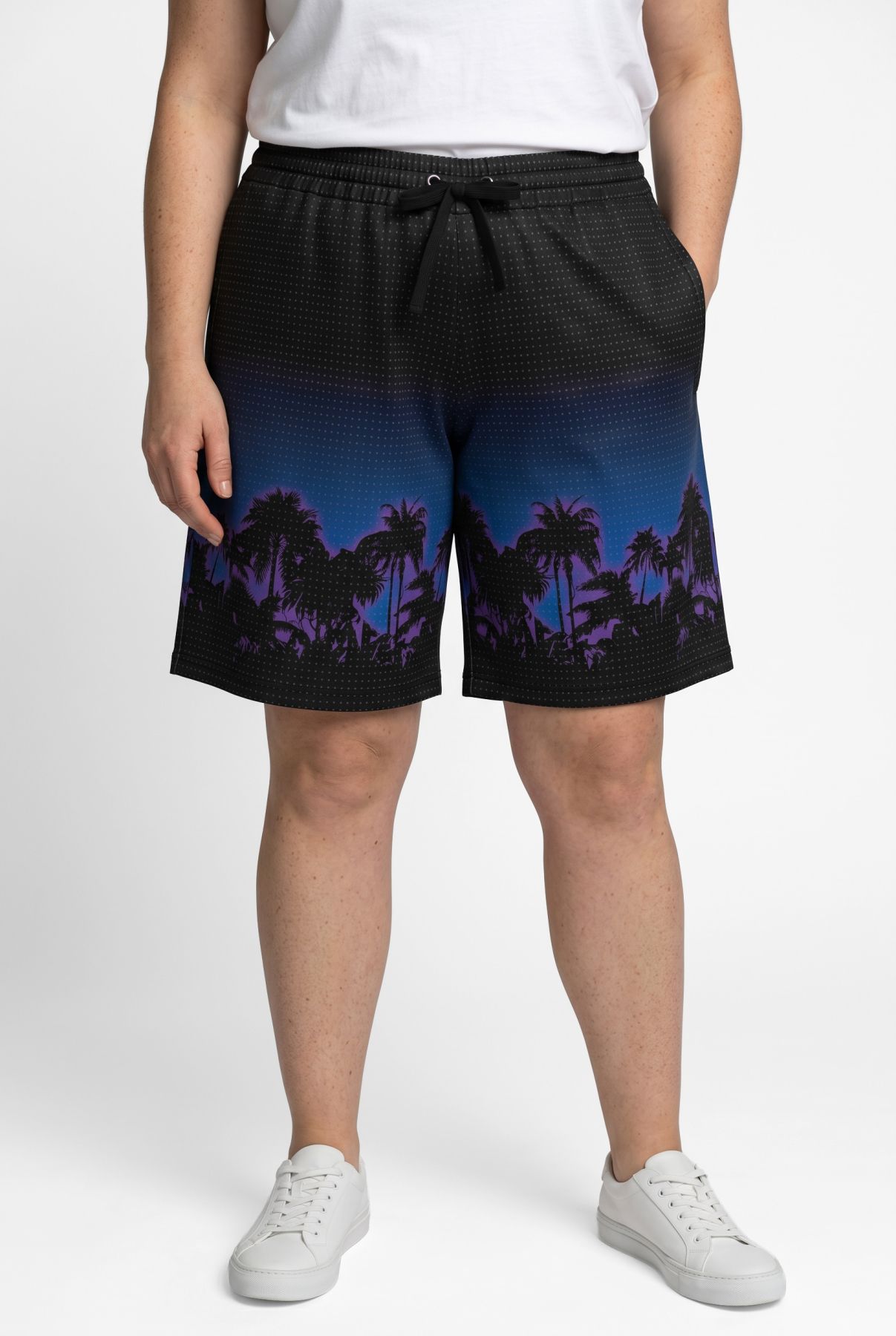 Шорти с палмов принт от дишаща мрежеста материя. С еластична талия с връзка и широки крачоли. Перфектният избор за горещите дни